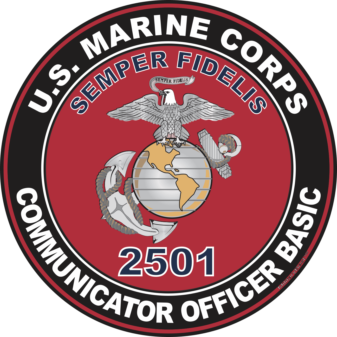 MilitaryBest is proud to offer this U.S.M.C. MOS 2501 Communicator Officer Basic Decal. This U.S. Marine Corps MOS Decal is a great way to show your Marine Pride. All MilitaryBest Marine Corps stickers are printed using high-quality vinyl and U.V. resistant ink. Each is then cured, laminated and die cut for a beautiful crisp, clean and professional look. This U.S.M.C. MOS 2501 Communicator Officer Basic Decal, as well as, any other MilitaryBest.com decal is proudly Made in the USA at our facilities in Scottsboro, AL. Select desired quantity and size from the menu above.Features: