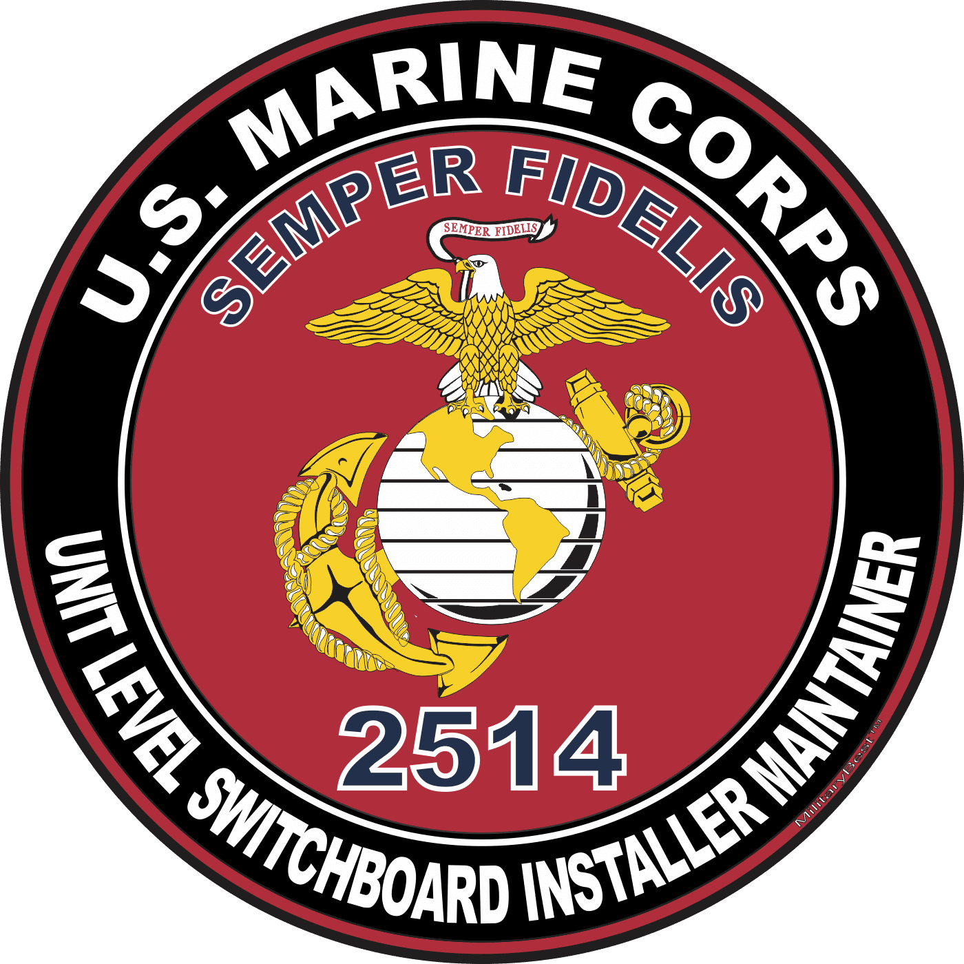 MilitaryBest is proud to offer this U.S.M.C. MOS 2514 Unit Level Switchboard Installer Maintainer Decal. This U.S. Marine Corps MOS Decal is a great way to show your Marine Pride. All MilitaryBest Marine Corps stickers are printed using high-quality vinyl and U.V. resistant ink. Each is then cured, laminated and die cut for a beautiful crisp, clean and professional look. This U.S.M.C. MOS 2514 Unit Level Switchboard Installer Maintainer Decal, as well as, any other MilitaryBest.com decal is proudly Made in the USA at our facilities in Scottsboro, AL. Select desired quantity and size from the menu above.Features: