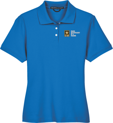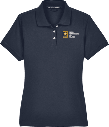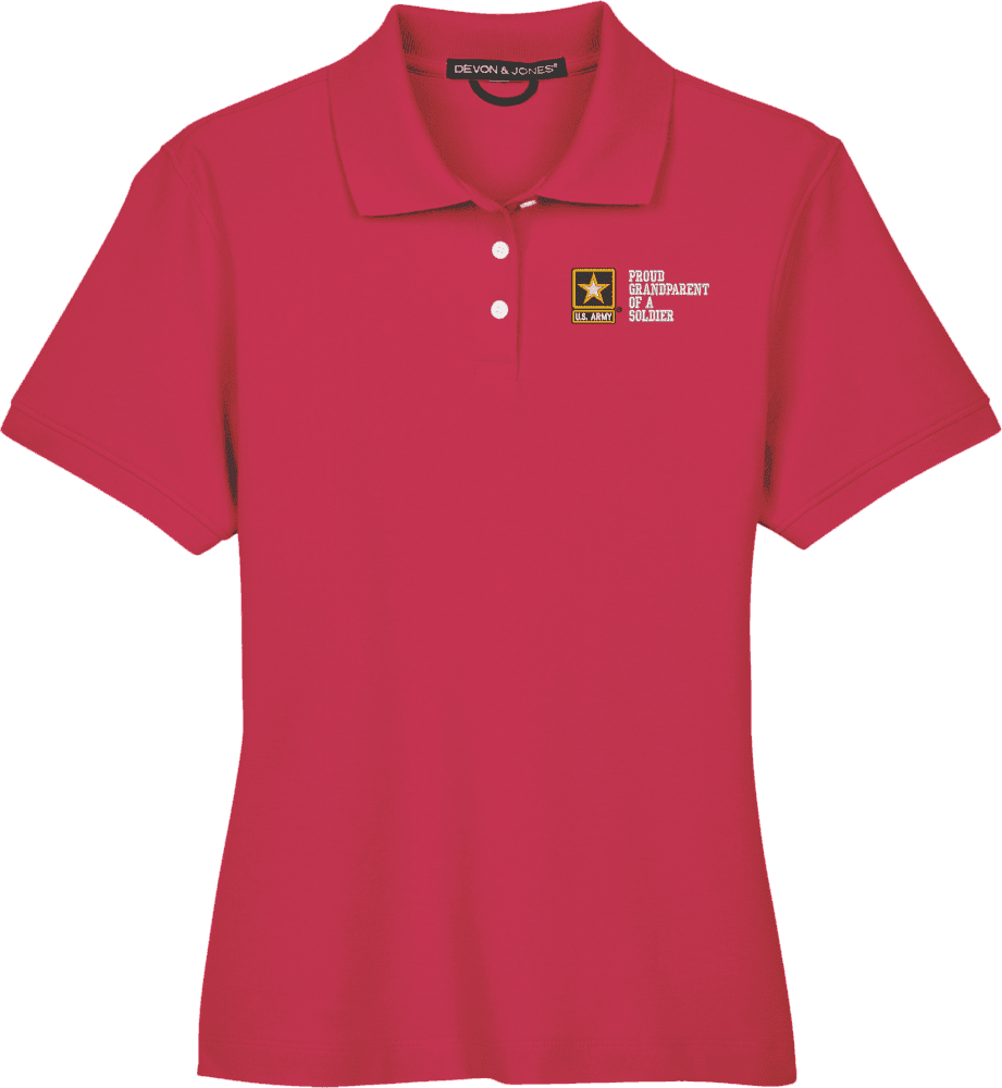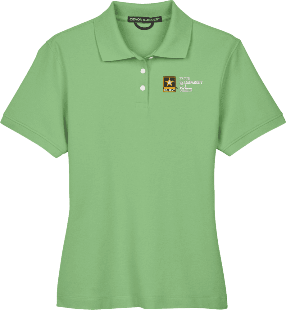 Note: Some of the Color Options pictured may not be available. Available Color Options are listed on the drop down menu above.MilitaryBest is proud to offer this U.S. Army Star Proud GrandParent of a Soldier Women's Devon & Jones Polo. This Ladies Polo features Rib knit cuffs, Dura-Pearl Buttons, and a Three-Button Placket. These Polos are made with 6.8 oz., 100% Peruvian Pima Cotton and are proudly embroidered at our facilities in Scottsboro, AL.