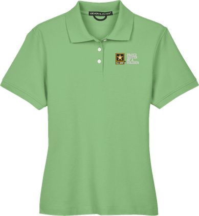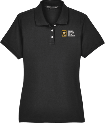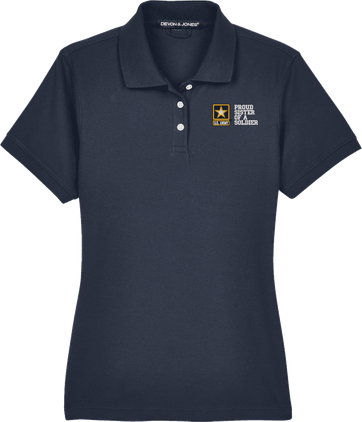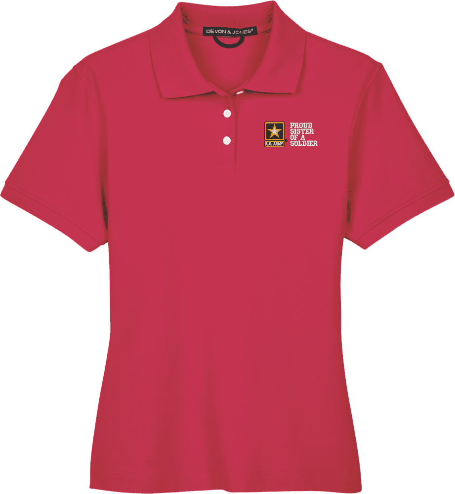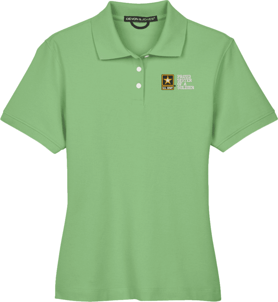 Note: Some of the Color Options pictured may not be available. Available Color Options are listed on the drop down menu above.MilitaryBest is proud to offer this U.S. Army Star Proud Sister of a Soldier Women's Devon & Jones Polo. This Ladies Polo features Rib knit cuffs, Dura-Pearl Buttons, and a Three-Button Placket. These Polos are made with 6.8 oz., 100% Peruvian Pima Cotton and are proudly embroidered at our facilities in Scottsboro, AL.