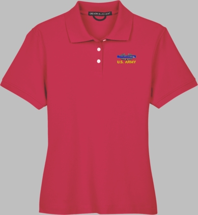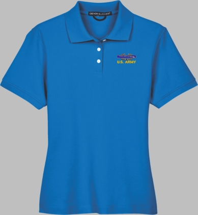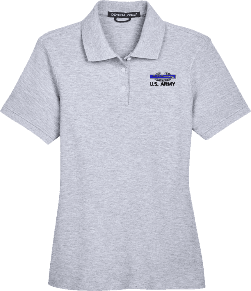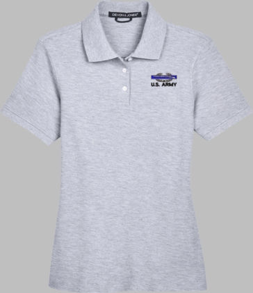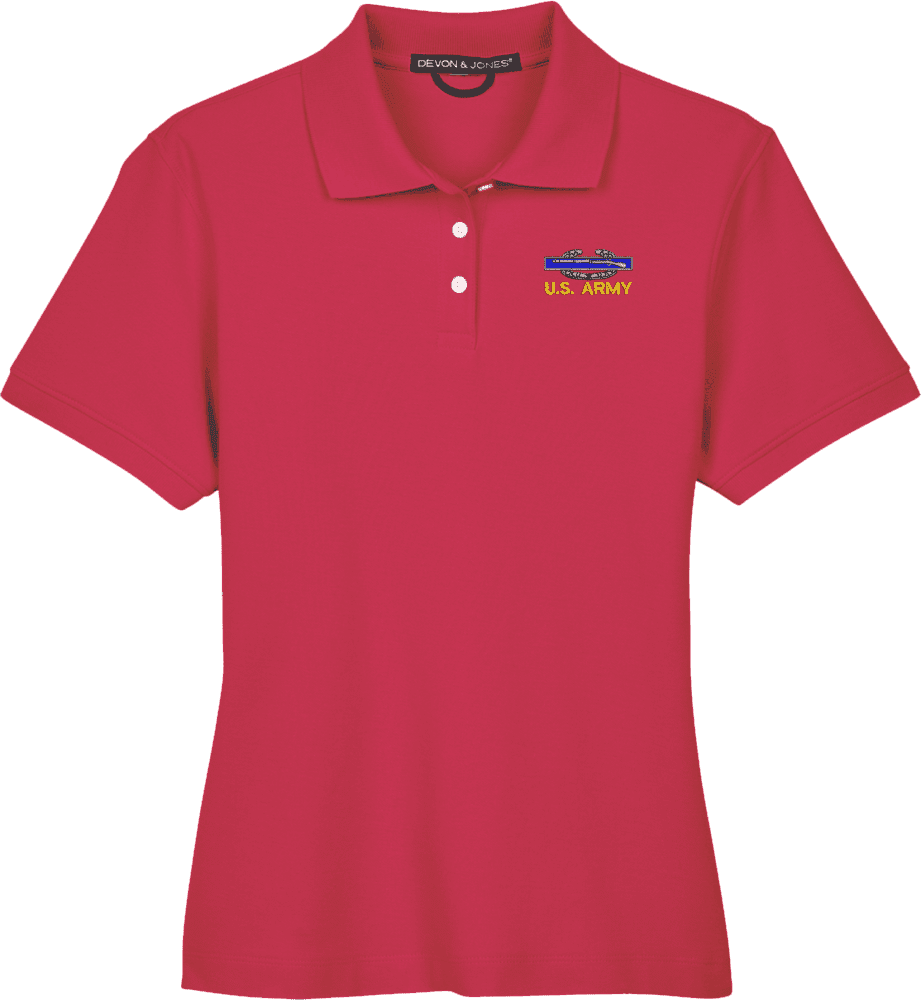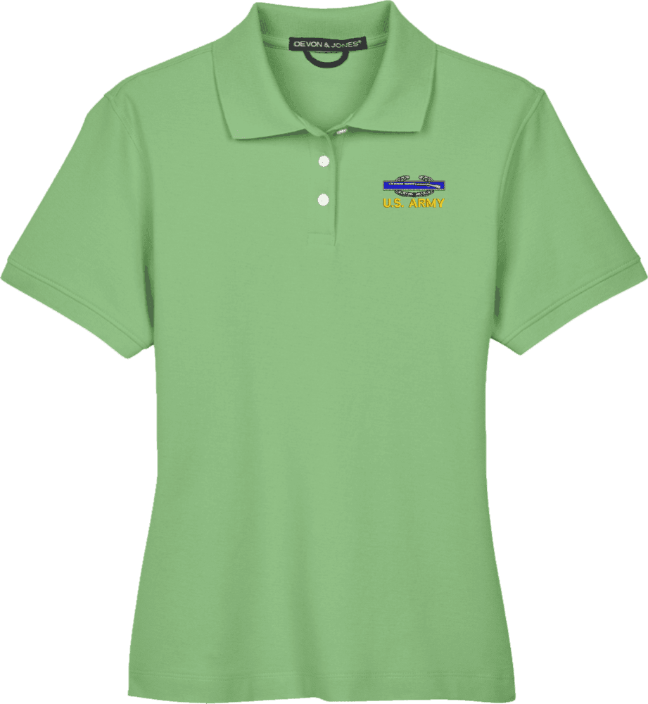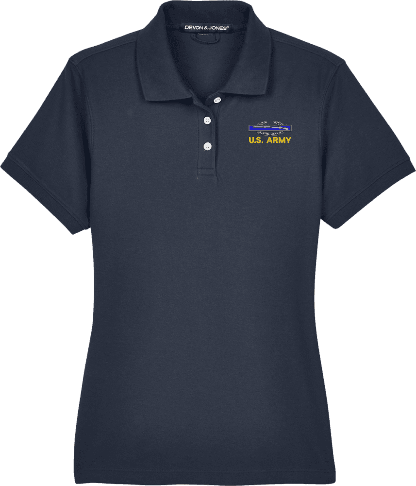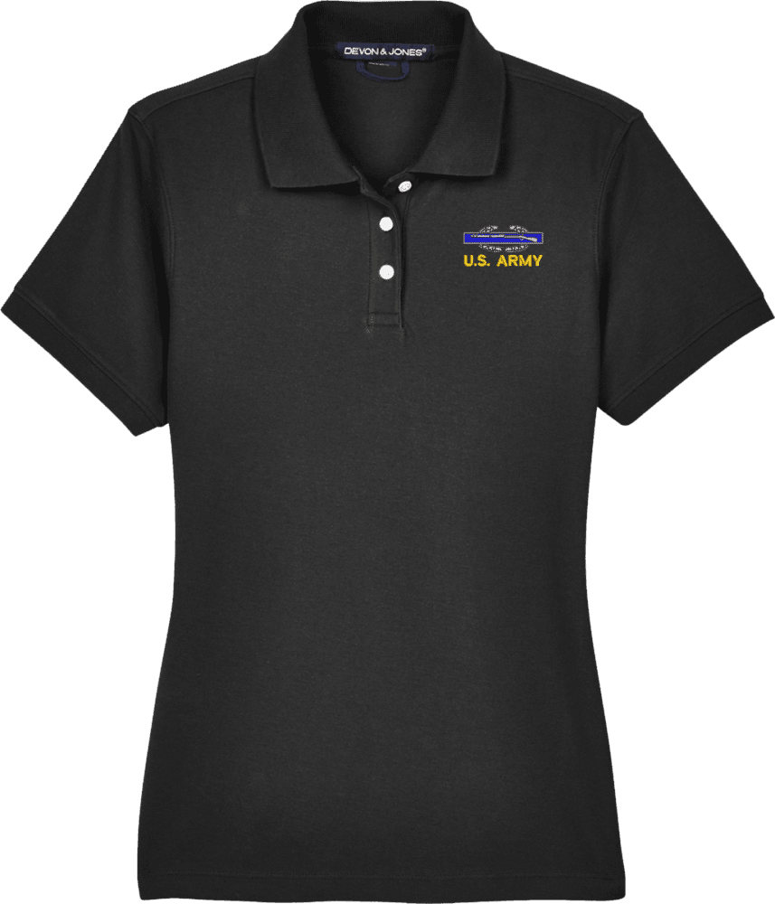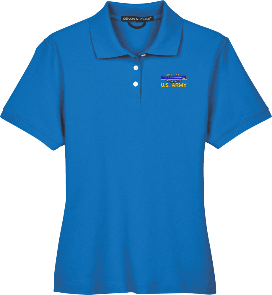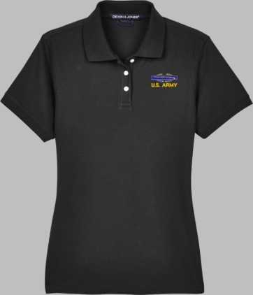 Note: Some of the Color Options pictured may not be available. Available Color Options are listed on the drop down menu above.MilitaryBest is proud to offer this Combat Infantry Badge (CIB) U.S. Army Women's Devon & Jones Polo. This Ladies Polo features Rib knit cuffs, Dura-Pearl Buttons, and a Three-Button Placket. These Polos are made with 6.8 oz., 100% Peruvian Pima Cotton and are proudly embroidered at our facilities in Scottsboro, AL.