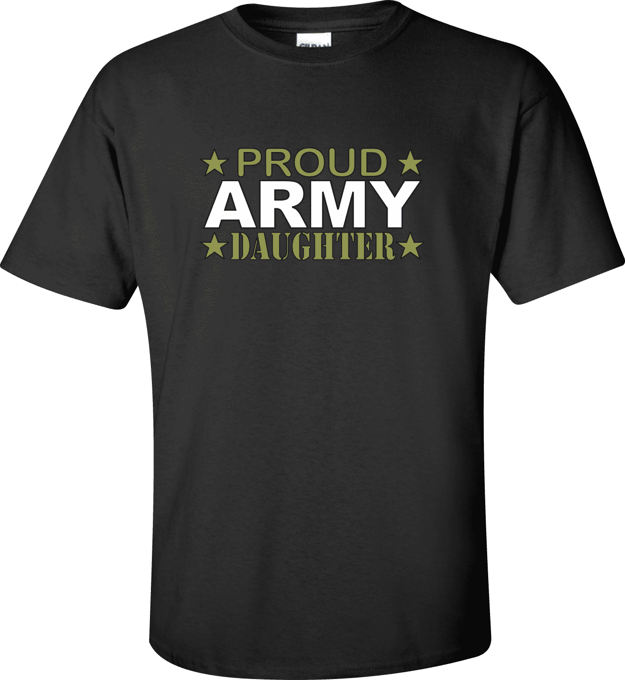Due to disruptions in supply chains, this design will be embroidered on a Champion, Gildan, Jerzees or comparable brand.MilitaryBest is proud to offer this fine Proud Army Daughter Shirt. Each shirt is proudly printed in the USA.