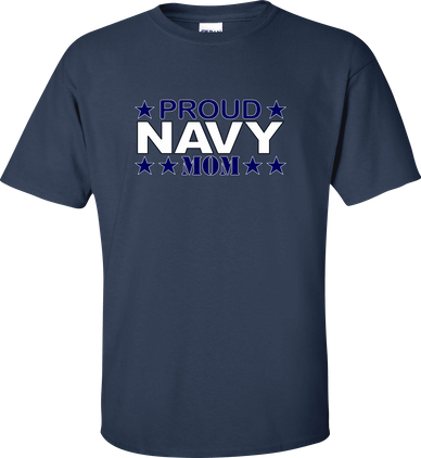 Due to disruptions in supply chains, this design will be embroidered on a Champion, Gildan, Jerzees or comparable brand.MilitaryBest is proud to offer this fine Proud Navy Mom Shirt. Each shirt is proudly printed in the USA.