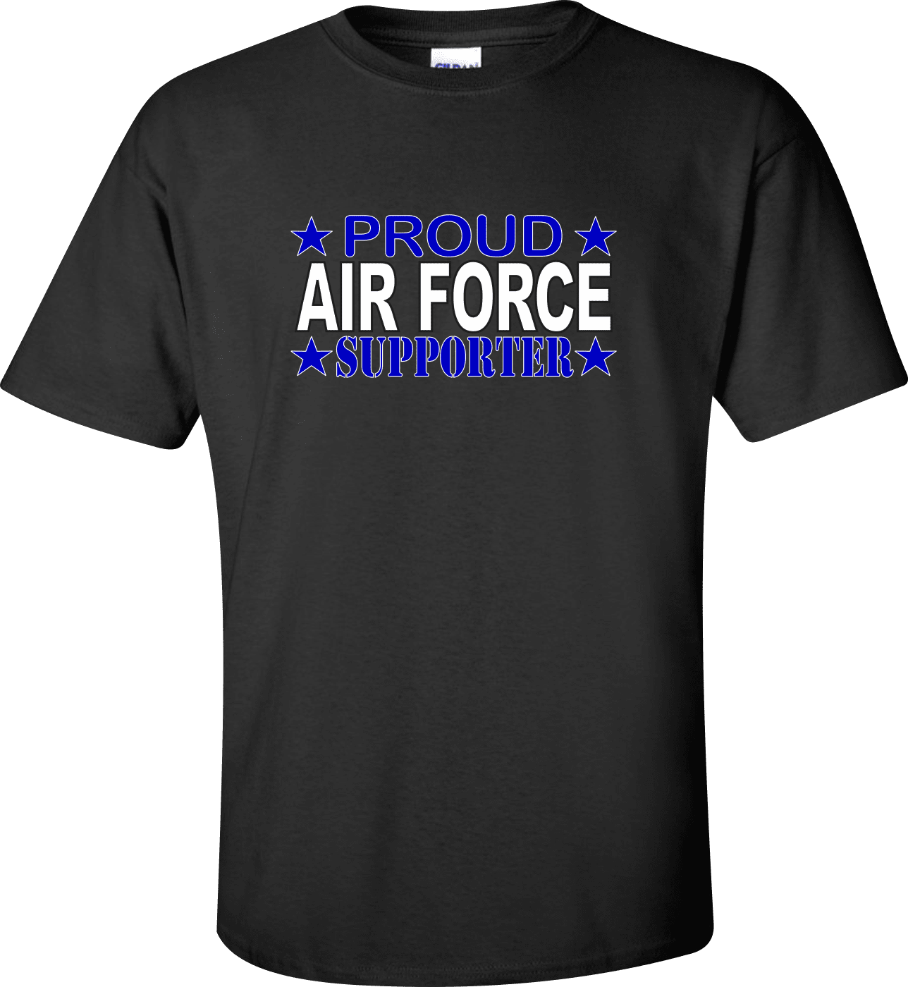Due to disruptions in supply chains, this design will be embroidered on a Champion, Gildan, Jerzees or comparable brand.MilitaryBest is proud to offer this fine Proud Air Force Supporter Shirt. Each shirt is proudly printed in the USA.