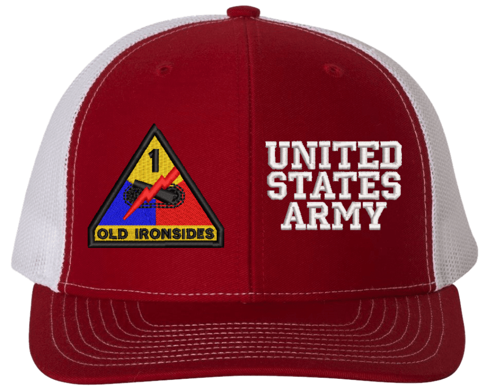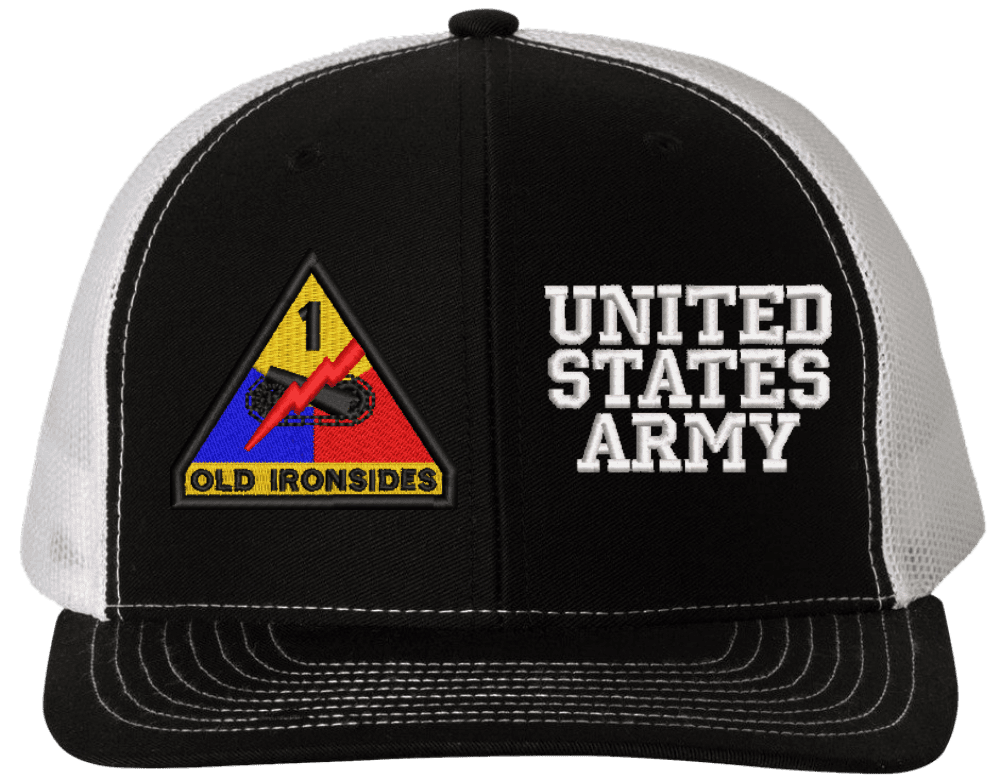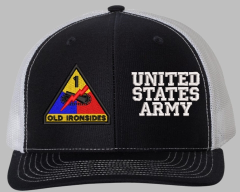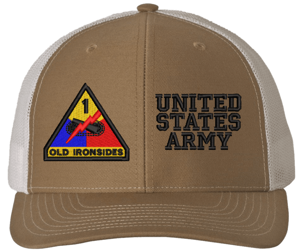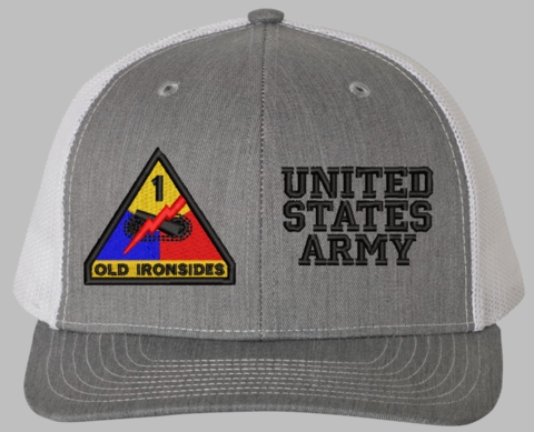 MilitaryBest is proud to offer this Mesh Back 1st Armored United States Army Split Cap. The 1st Armored Division Insignia is embroidered onto a 6x panel mid/low profile mesh back cap and is crisp, clean, and sure to be loved by people of all ages! As with all MilitaryBest caps and apparel your satisfaction is guaranteed!Caps ordered with embroidered back text requires an additional 1 to 2 days of production time. All personalized caps will be embroidered in ALL CAPITAL LETTERS. Caps personalized with back text are not returnable unless there is a material defect in the cap.