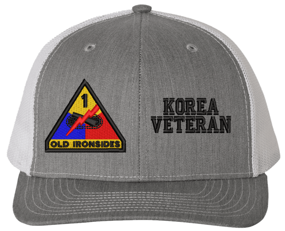 MilitaryBest is proud to offer this Mesh Back 1st Armored Korea Veteran Split Cap. The 1st Armored Division Insignia is embroidered onto a 6x panel mid/low profile mesh back cap and is crisp, clean, and sure to be loved by people of all ages! As with all MilitaryBest caps and apparel your satisfaction is guaranteed!Caps ordered with embroidered back text requires an additional 1 to 2 days of production time. All personalized caps will be embroidered in ALL CAPITAL LETTERS. Caps personalized with back text are not returnable unless there is a material defect in the cap.