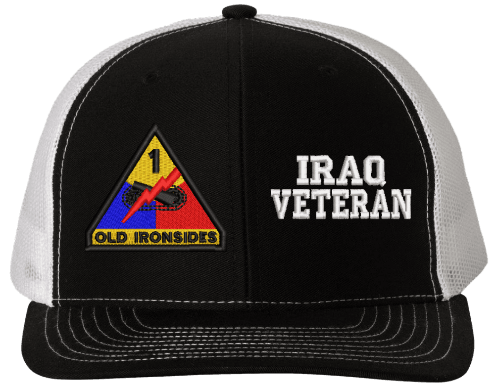 MilitaryBest is proud to offer this Mesh Back 1st Armored Iraq Veteran Split Cap. The 1st Armored Division Insignia is embroidered onto a 6x panel mid/low profile mesh back cap and is crisp, clean, and sure to be loved by people of all ages! As with all MilitaryBest caps and apparel your satisfaction is guaranteed!Caps ordered with embroidered back text requires an additional 1 to 2 days of production time. All personalized caps will be embroidered in ALL CAPITAL LETTERS. Caps personalized with back text are not returnable unless there is a material defect in the cap.
