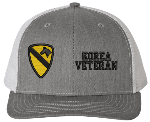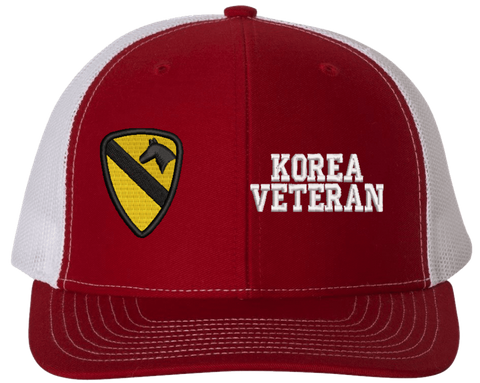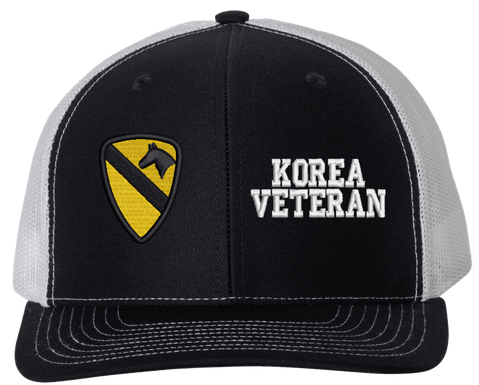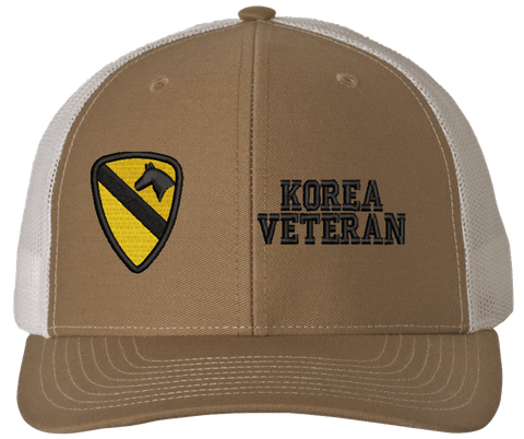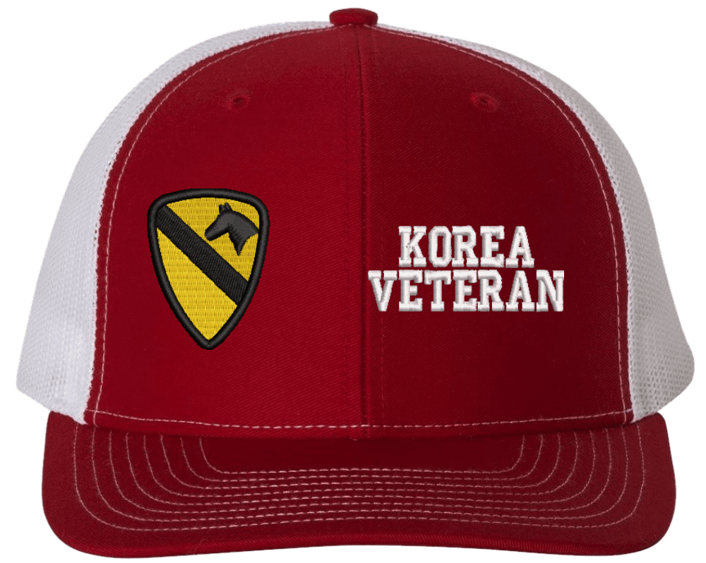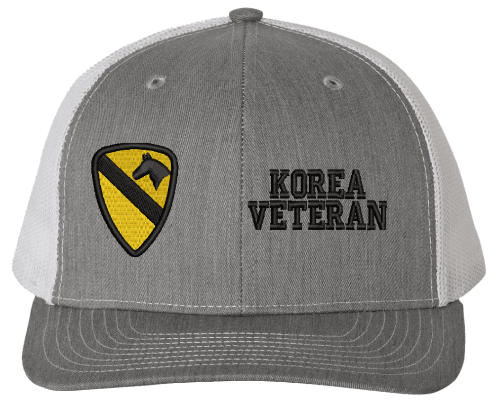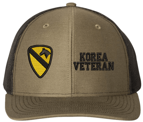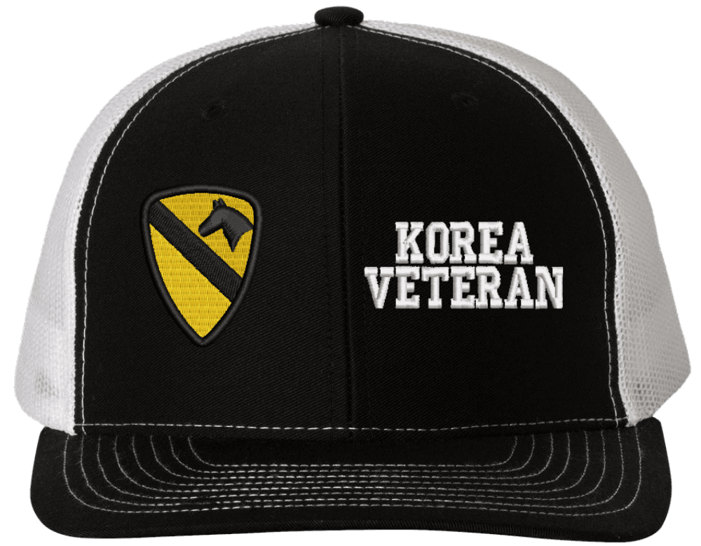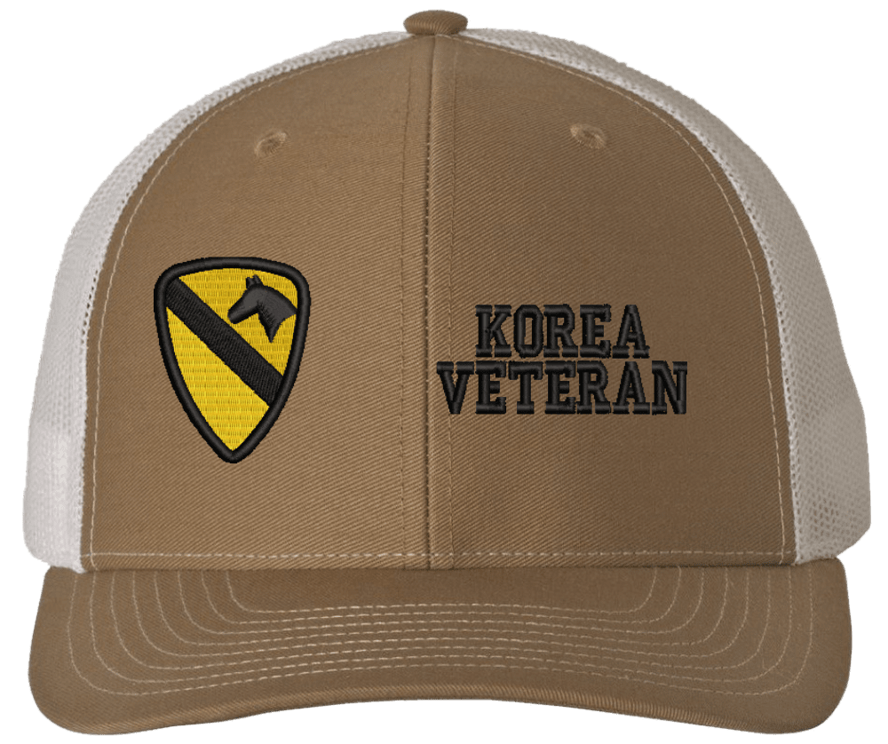 MilitaryBest is proud to offer this Mesh Back 1st Cavalry Korea Veteran Split Cap. The 1st Cavalry Division Insignia is embroidered onto a 6x panel mid/low profile mesh back cap and is crisp, clean, and sure to be loved by people of all ages! As with all MilitaryBest caps and apparel your satisfaction is guaranteed!Caps ordered with embroidered back text requires an additional 1 to 2 days of production time. All personalized caps will be embroidered in ALL CAPITAL LETTERS. Caps personalized with back text are not returnable unless there is a material defect in the cap.