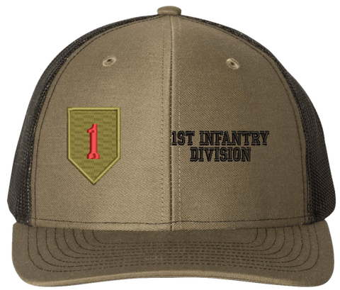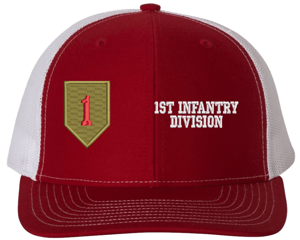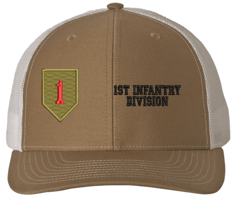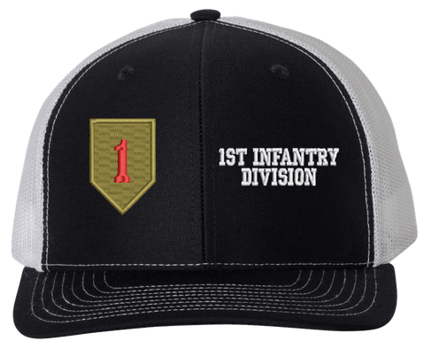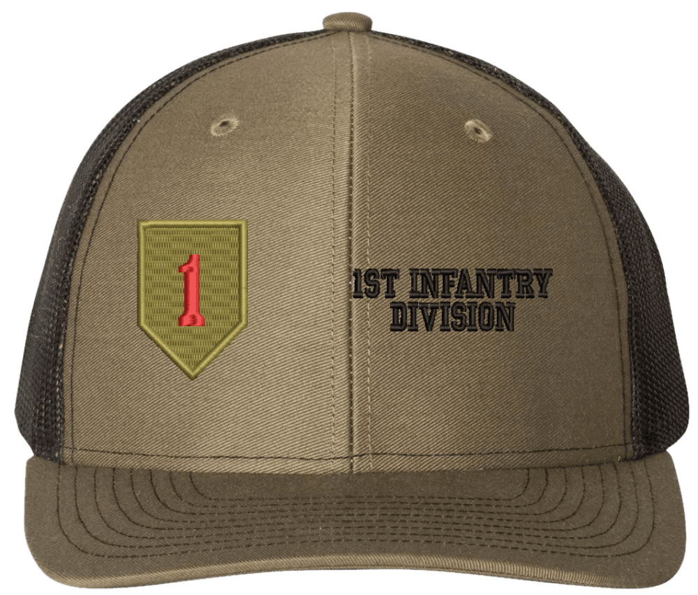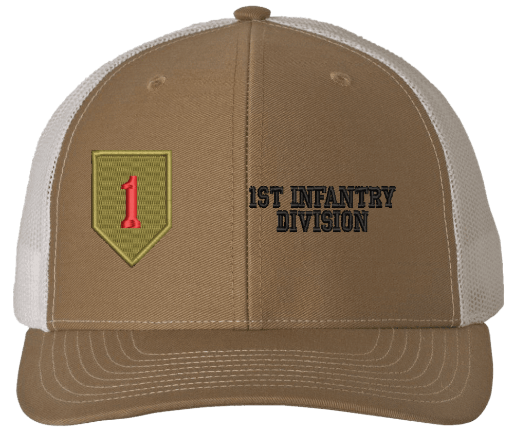 MilitaryBest is proud to offer this Mesh Back 1st Infantry Division Split Cap. The 1st Infantry Division Insignia is embroidered onto a 6x panel mid/low profile mesh back cap and is crisp, clean, and sure to be loved by people of all ages! As with all MilitaryBest caps and apparel your satisfaction is guaranteed!Caps ordered with embroidered back text requires an additional 1 to 2 days of production time. All personalized caps will be embroidered in ALL CAPITAL LETTERS. Caps personalized with back text are not returnable unless there is a material defect in the cap.