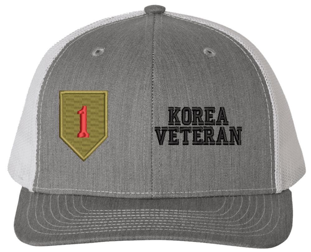 MilitaryBest is proud to offer this Mesh Back 1st Infantry Korea Veteran Split Cap. The 1st Infantry Division Insignia is embroidered onto a 6x panel mid/low profile mesh back cap and is crisp, clean, and sure to be loved by people of all ages! As with all MilitaryBest caps and apparel your satisfaction is guaranteed!Caps ordered with embroidered back text requires an additional 1 to 2 days of production time. All personalized caps will be embroidered in ALL CAPITAL LETTERS. Caps personalized with back text are not returnable unless there is a material defect in the cap.