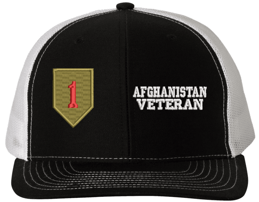 MilitaryBest is proud to offer this Mesh Back 1st Infantry Afghanistan Veteran Split Cap. The 1st Infantry Division Insignia is embroidered onto a 6x panel mid/low profile mesh back cap and is crisp, clean, and sure to be loved by people of all ages! As with all MilitaryBest caps and apparel your satisfaction is guaranteed!Caps ordered with embroidered back text requires an additional 1 to 2 days of production time. All personalized caps will be embroidered in ALL CAPITAL LETTERS. Caps personalized with back text are not returnable unless there is a material defect in the cap.