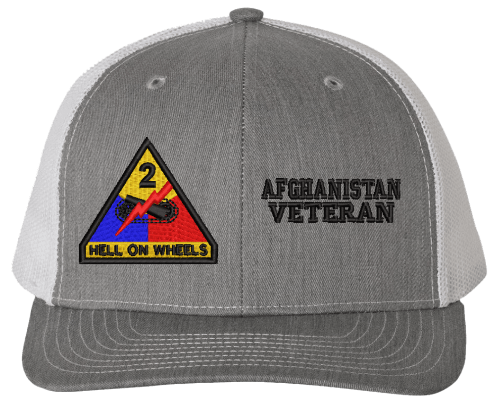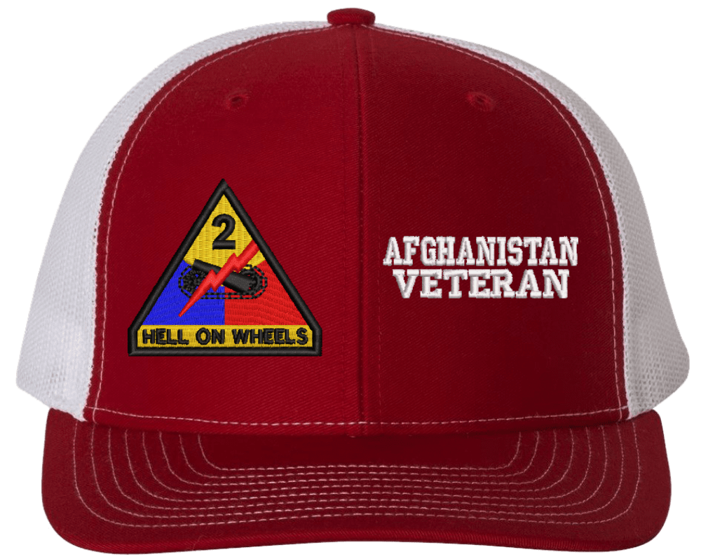 MilitaryBest is proud to offer this Mesh Back 2nd Armored Afghanistan Veteran Split Cap. The 2nd Armored Division Insignia is embroidered onto a 6x panel mid/low profile mesh back cap and is crisp, clean, and sure to be loved by people of all ages! As with all MilitaryBest caps and apparel your satisfaction is guaranteed!Caps ordered with embroidered back text requires an additional 1 to 2 days of production time. All personalized caps will be embroidered in ALL CAPITAL LETTERS. Caps personalized with back text are not returnable unless there is a material defect in the cap.