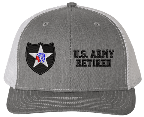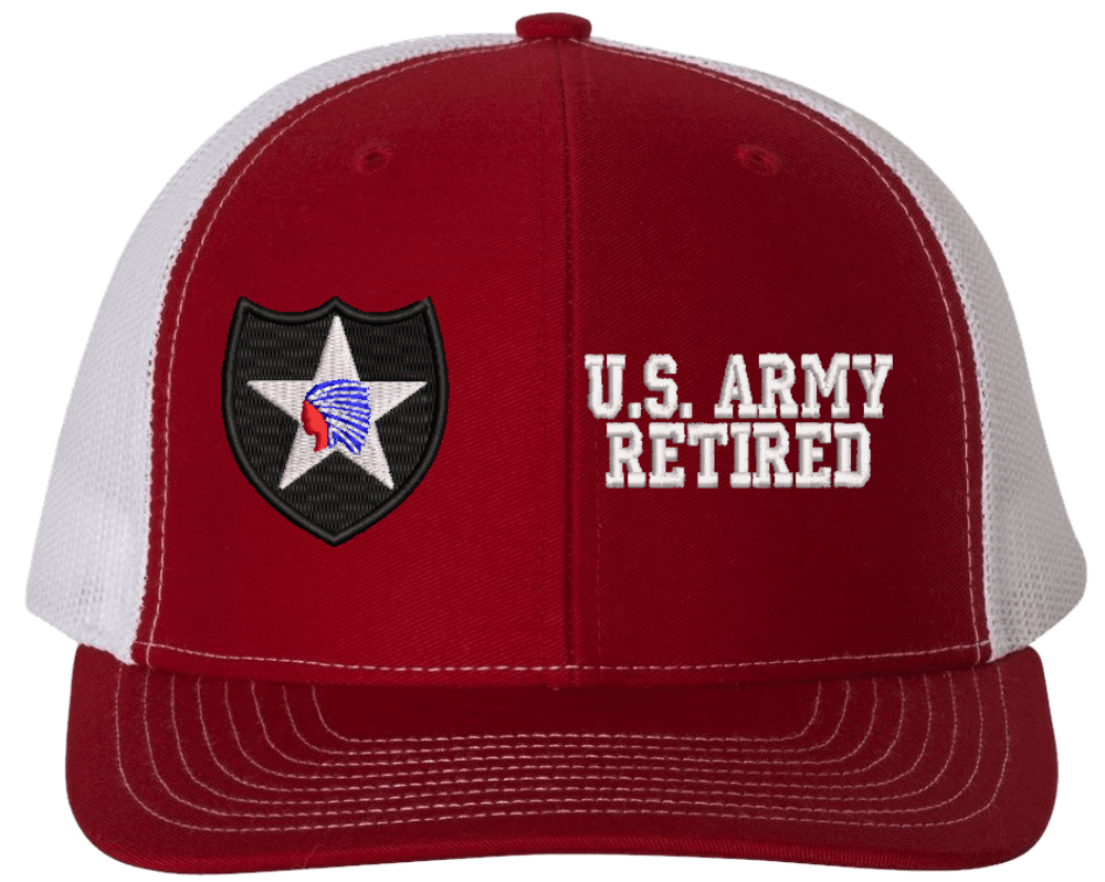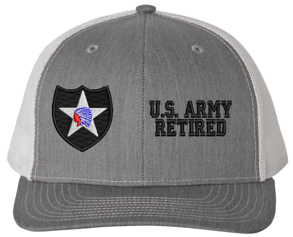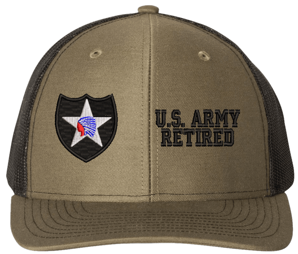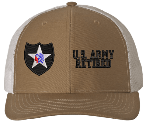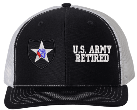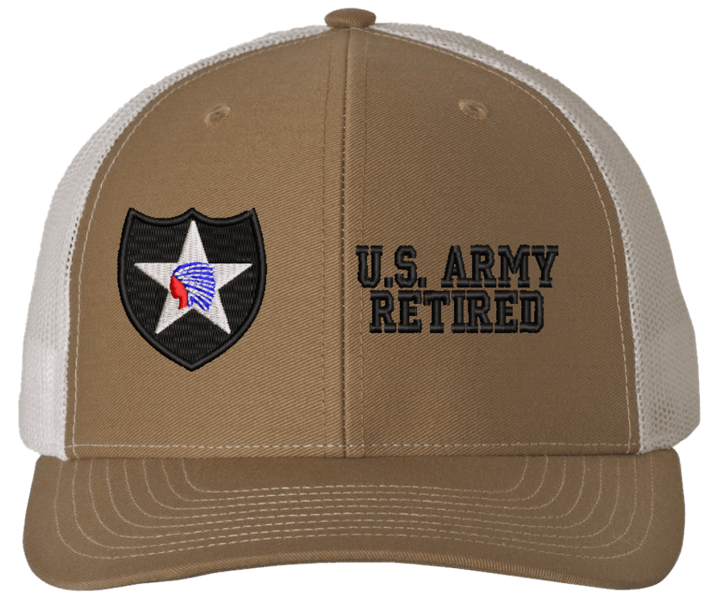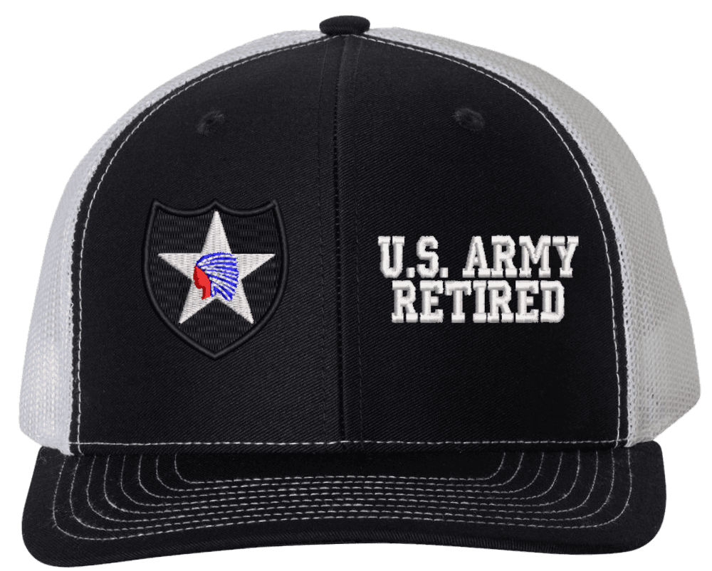 MilitaryBest is proud to offer this Mesh Back 2nd Infantry U.S. Army Retired Split Cap. The 2nd Infantry Division Insignia is embroidered onto a 6x panel mid/low profile mesh back cap and is crisp, clean, and sure to be loved by people of all ages! As with all MilitaryBest caps and apparel your satisfaction is guaranteed!Caps ordered with embroidered back text requires an additional 1 to 2 days of production time. All personalized caps will be embroidered in ALL CAPITAL LETTERS. Caps personalized with back text are not returnable unless there is a material defect in the cap.