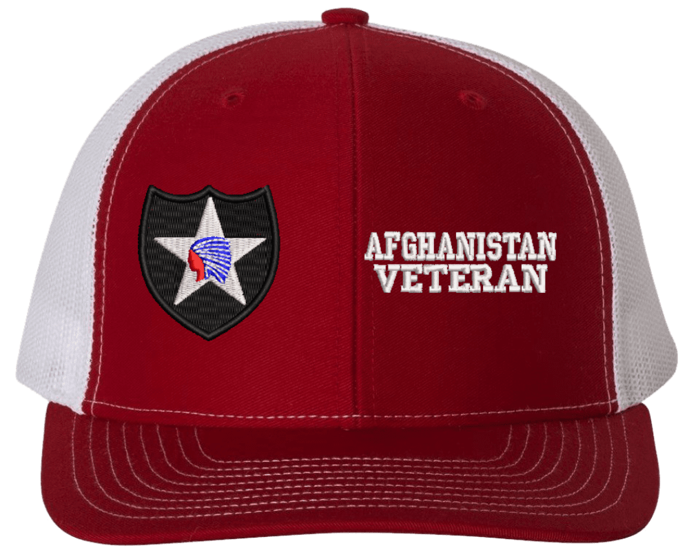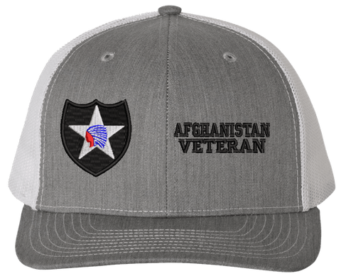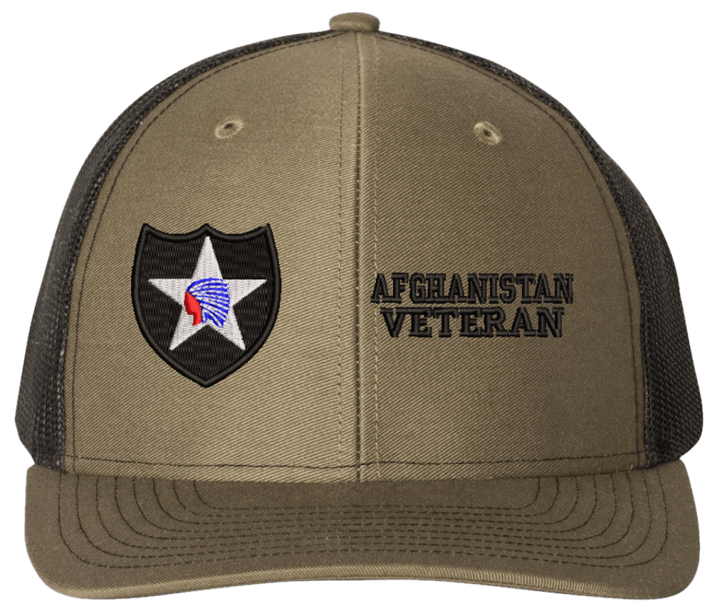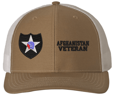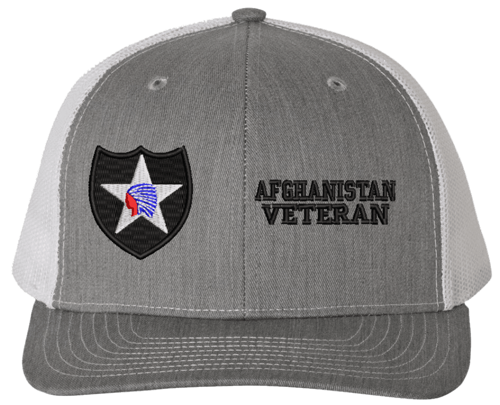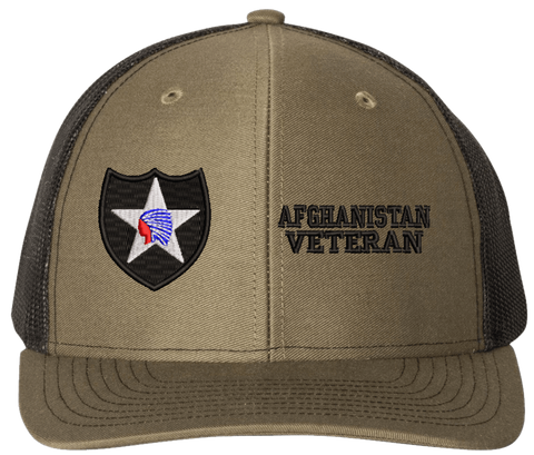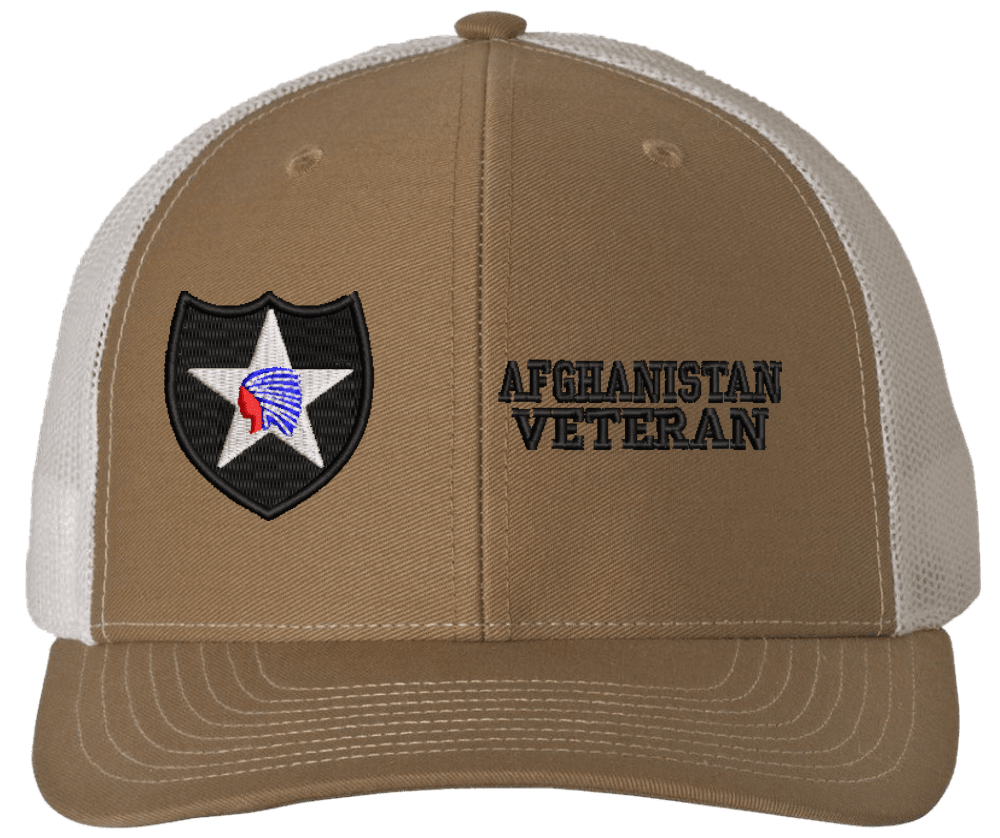 MilitaryBest is proud to offer this Mesh Back 2nd Infantry Afghanistan Veteran Split Cap. The 2nd Infantry Division Insignia is embroidered onto a 6x panel mid/low profile mesh back cap and is crisp, clean, and sure to be loved by people of all ages! As with all MilitaryBest caps and apparel your satisfaction is guaranteed!Caps ordered with embroidered back text requires an additional 1 to 2 days of production time. All personalized caps will be embroidered in ALL CAPITAL LETTERS. Caps personalized with back text are not returnable unless there is a material defect in the cap.