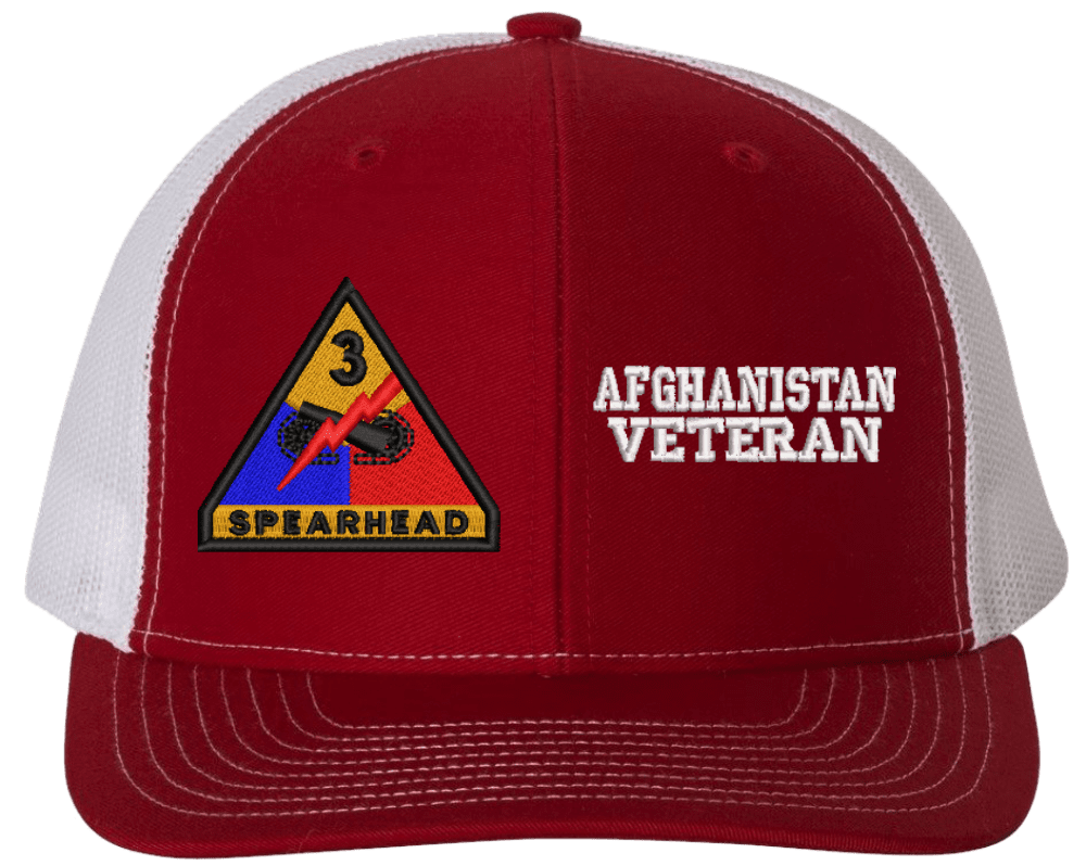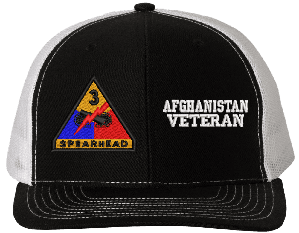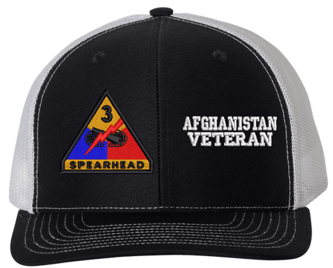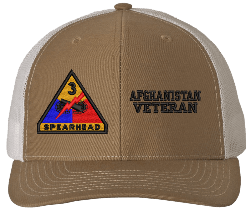 MilitaryBest is proud to offer this Mesh Back 3rd Armored Afghanistan Veteran Split Cap. The 3rd Armored Division Insignia is embroidered onto a 6x panel mid/low profile mesh back cap and is crisp, clean, and sure to be loved by people of all ages! As with all MilitaryBest caps and apparel your satisfaction is guaranteed!Caps ordered with embroidered back text requires an additional 1 to 2 days of production time. All personalized caps will be embroidered in ALL CAPITAL LETTERS. Caps personalized with back text are not returnable unless there is a material defect in the cap.