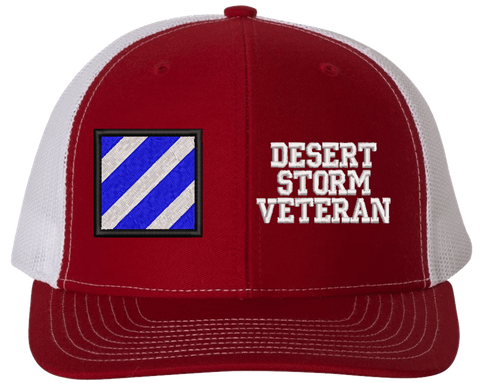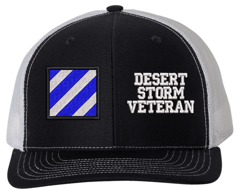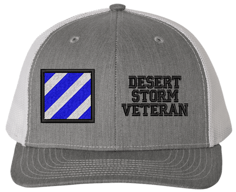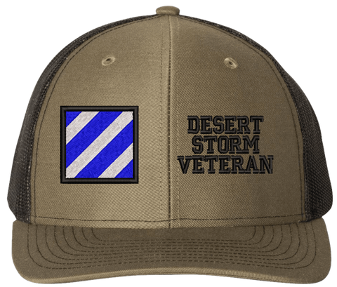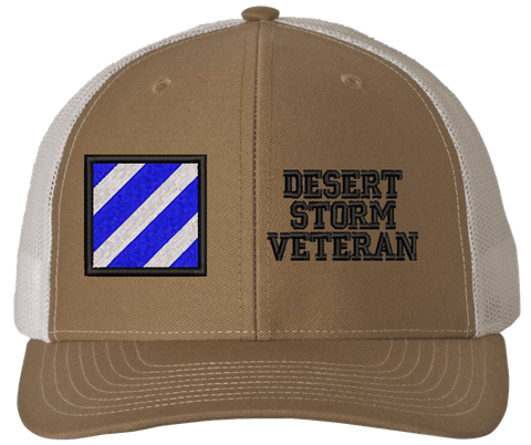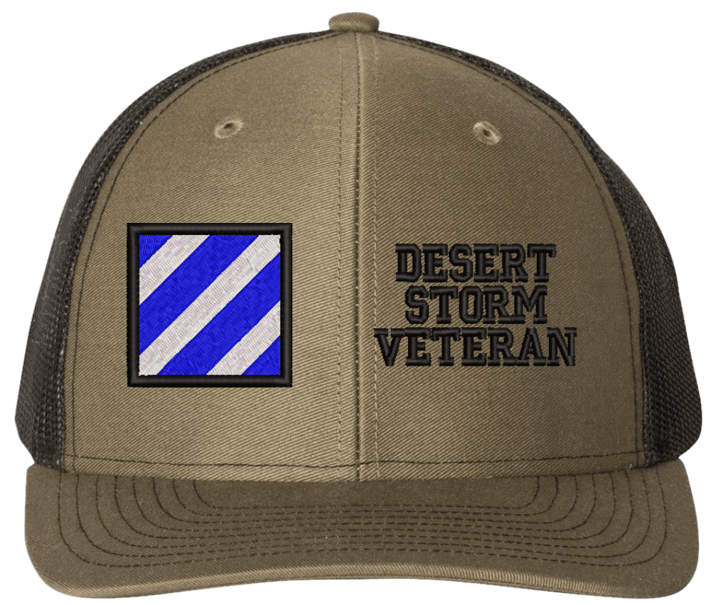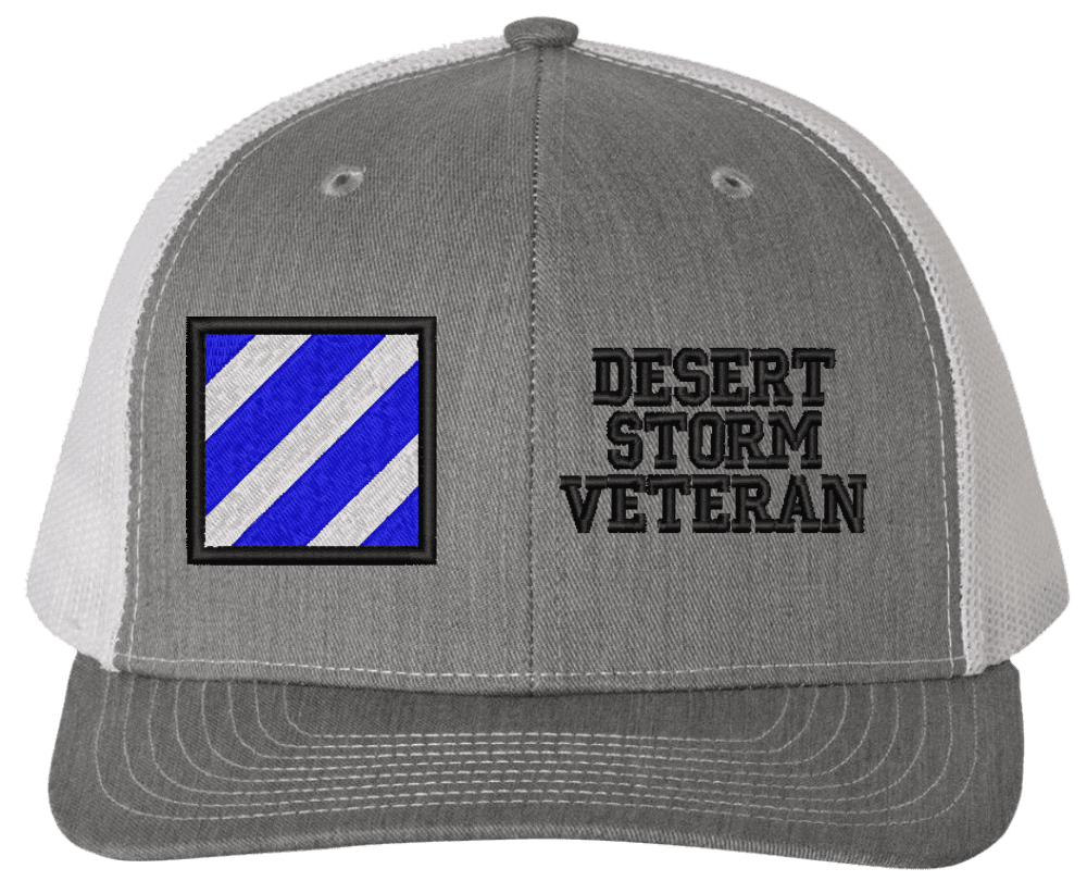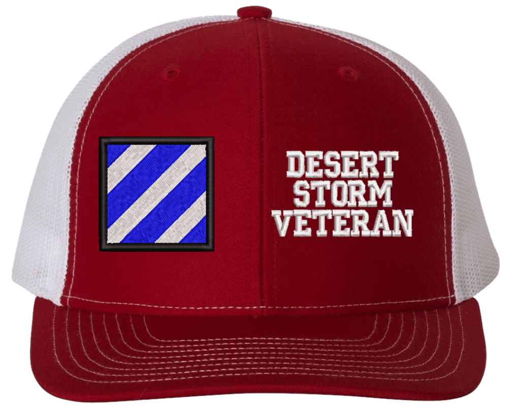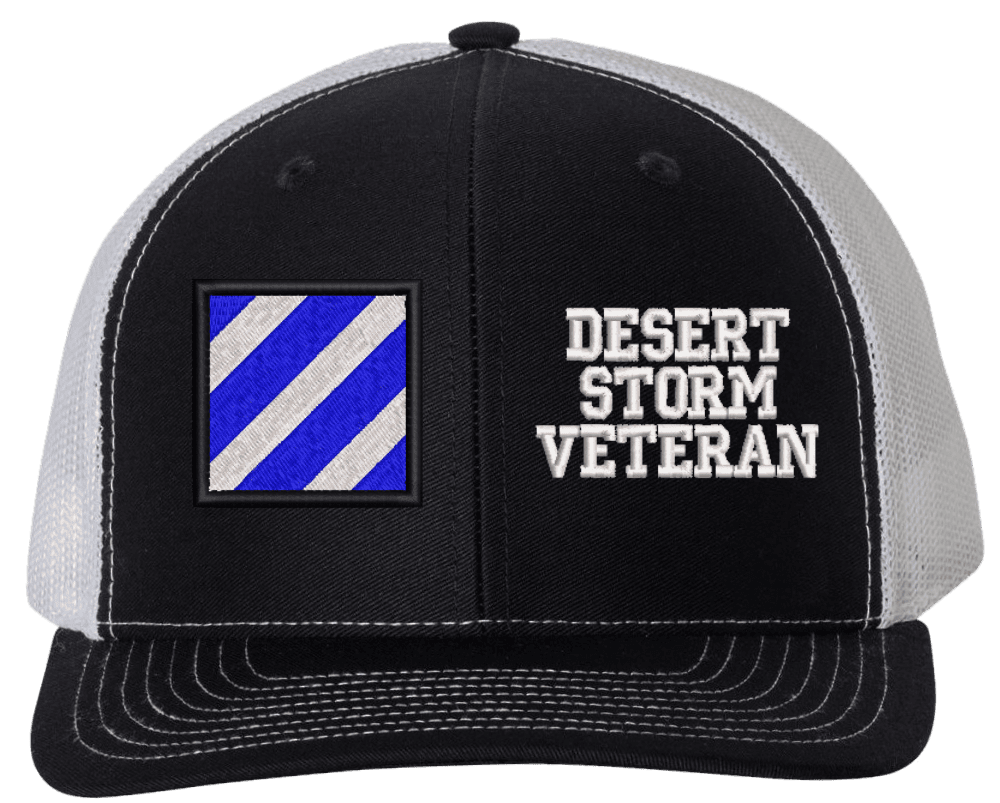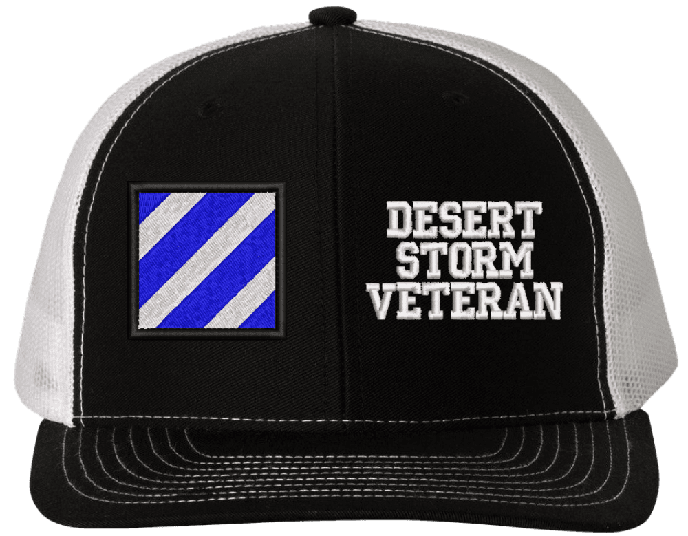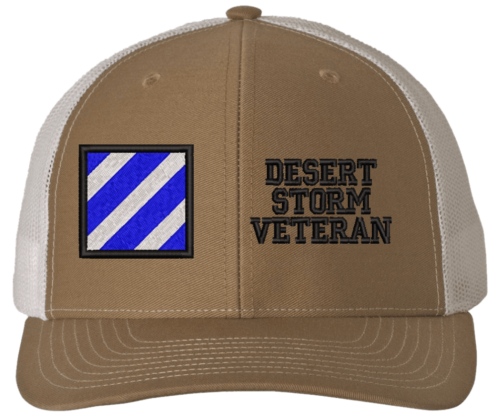 MilitaryBest is proud to offer this Mesh Back 3rd Infantry Desert Storm Veteran Split Cap. The 3rd Infantry Division Insignia is embroidered onto a 6x panel mid/low profile mesh back cap and is crisp, clean, and sure to be loved by people of all ages! As with all MilitaryBest caps and apparel your satisfaction is guaranteed!Caps ordered with embroidered back text requires an additional 1 to 2 days of production time. All personalized caps will be embroidered in ALL CAPITAL LETTERS. Caps personalized with back text are not returnable unless there is a material defect in the cap.