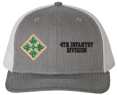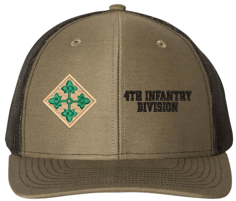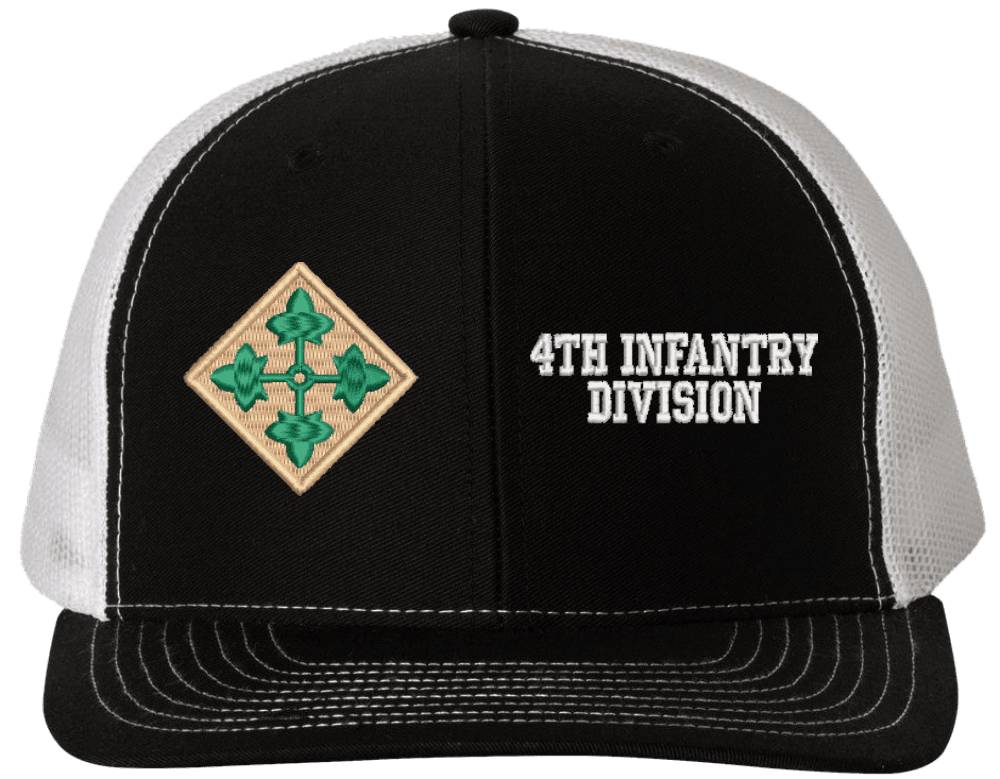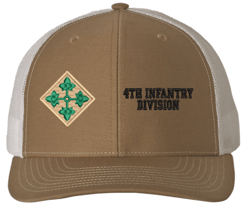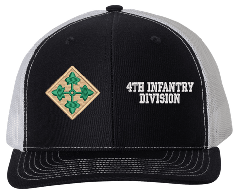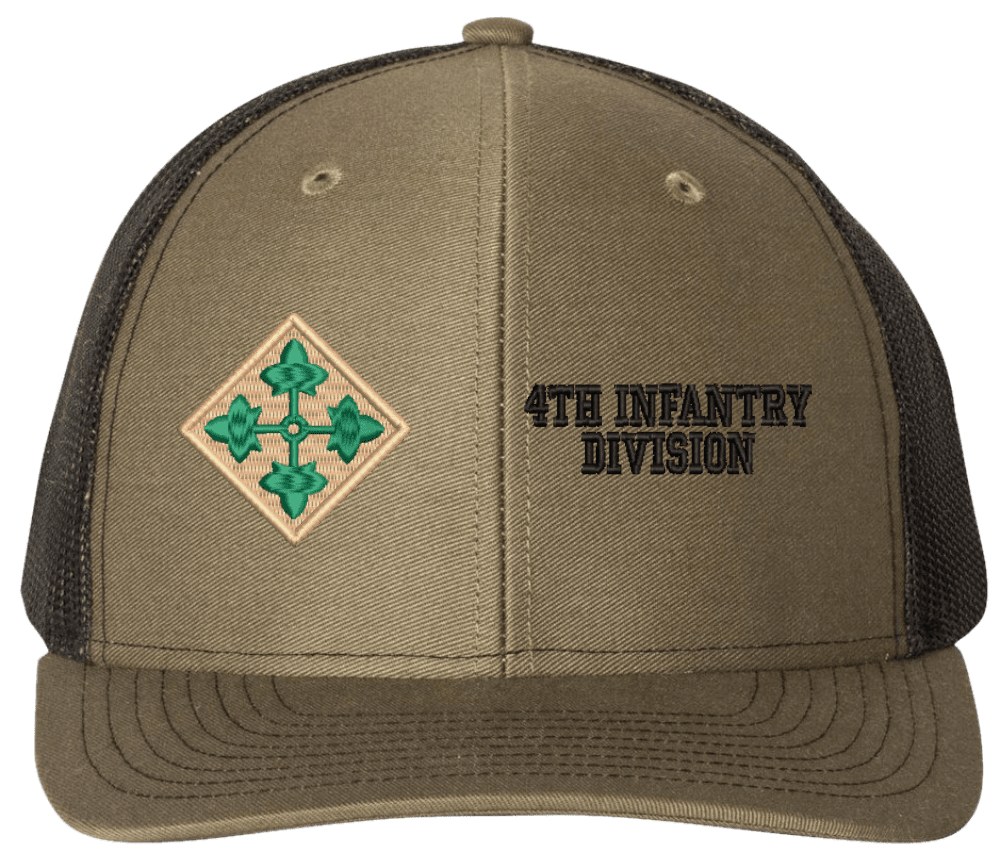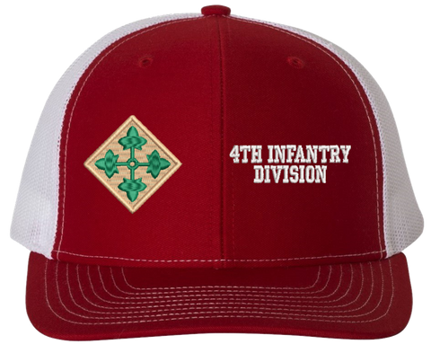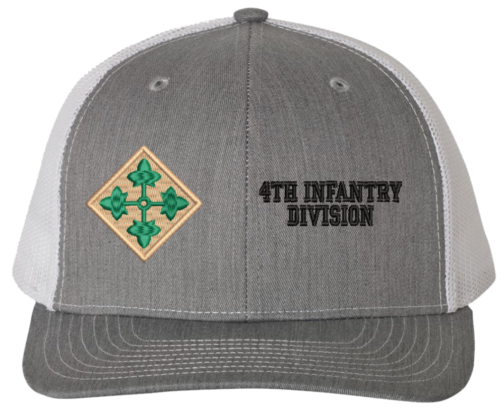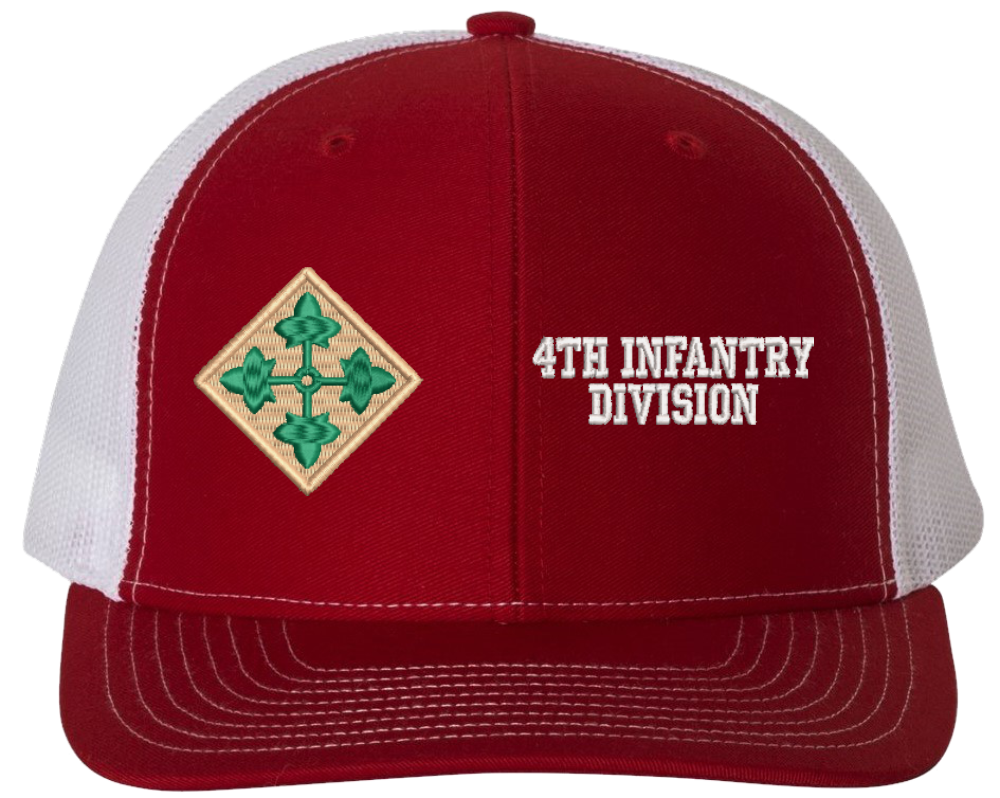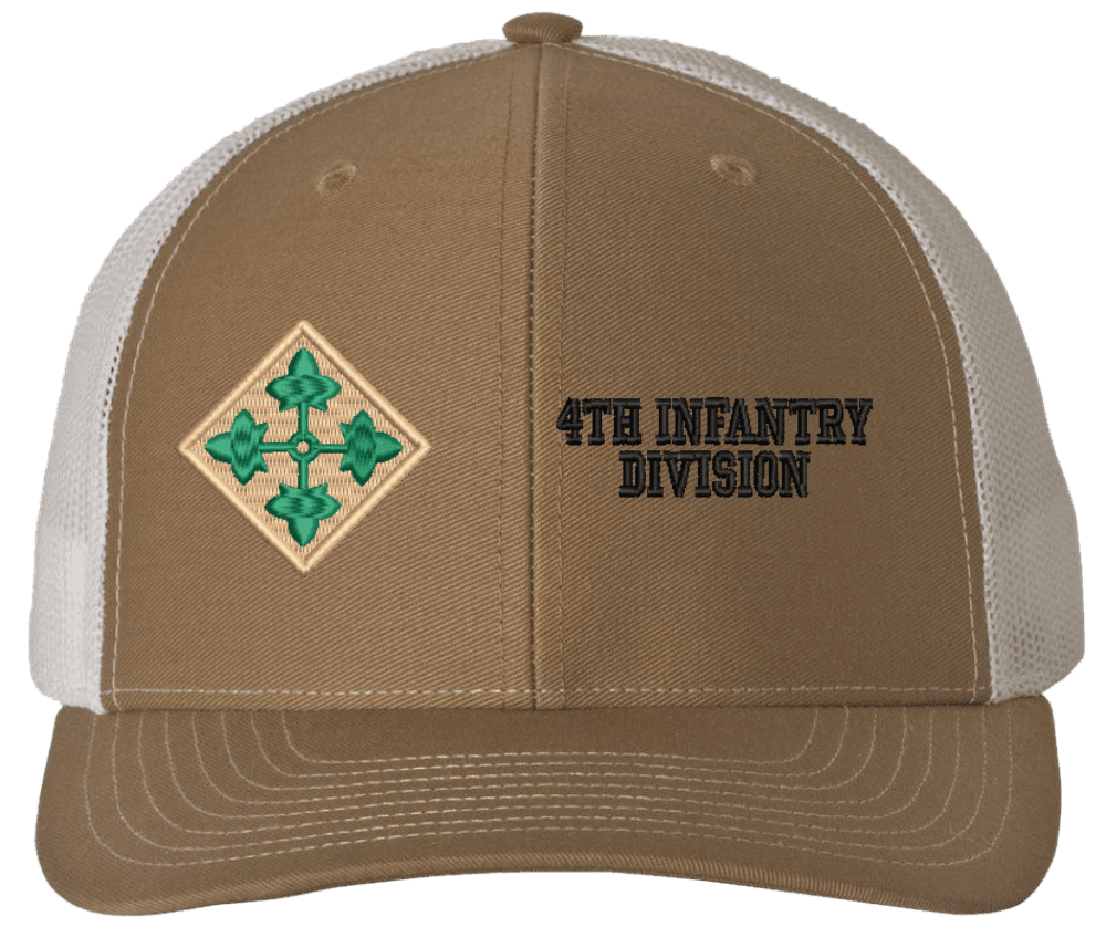 MilitaryBest is proud to offer this Mesh Back 4th Infantry Division Split Cap. The 4th Infantry Division Insignia is embroidered onto a 6x panel mid/low profile mesh back cap and is crisp, clean, and sure to be loved by people of all ages! As with all MilitaryBest caps and apparel your satisfaction is guaranteed!Caps ordered with embroidered back text requires an additional 1 to 2 days of production time. All personalized caps will be embroidered in ALL CAPITAL LETTERS. Caps personalized with back text are not returnable unless there is a material defect in the cap.