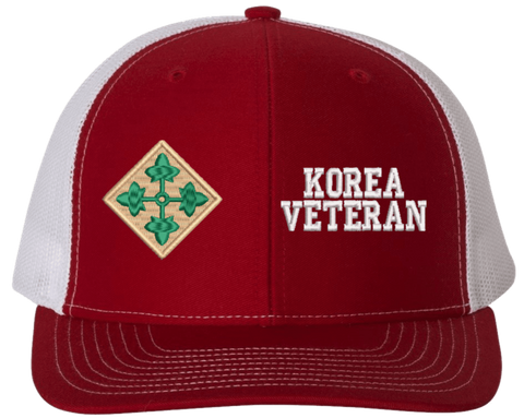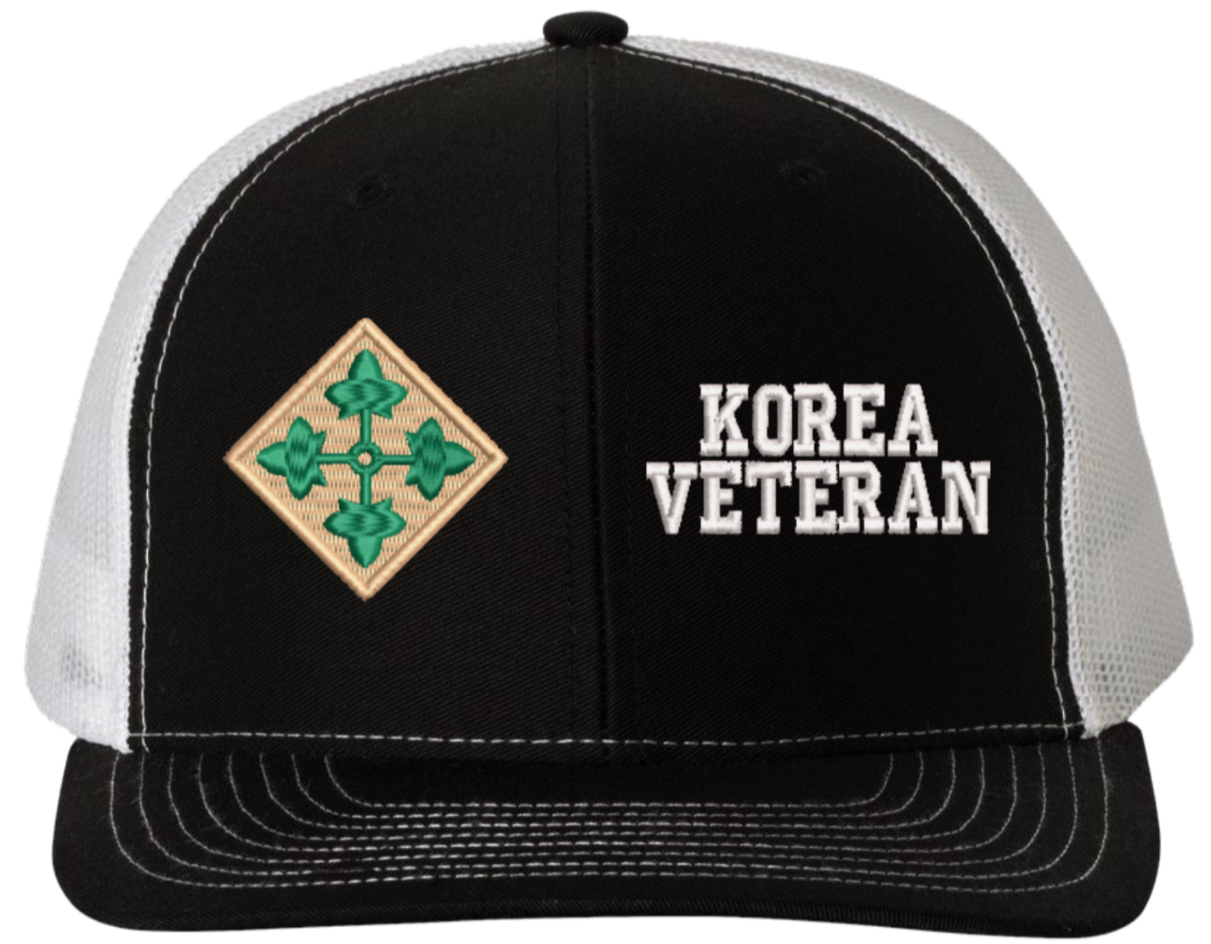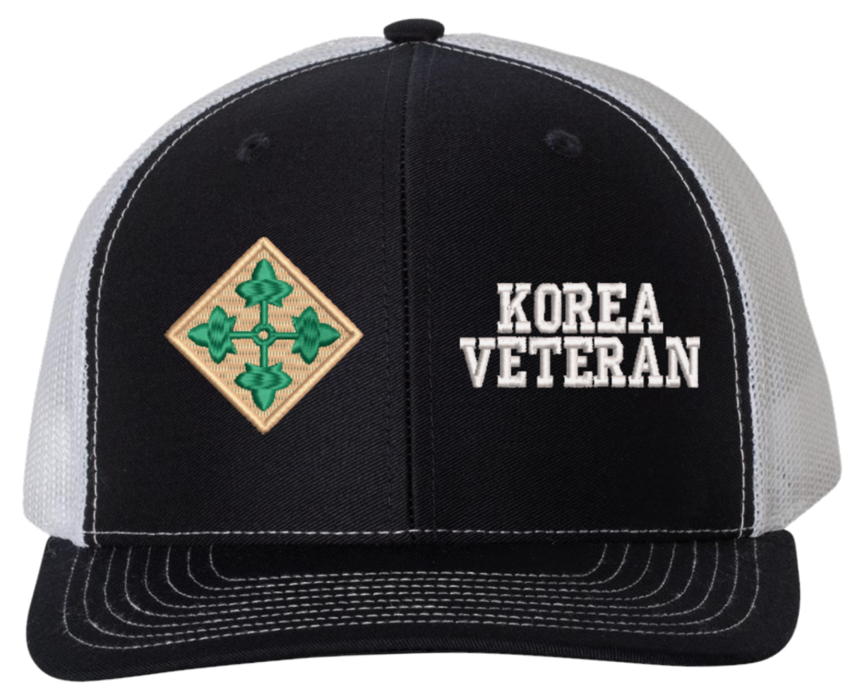 MilitaryBest is proud to offer this Mesh Back 4th Infantry Korea Veteran Split Cap. The 4th Infantry Division Insignia is embroidered onto a 6x panel mid/low profile mesh back cap and is crisp, clean, and sure to be loved by people of all ages! As with all MilitaryBest caps and apparel your satisfaction is guaranteed!Caps ordered with embroidered back text requires an additional 1 to 2 days of production time. All personalized caps will be embroidered in ALL CAPITAL LETTERS. Caps personalized with back text are not returnable unless there is a material defect in the cap.