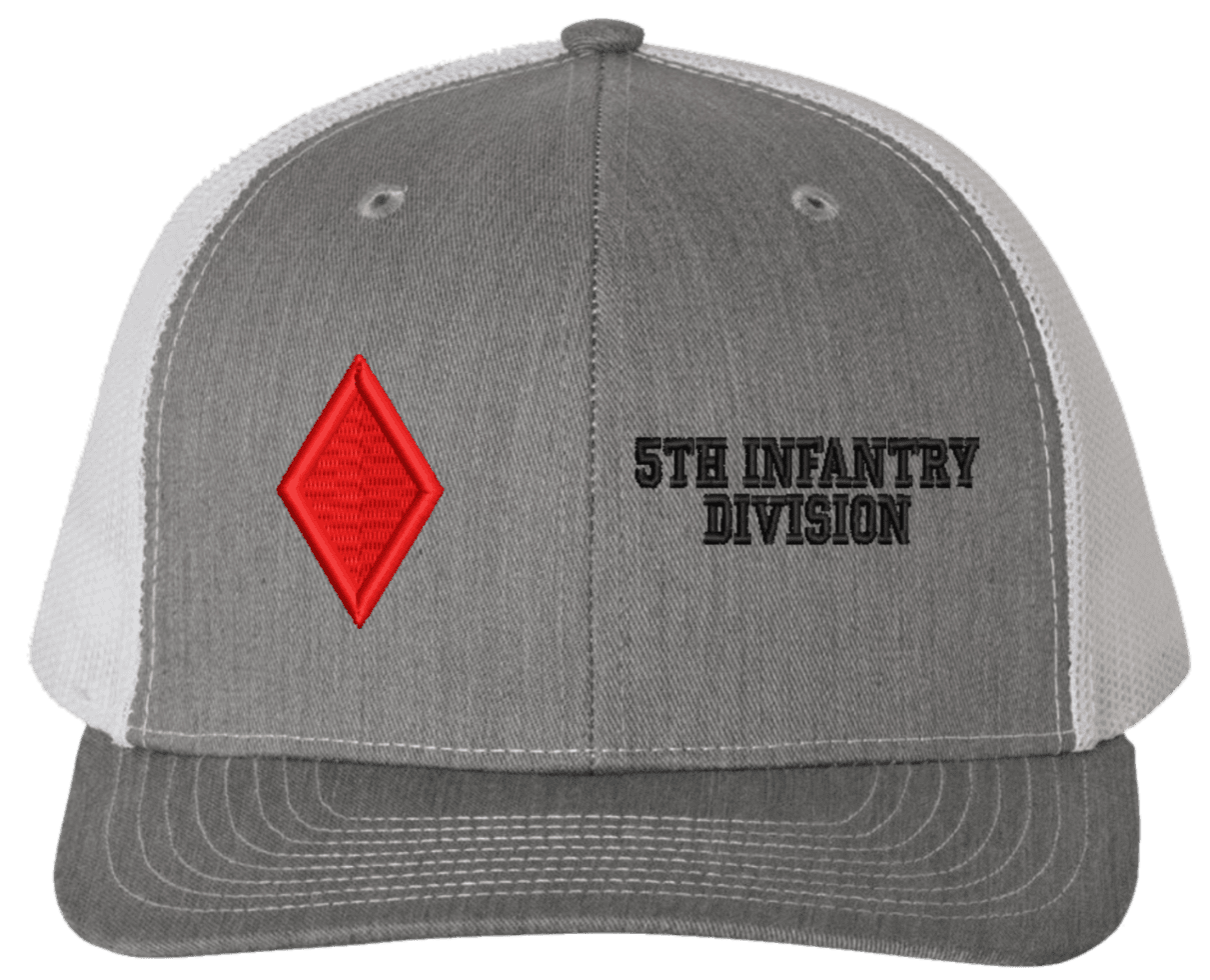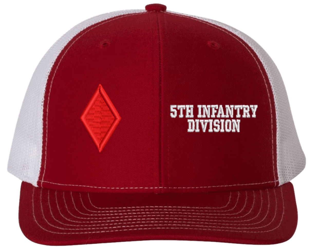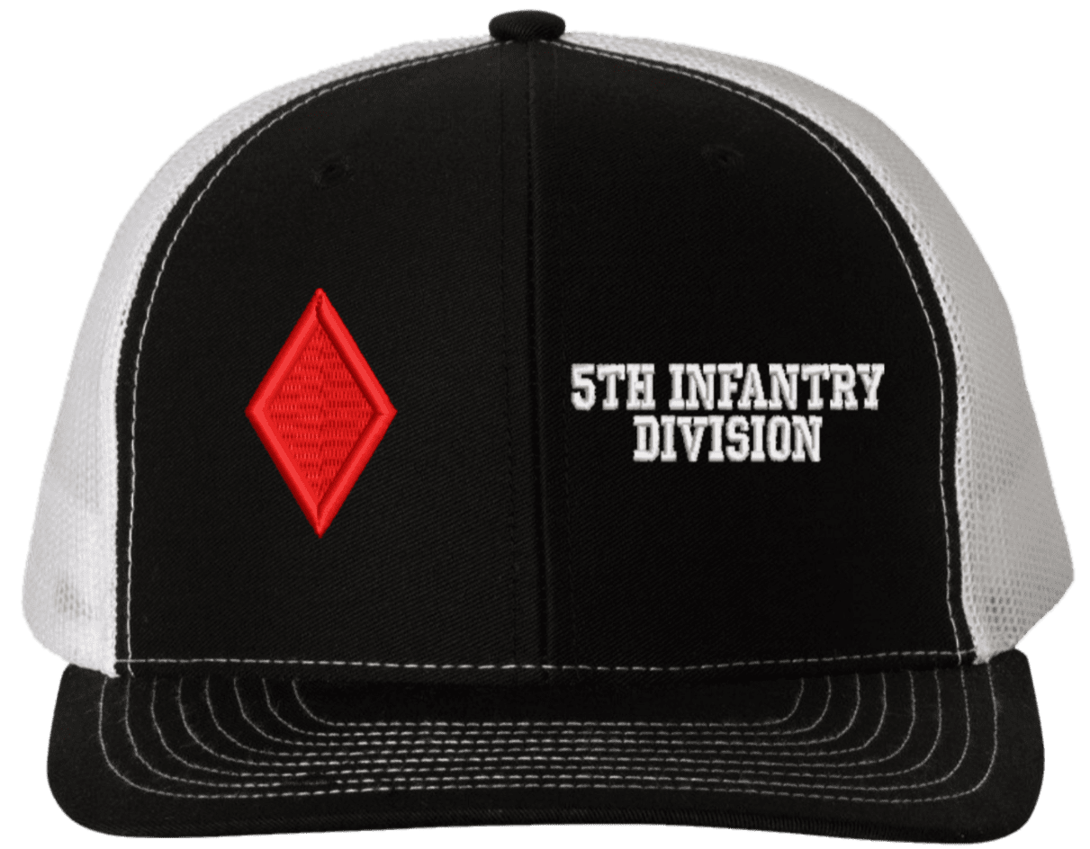 MilitaryBest is proud to offer this Mesh Back 5th Infantry Division Split Cap. The 5th Infantry Division Insignia is embroidered onto a 6x panel mid/low profile mesh back cap and is crisp, clean, and sure to be loved by people of all ages! As with all MilitaryBest caps and apparel your satisfaction is guaranteed!Caps ordered with embroidered back text requires an additional 1 to 2 days of production time. All personalized caps will be embroidered in ALL CAPITAL LETTERS. Caps personalized with back text are not returnable unless there is a material defect in the cap.