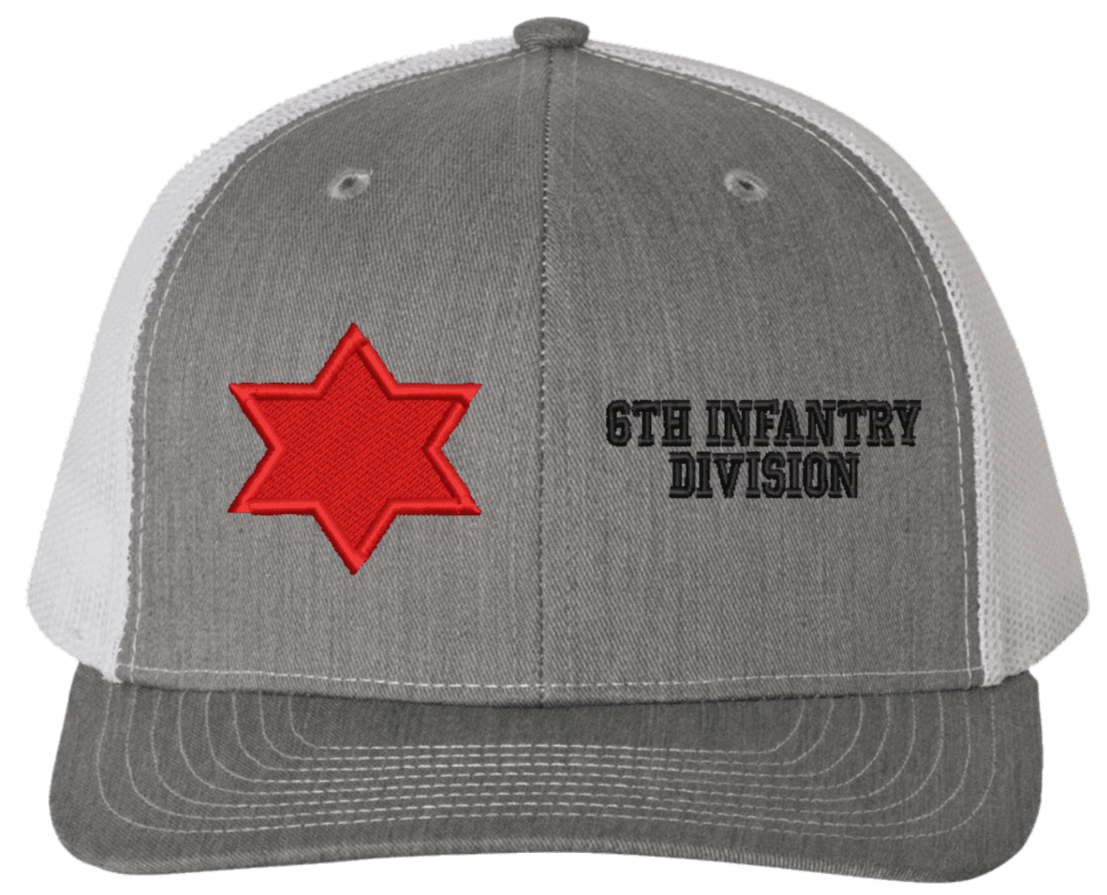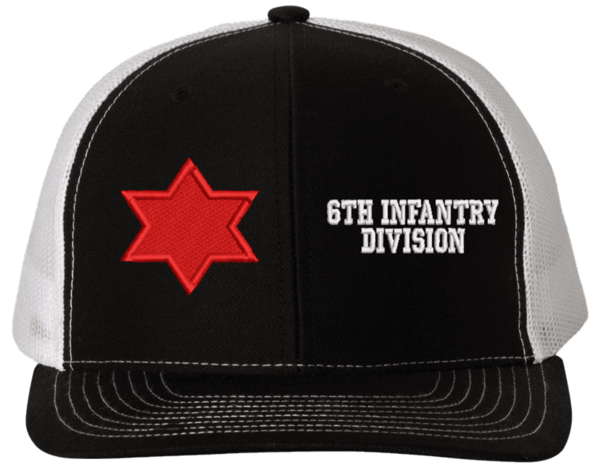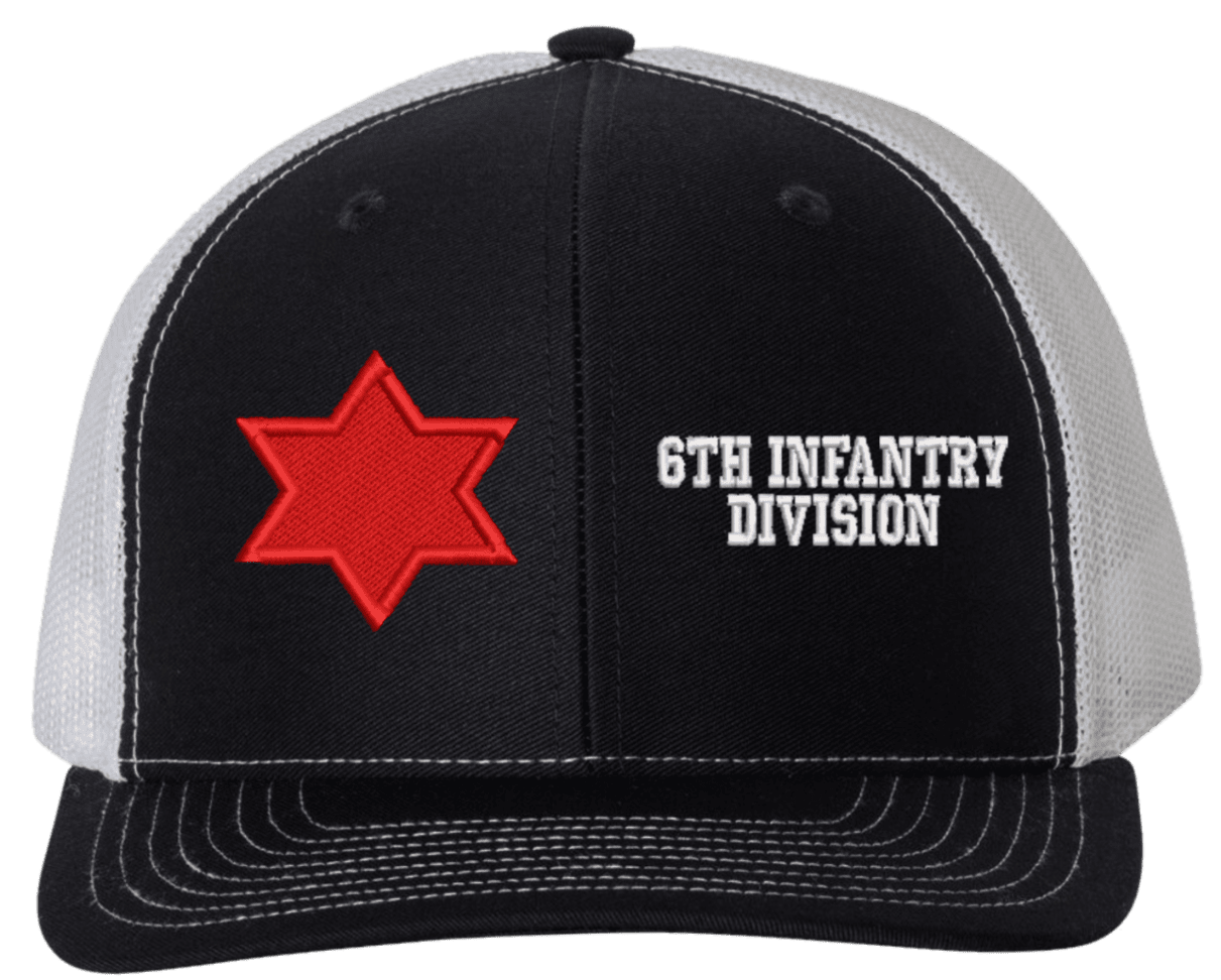 MilitaryBest is proud to offer this Mesh Back 6th Infantry Division Split Cap. The 6th Infantry Division Insignia is embroidered onto a 6x panel mid/low profile mesh back cap and is crisp, clean, and sure to be loved by people of all ages! As with all MilitaryBest caps and apparel your satisfaction is guaranteed!Caps ordered with embroidered back text requires an additional 1 to 2 days of production time. All personalized caps will be embroidered in ALL CAPITAL LETTERS. Caps personalized with back text are not returnable unless there is a material defect in the cap.