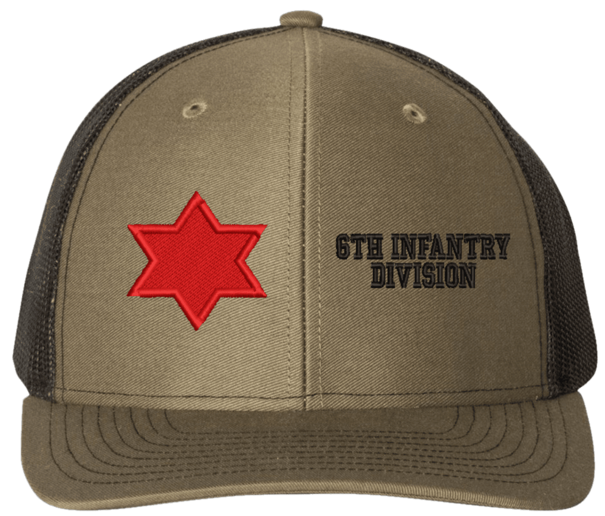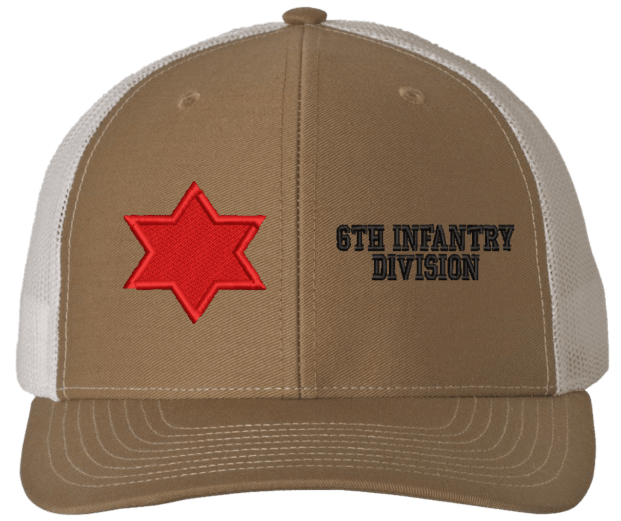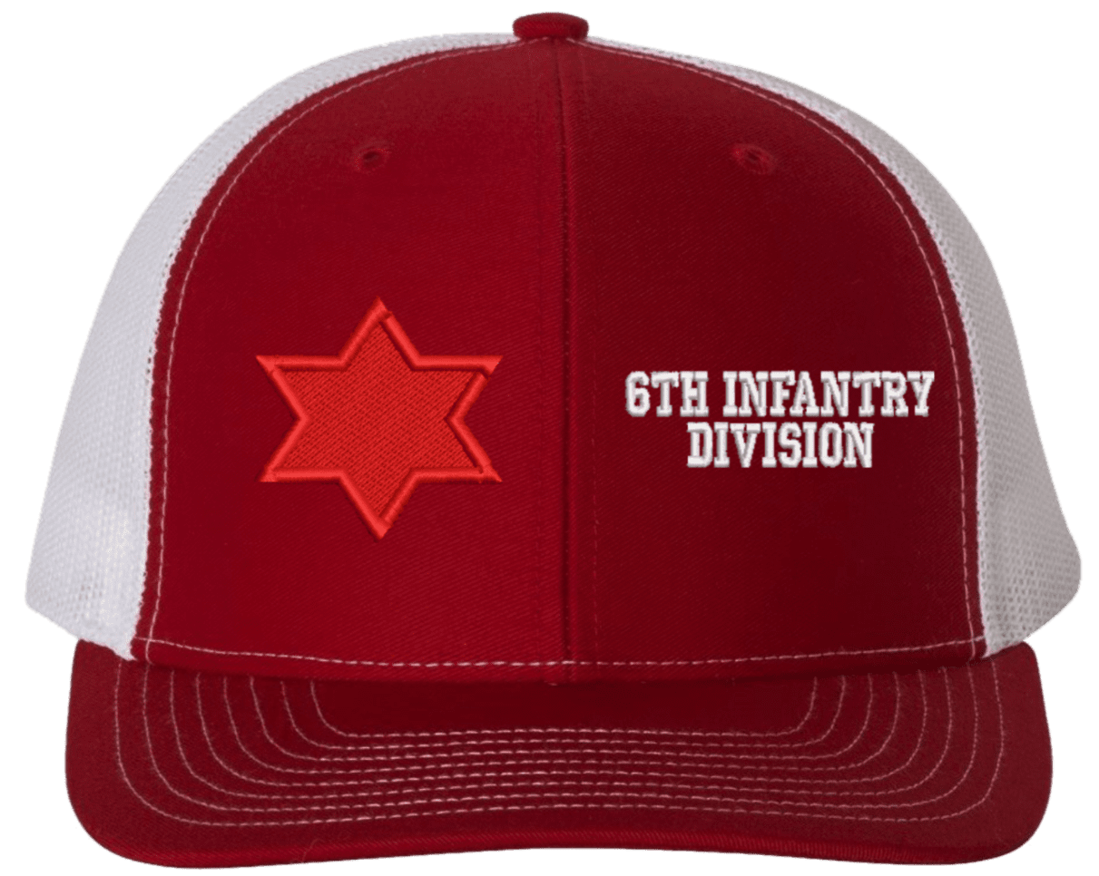 MilitaryBest is proud to offer this Mesh Back 6th Infantry Division Split Cap. The 6th Infantry Division Insignia is embroidered onto a 6x panel mid/low profile mesh back cap and is crisp, clean, and sure to be loved by people of all ages! As with all MilitaryBest caps and apparel your satisfaction is guaranteed!Caps ordered with embroidered back text requires an additional 1 to 2 days of production time. All personalized caps will be embroidered in ALL CAPITAL LETTERS. Caps personalized with back text are not returnable unless there is a material defect in the cap.