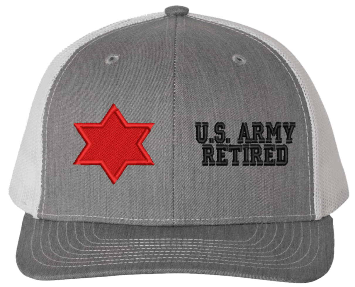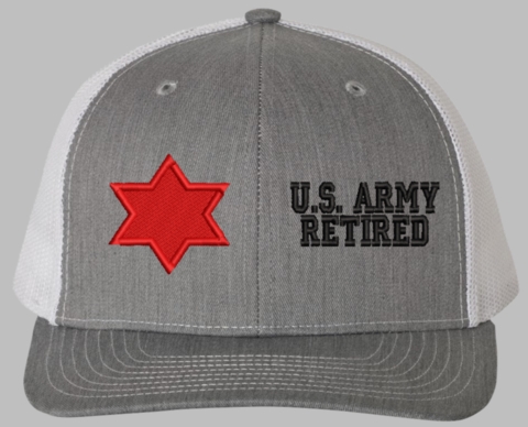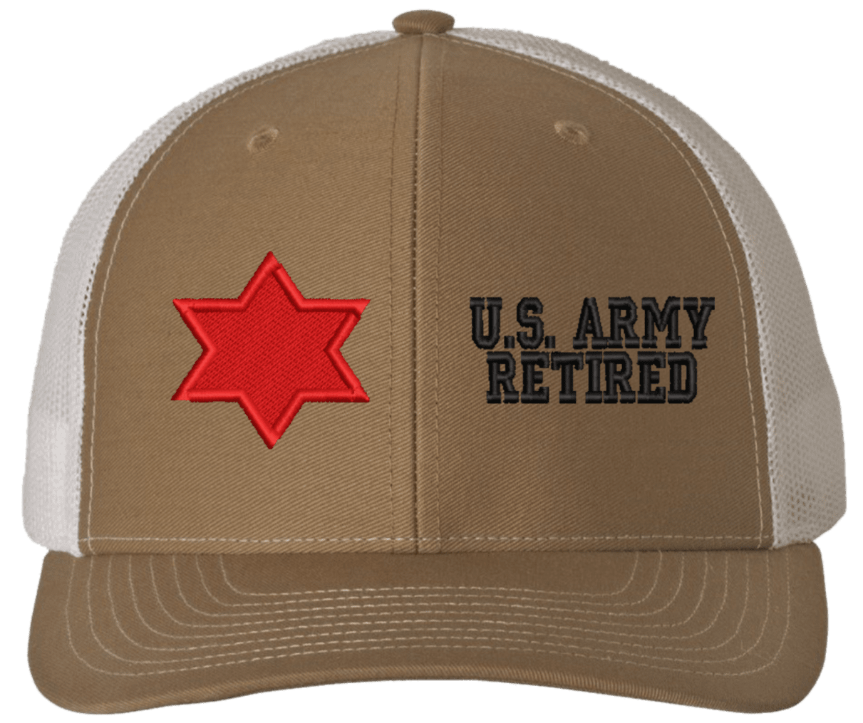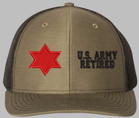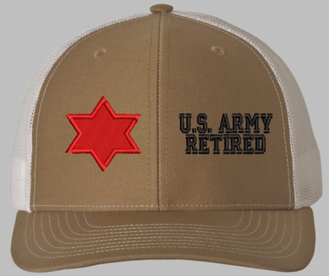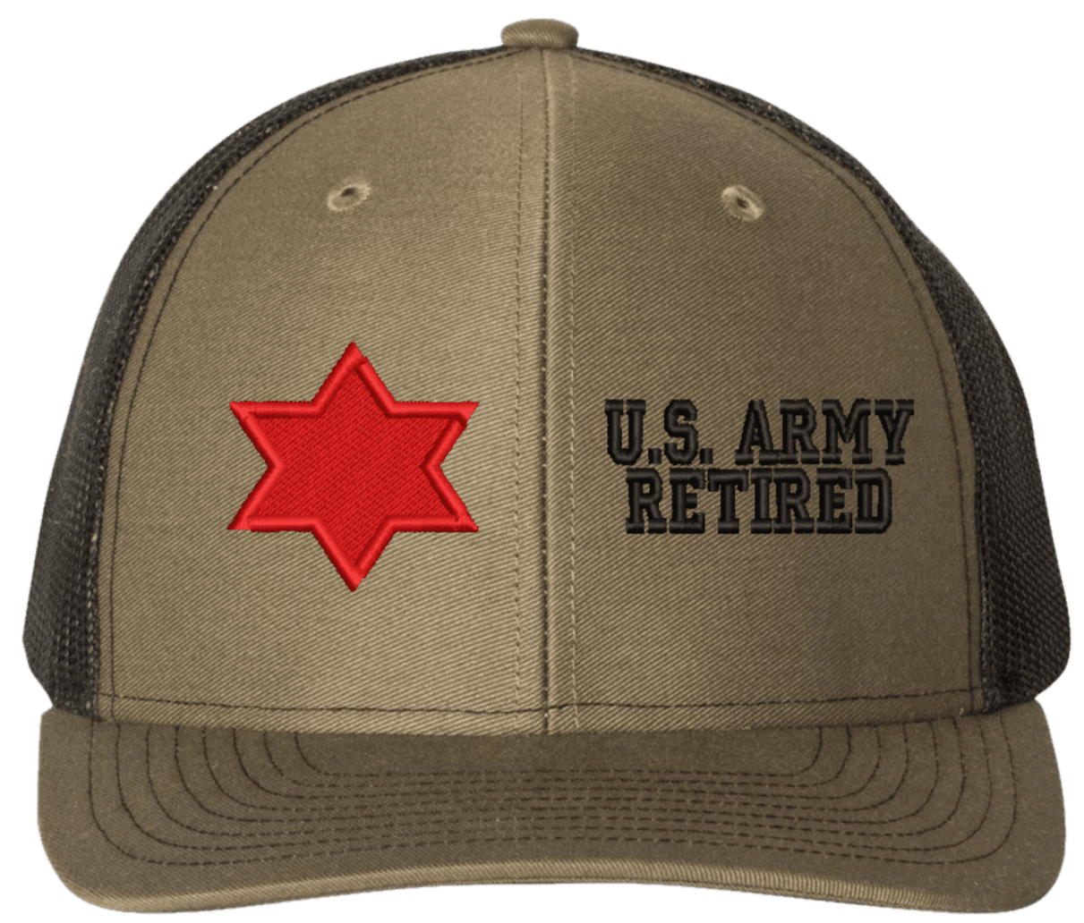 MilitaryBest is proud to offer this Mesh Back 6th Infantry U.S. Army Retired Split Cap. The 6th Infantry Division Insignia is embroidered onto a 6x panel mid/low profile mesh back cap and is crisp, clean, and sure to be loved by people of all ages! As with all MilitaryBest caps and apparel your satisfaction is guaranteed!Caps ordered with embroidered back text requires an additional 1 to 2 days of production time. All personalized caps will be embroidered in ALL CAPITAL LETTERS. Caps personalized with back text are not returnable unless there is a material defect in the cap.