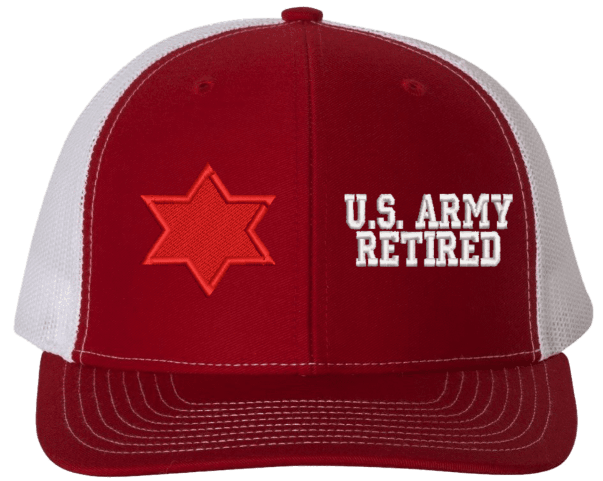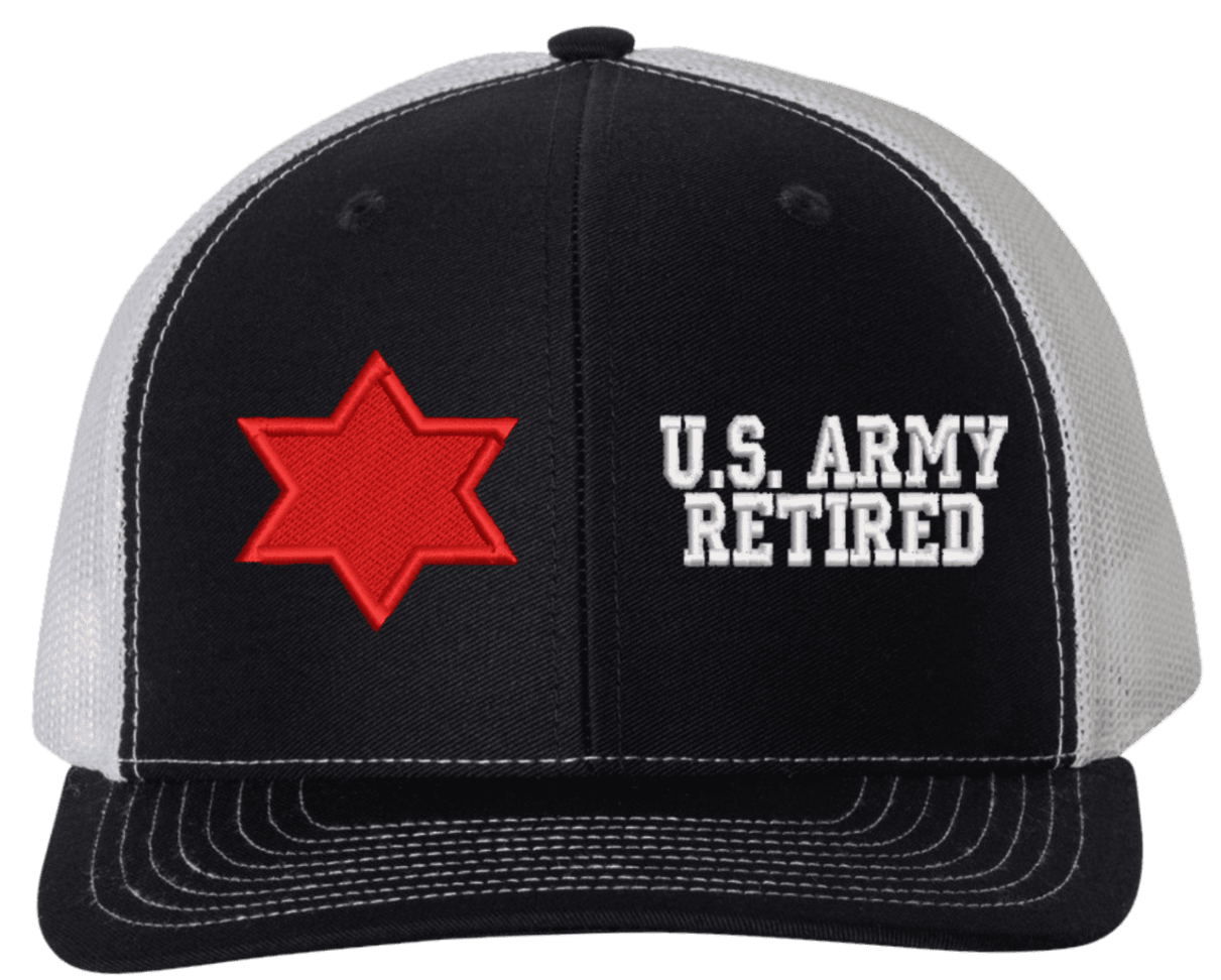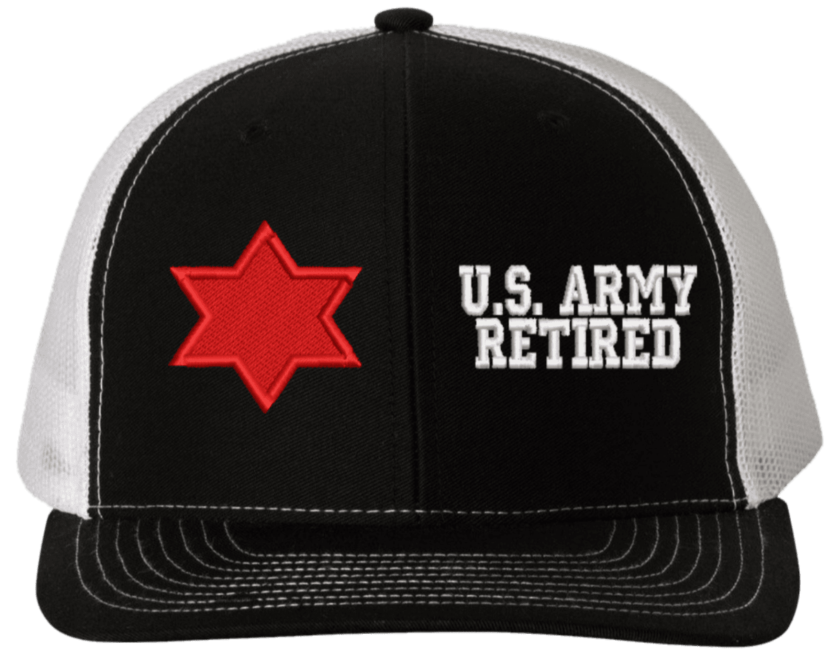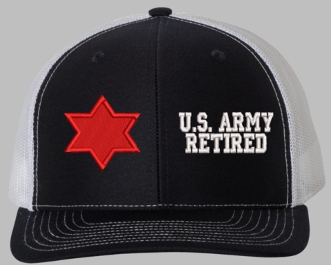 MilitaryBest is proud to offer this Mesh Back 6th Infantry U.S. Army Retired Split Cap. The 6th Infantry Division Insignia is embroidered onto a 6x panel mid/low profile mesh back cap and is crisp, clean, and sure to be loved by people of all ages! As with all MilitaryBest caps and apparel your satisfaction is guaranteed!Caps ordered with embroidered back text requires an additional 1 to 2 days of production time. All personalized caps will be embroidered in ALL CAPITAL LETTERS. Caps personalized with back text are not returnable unless there is a material defect in the cap.