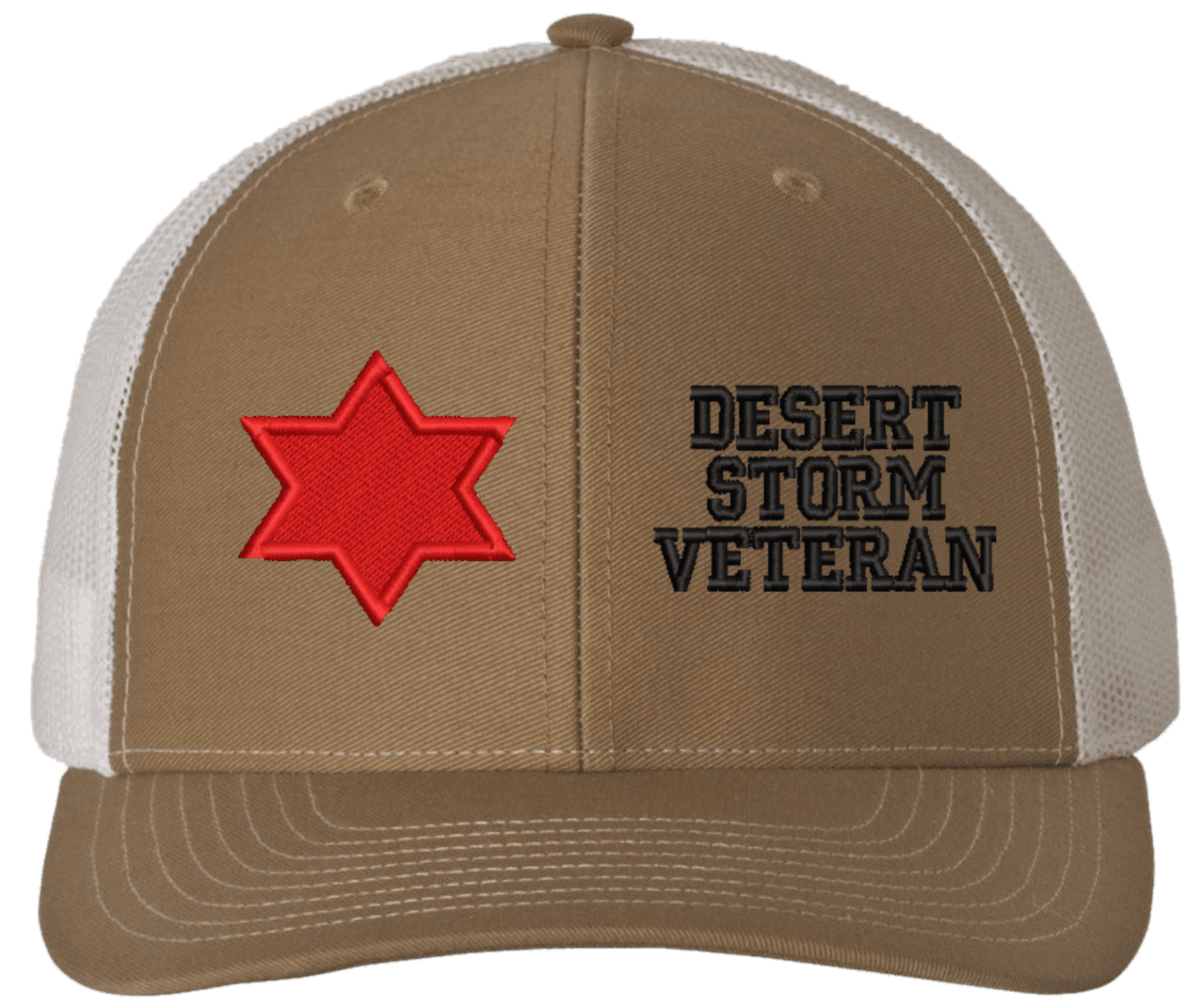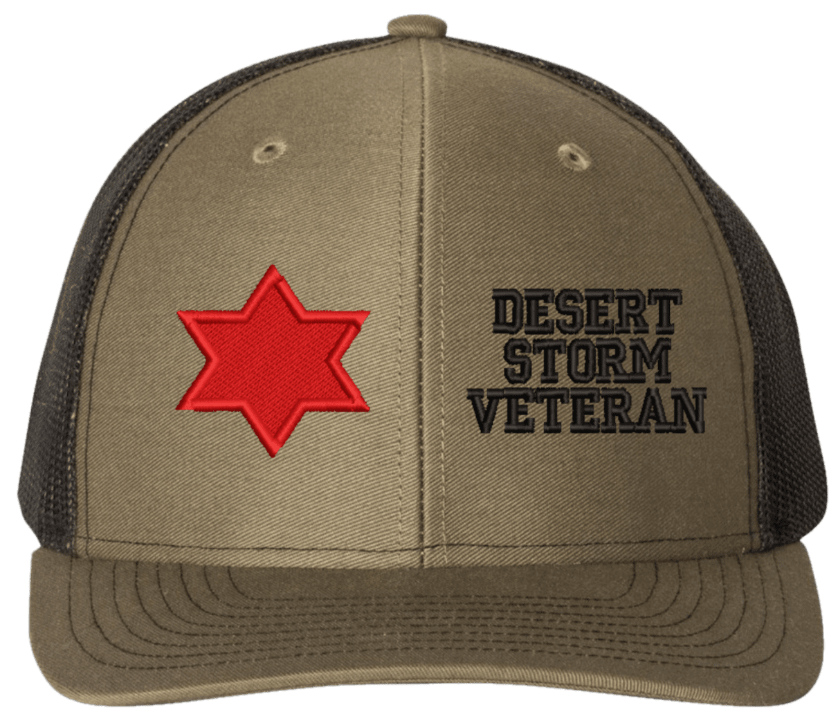 MilitaryBest is proud to offer this Mesh Back 6th Infantry Desert Storm Veteran Split Cap. The 6th Infantry Division Insignia is embroidered onto a 6x panel mid/low profile mesh back cap and is crisp, clean, and sure to be loved by people of all ages! As with all MilitaryBest caps and apparel your satisfaction is guaranteed!Caps ordered with embroidered back text requires an additional 1 to 2 days of production time. All personalized caps will be embroidered in ALL CAPITAL LETTERS. Caps personalized with back text are not returnable unless there is a material defect in the cap.