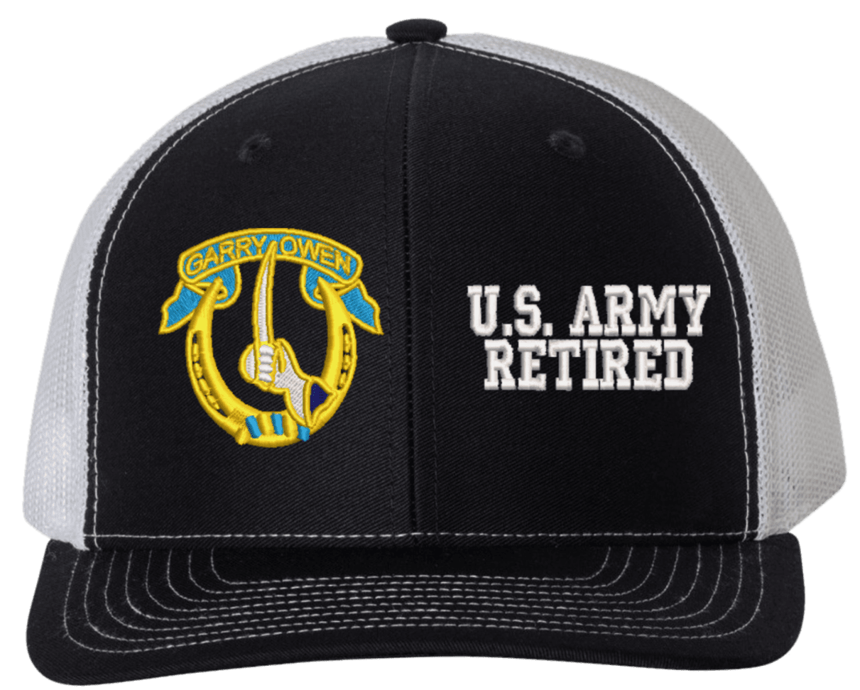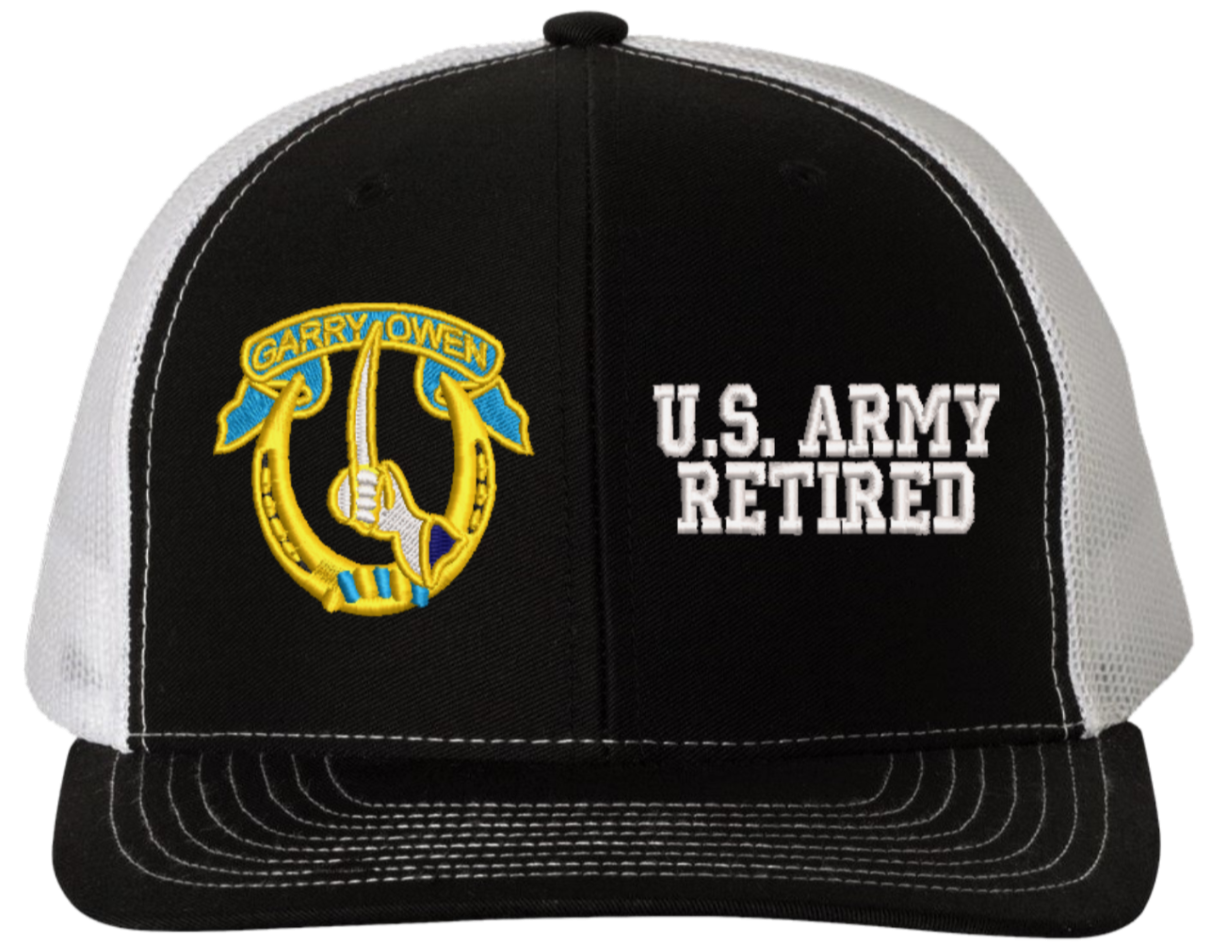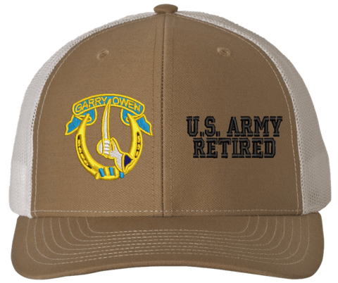MilitaryBest is proud to offer this Mesh Back 7th Cavalry U.S. Army Retired Split Cap. The 7th Cavalry Regiment Insignia is embroidered onto a 6x panel mid/low profile mesh back cap and is crisp, clean, and sure to be loved by people of all ages! As with all MilitaryBest caps and apparel your satisfaction is guaranteed!Caps ordered with embroidered back text requires an additional 1 to 2 days of production time. All personalized caps will be embroidered in ALL CAPITAL LETTERS. Caps personalized with back text are not returnable unless there is a material defect in the cap.