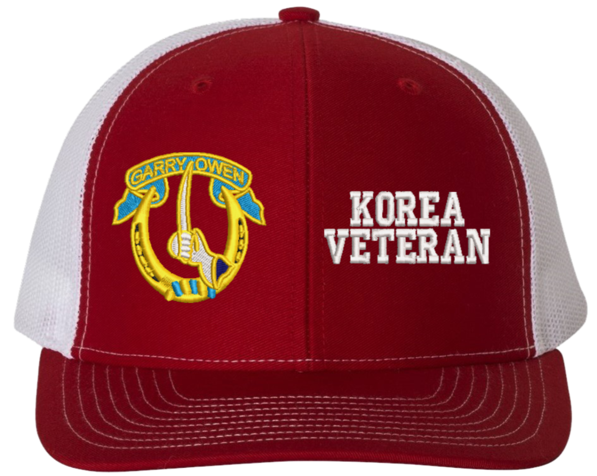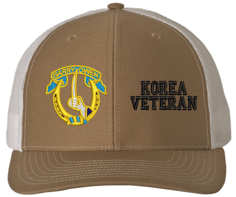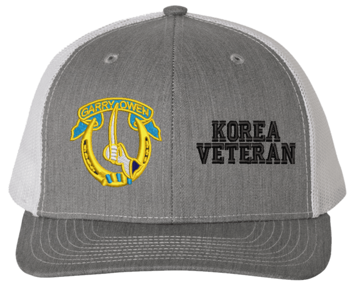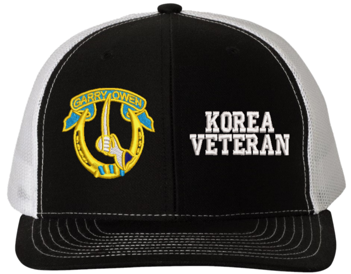 MilitaryBest is proud to offer this Mesh Back 7th Cavalry Korea Veteran Split Cap. The 7th Cavalry Regiment Insignia is embroidered onto a 6x panel mid/low profile mesh back cap and is crisp, clean, and sure to be loved by people of all ages! As with all MilitaryBest caps and apparel your satisfaction is guaranteed!Caps ordered with embroidered back text requires an additional 1 to 2 days of production time. All personalized caps will be embroidered in ALL CAPITAL LETTERS. Caps personalized with back text are not returnable unless there is a material defect in the cap.