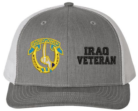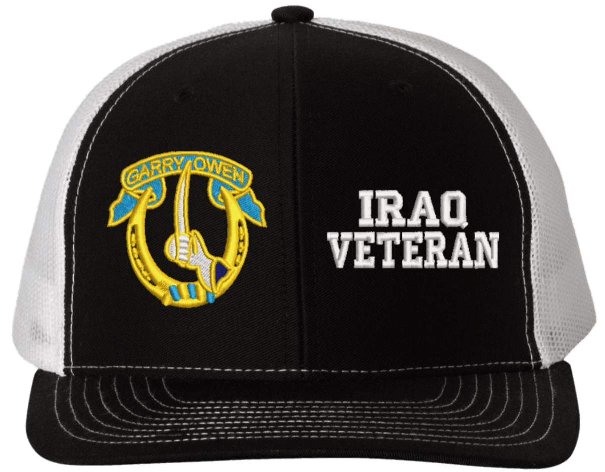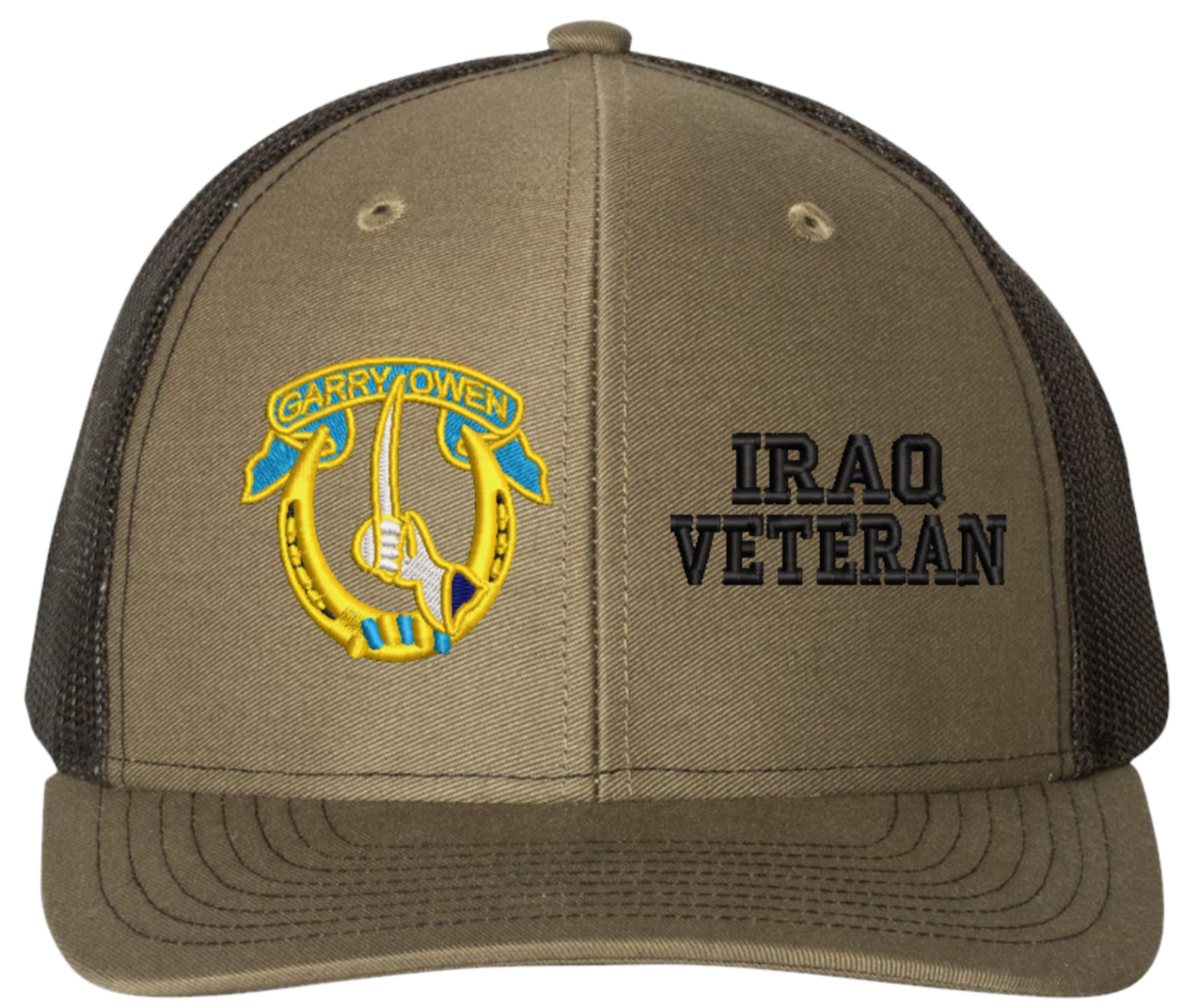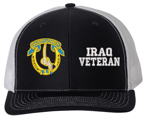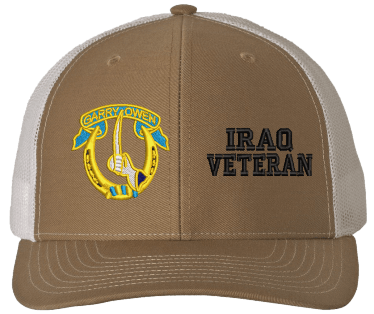 MilitaryBest is proud to offer this Mesh Back 7th Cavalry Iraq Veteran Split Cap. The 7th Cavalry Regiment Insignia is embroidered onto a 6x panel mid/low profile mesh back cap and is crisp, clean, and sure to be loved by people of all ages! As with all MilitaryBest caps and apparel your satisfaction is guaranteed!Caps ordered with embroidered back text requires an additional 1 to 2 days of production time. All personalized caps will be embroidered in ALL CAPITAL LETTERS. Caps personalized with back text are not returnable unless there is a material defect in the cap.