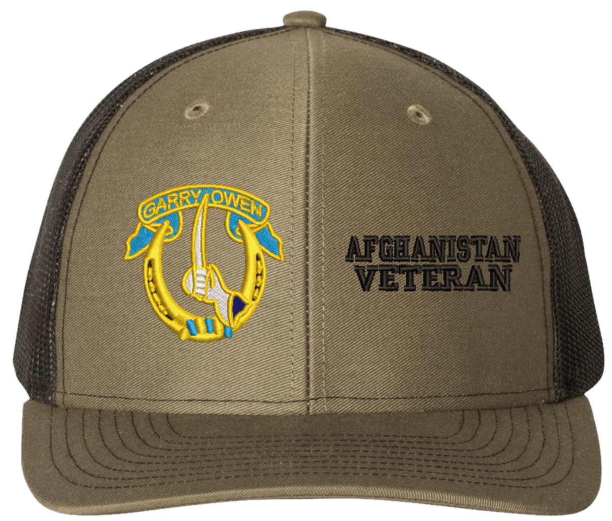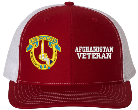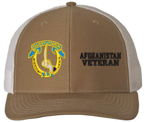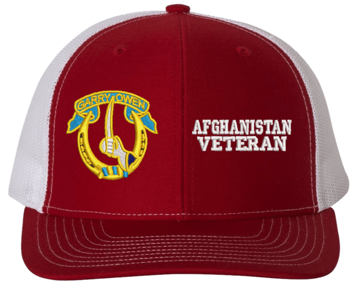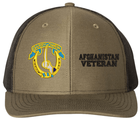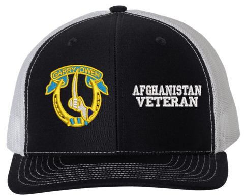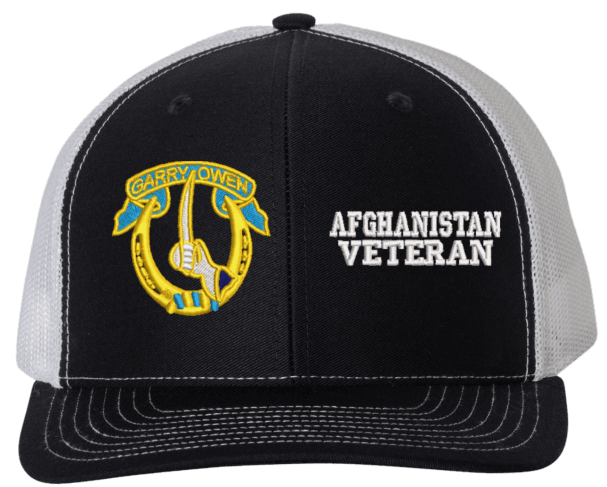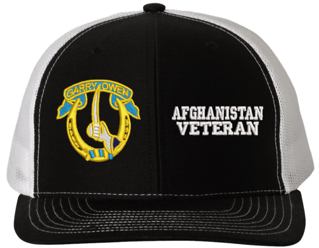 MilitaryBest is proud to offer this Mesh Back 7th Cavalry Afghanistan Veteran Split Cap. The 7th Cavalry Regiment Insignia is embroidered onto a 6x panel mid/low profile mesh back cap and is crisp, clean, and sure to be loved by people of all ages! As with all MilitaryBest caps and apparel your satisfaction is guaranteed!Caps ordered with embroidered back text requires an additional 1 to 2 days of production time. All personalized caps will be embroidered in ALL CAPITAL LETTERS. Caps personalized with back text are not returnable unless there is a material defect in the cap.