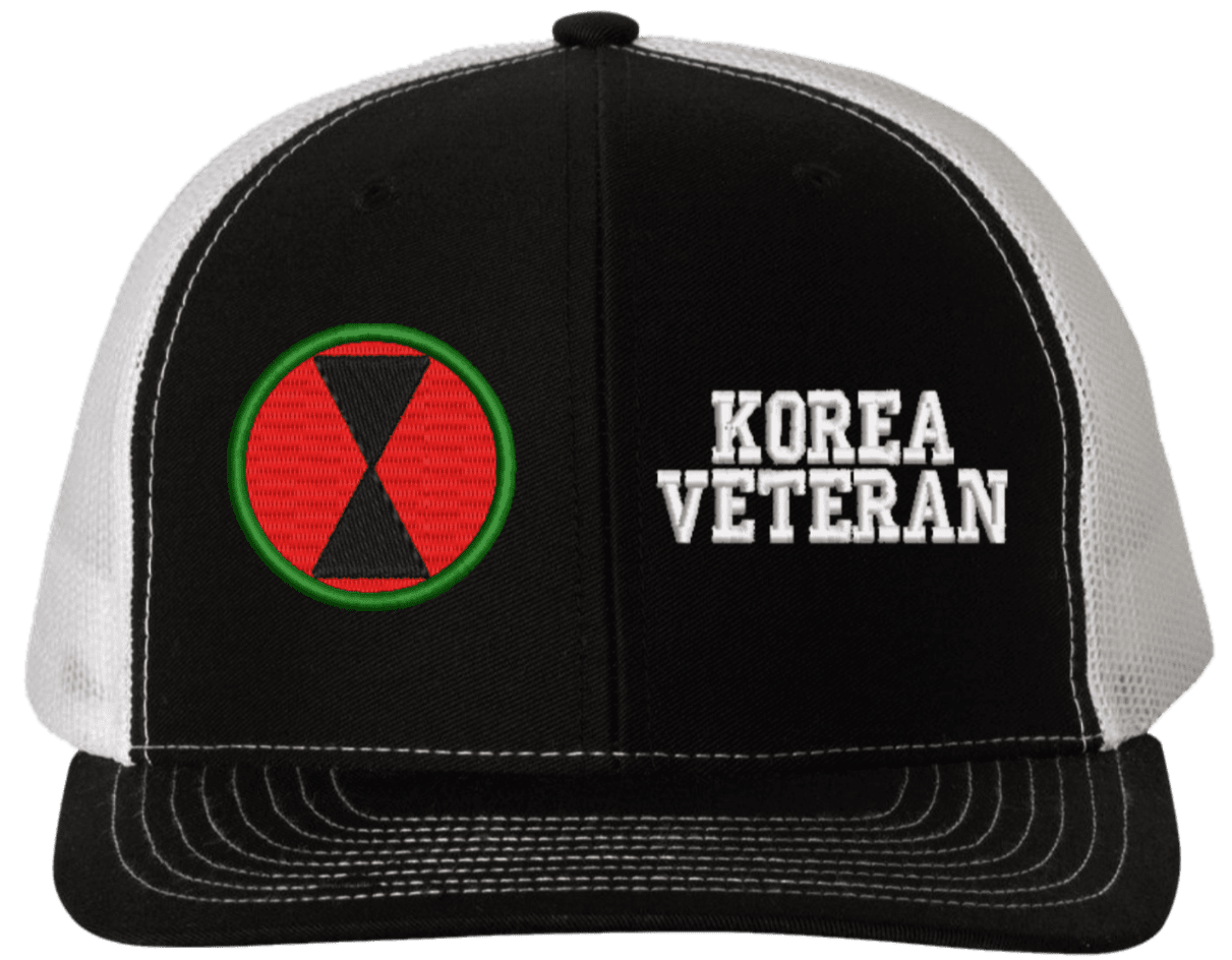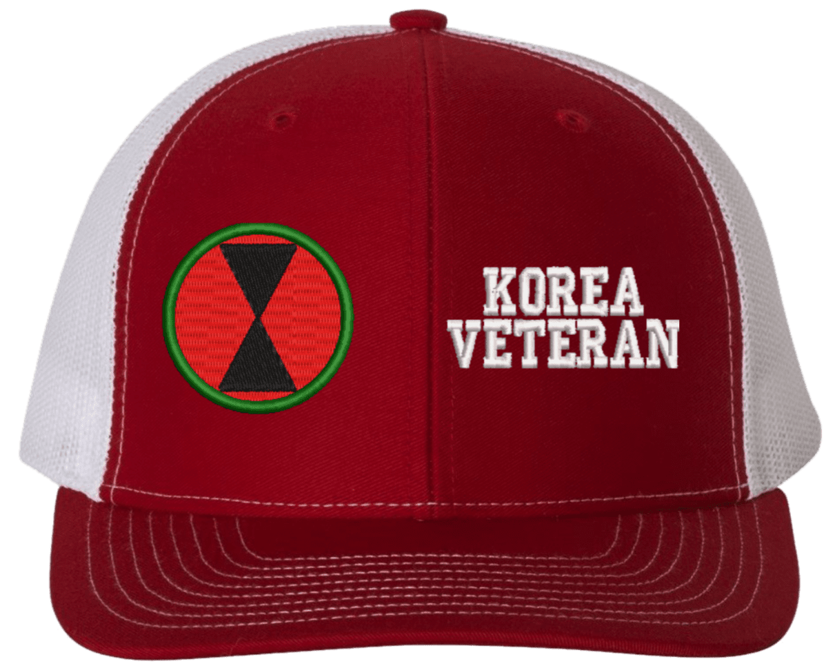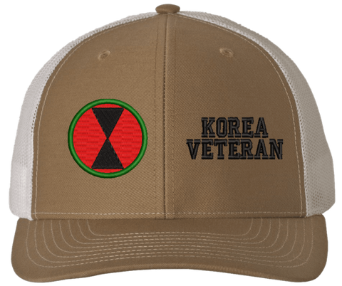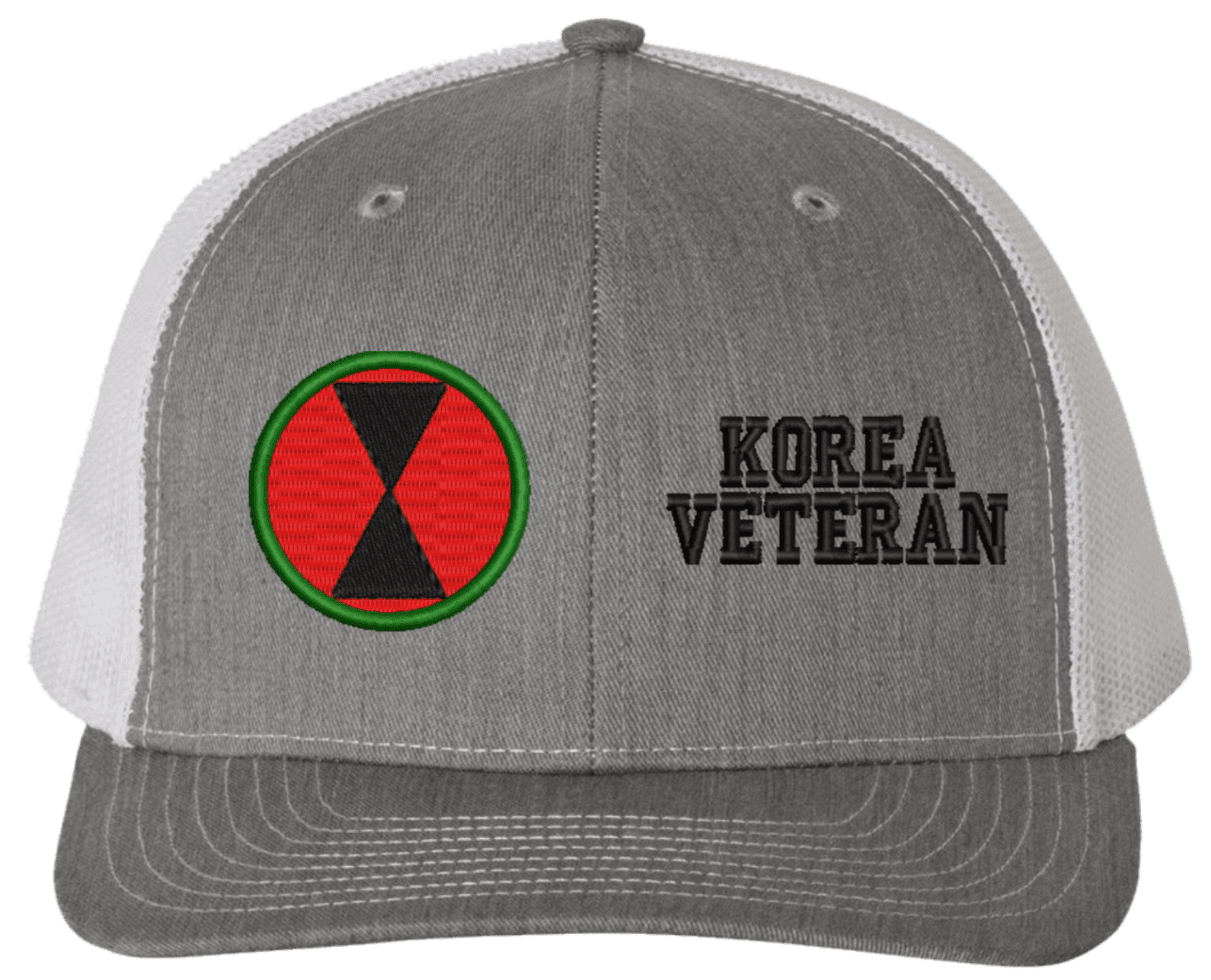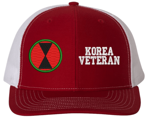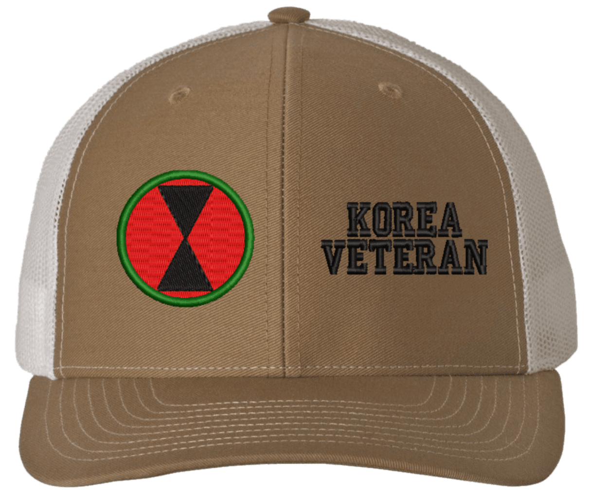 MilitaryBest is proud to offer this Mesh Back 7th Infantry Korea Veteran Split Cap. The 7th Infantry Division Insignia is embroidered onto a 6x panel mid/low profile mesh back cap and is crisp, clean, and sure to be loved by people of all ages! As with all MilitaryBest caps and apparel your satisfaction is guaranteed!Caps ordered with embroidered back text requires an additional 1 to 2 days of production time. All personalized caps will be embroidered in ALL CAPITAL LETTERS. Caps personalized with back text are not returnable unless there is a material defect in the cap.