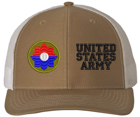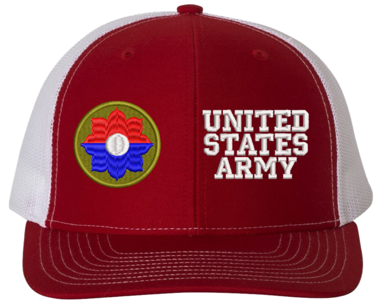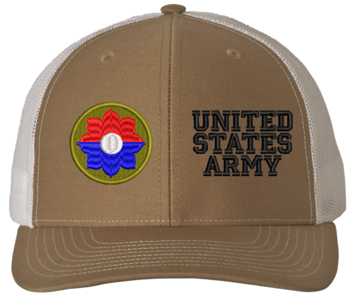 MilitaryBest is proud to offer this Mesh Back 9th Infantry United States Army Split Cap. The 9th Infantry Division Insignia is embroidered onto a 6x panel mid/low profile mesh back cap and is crisp, clean, and sure to be loved by people of all ages! As with all MilitaryBest caps and apparel your satisfaction is guaranteed!Caps ordered with embroidered back text requires an additional 1 to 2 days of production time. All personalized caps will be embroidered in ALL CAPITAL LETTERS. Caps personalized with back text are not returnable unless there is a material defect in the cap.