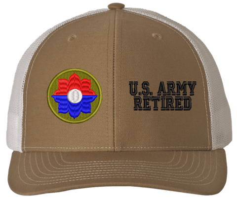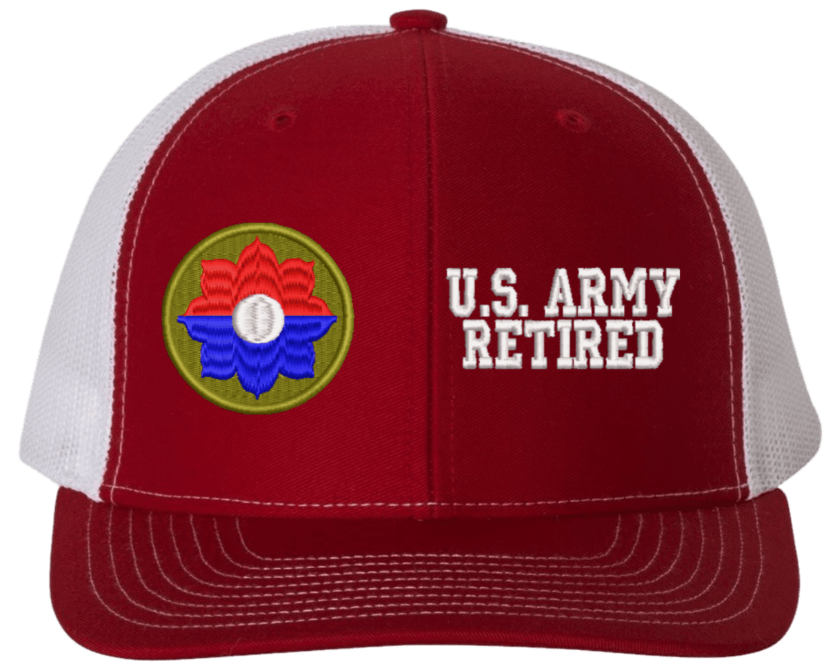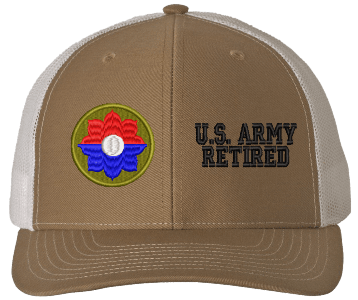MilitaryBest is proud to offer this Mesh Back 9th Infantry U.S. Army Retired Split Cap. The 9th Infantry Division Insignia is embroidered onto a 6x panel mid/low profile mesh back cap and is crisp, clean, and sure to be loved by people of all ages! As with all MilitaryBest caps and apparel your satisfaction is guaranteed!Caps ordered with embroidered back text requires an additional 1 to 2 days of production time. All personalized caps will be embroidered in ALL CAPITAL LETTERS. Caps personalized with back text are not returnable unless there is a material defect in the cap.