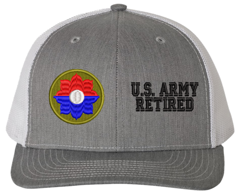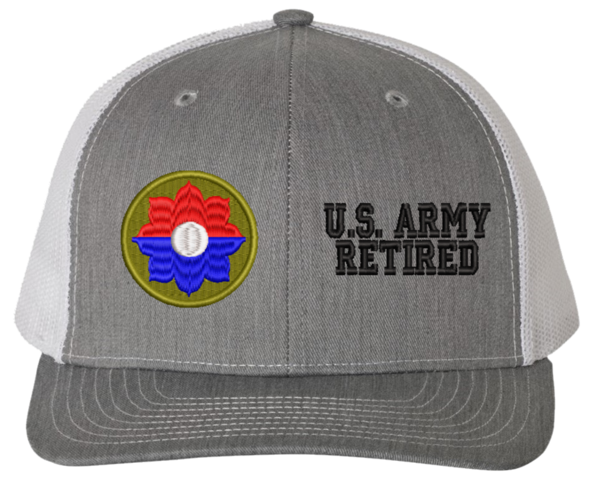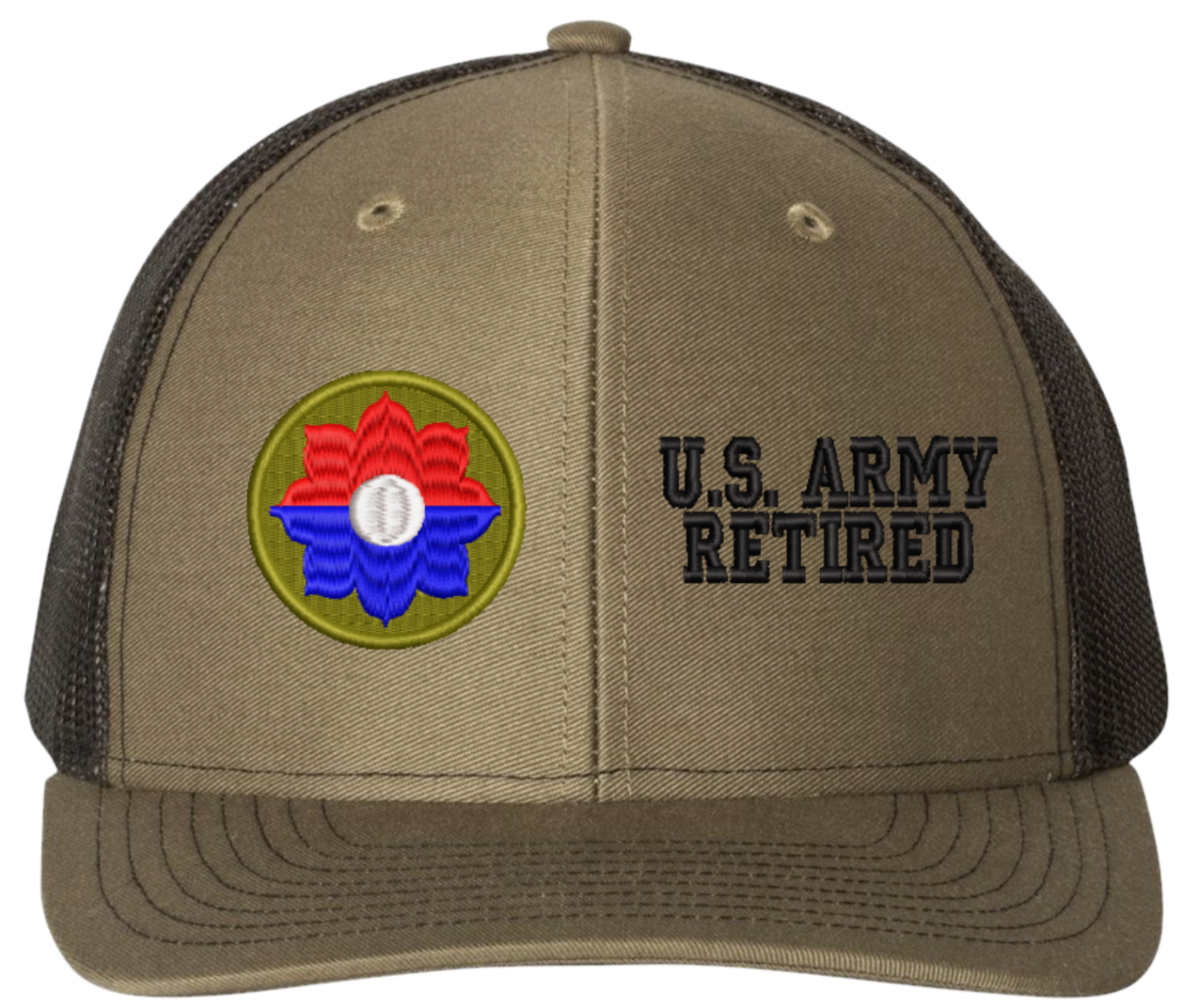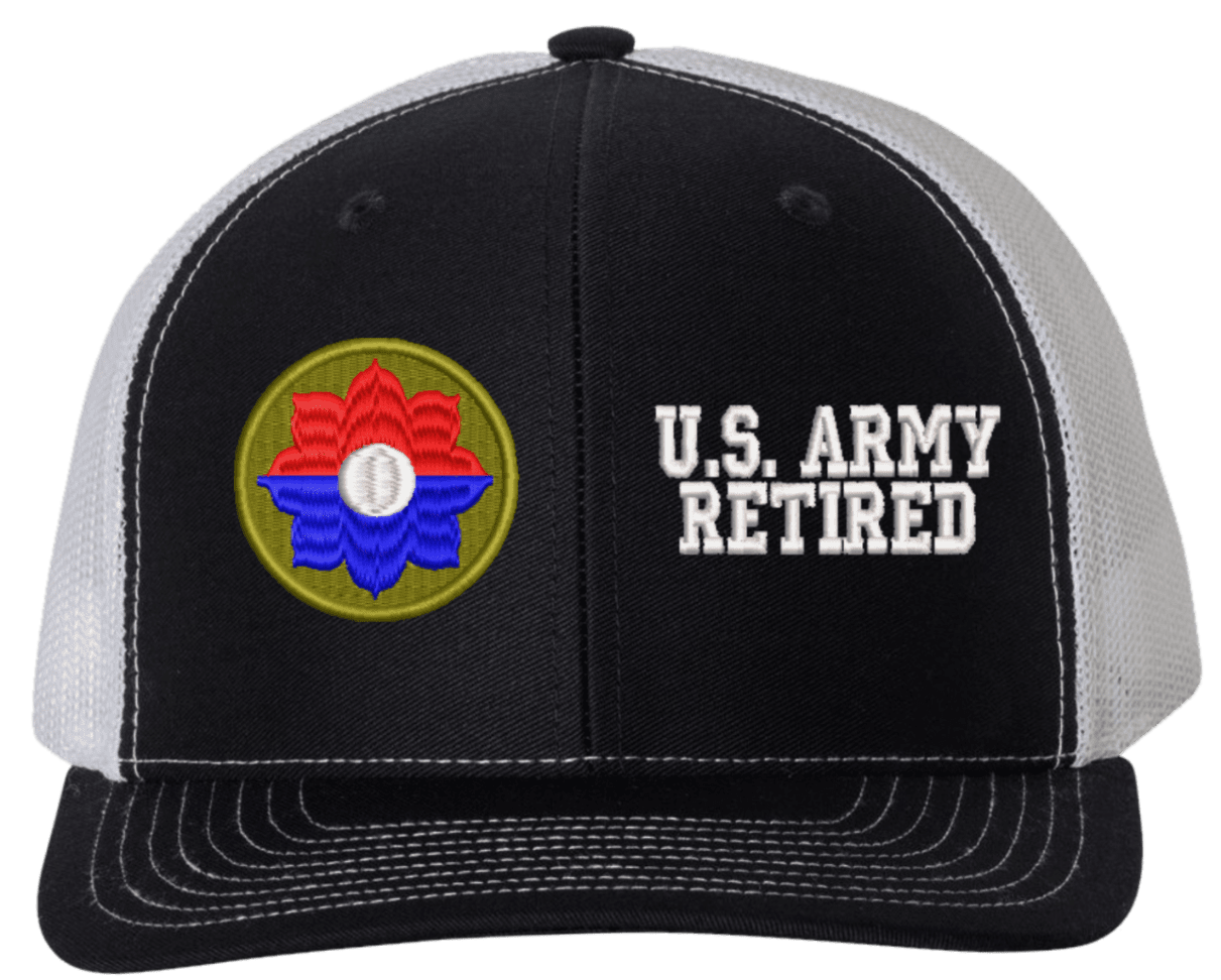 MilitaryBest is proud to offer this Mesh Back 9th Infantry U.S. Army Retired Split Cap. The 9th Infantry Division Insignia is embroidered onto a 6x panel mid/low profile mesh back cap and is crisp, clean, and sure to be loved by people of all ages! As with all MilitaryBest caps and apparel your satisfaction is guaranteed!Caps ordered with embroidered back text requires an additional 1 to 2 days of production time. All personalized caps will be embroidered in ALL CAPITAL LETTERS. Caps personalized with back text are not returnable unless there is a material defect in the cap.