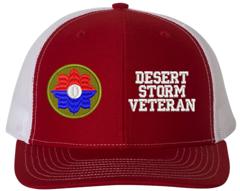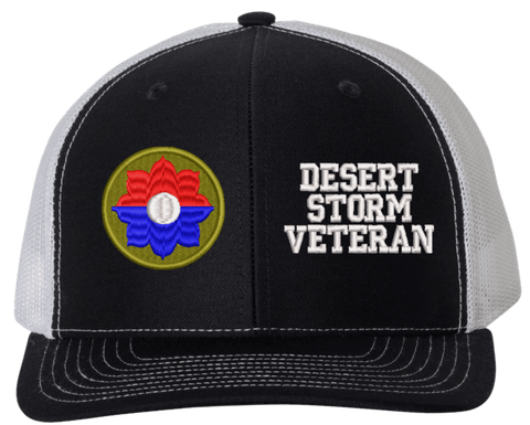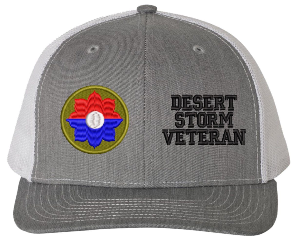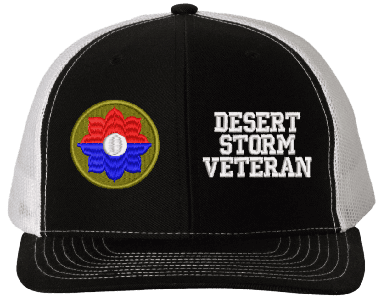 MilitaryBest is proud to offer this Mesh Back 9th Infantry Desert Storm Veteran Split Cap. The 9th Infantry Division Insignia is embroidered onto a 6x panel mid/low profile mesh back cap and is crisp, clean, and sure to be loved by people of all ages! As with all MilitaryBest caps and apparel your satisfaction is guaranteed!Caps ordered with embroidered back text requires an additional 1 to 2 days of production time. All personalized caps will be embroidered in ALL CAPITAL LETTERS. Caps personalized with back text are not returnable unless there is a material defect in the cap.