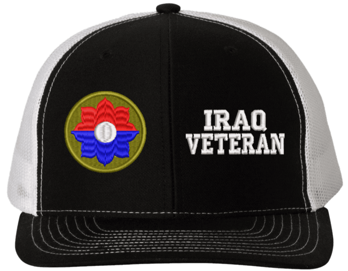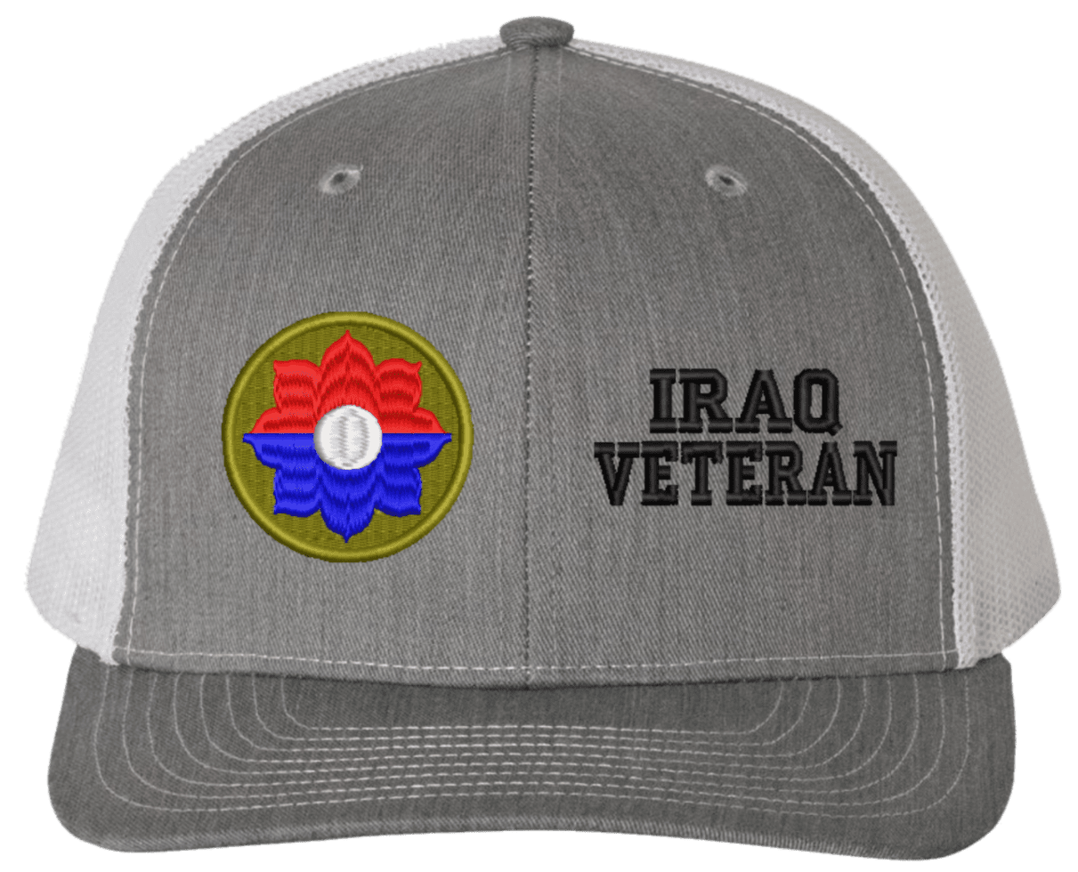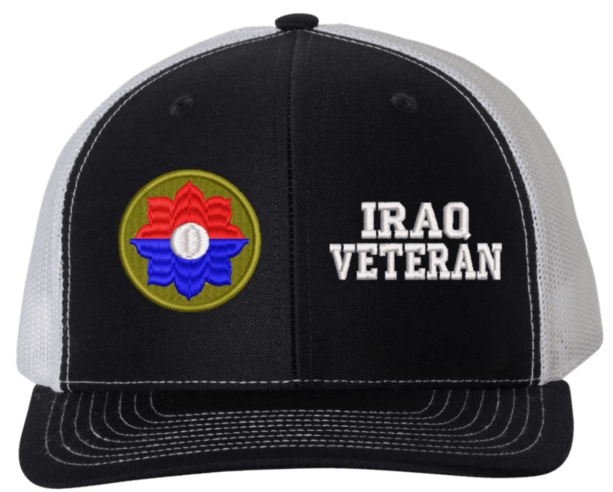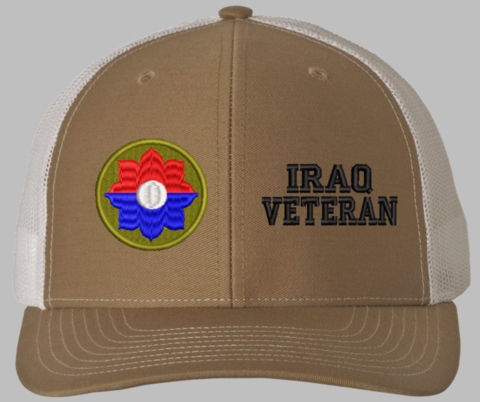MilitaryBest is proud to offer this Mesh Back 9th Infantry Iraq Veteran Split Cap. The 9th Infantry Division Insignia is embroidered onto a 6x panel mid/low profile mesh back cap and is crisp, clean, and sure to be loved by people of all ages! As with all MilitaryBest caps and apparel your satisfaction is guaranteed!Caps ordered with embroidered back text requires an additional 1 to 2 days of production time. All personalized caps will be embroidered in ALL CAPITAL LETTERS. Caps personalized with back text are not returnable unless there is a material defect in the cap.