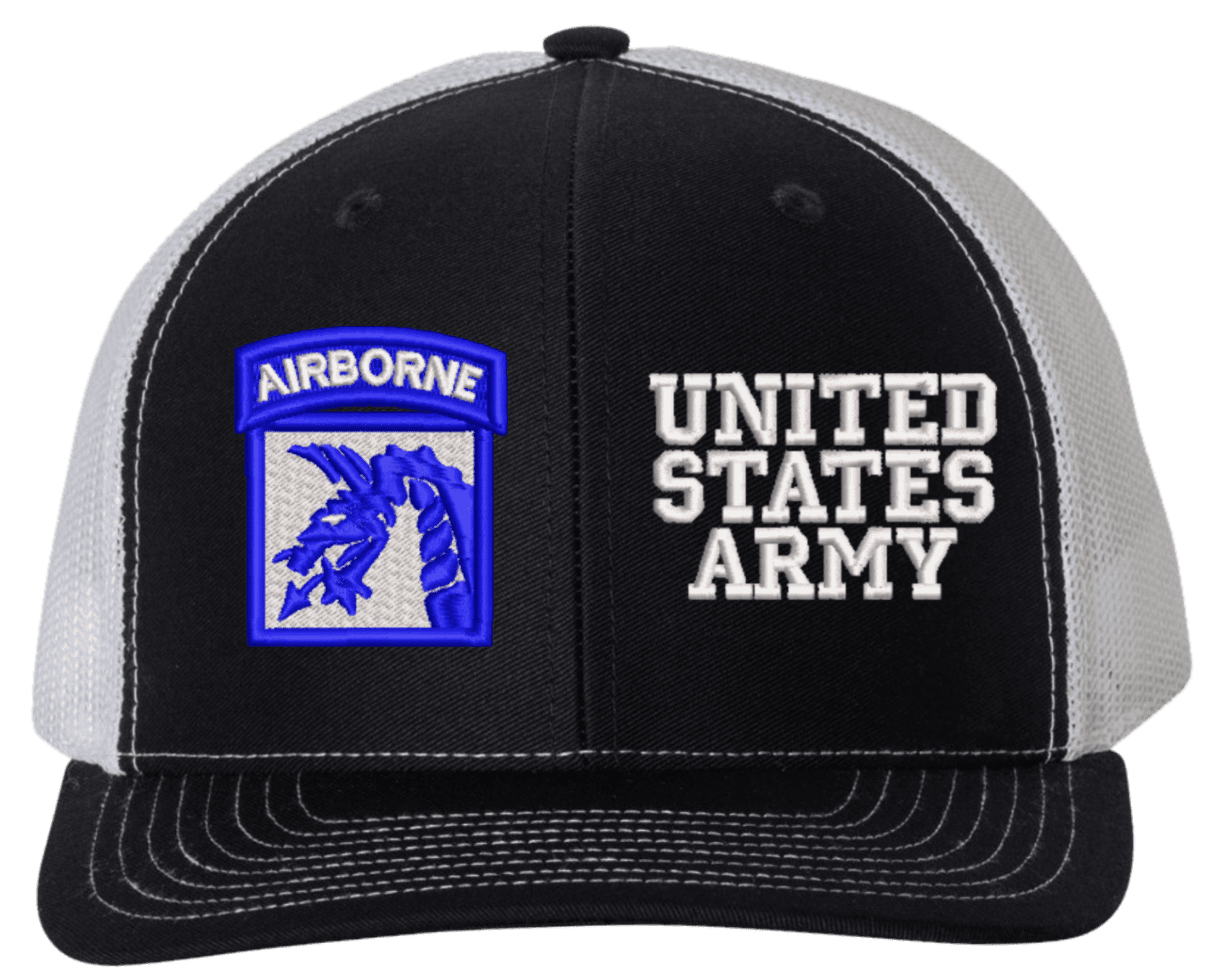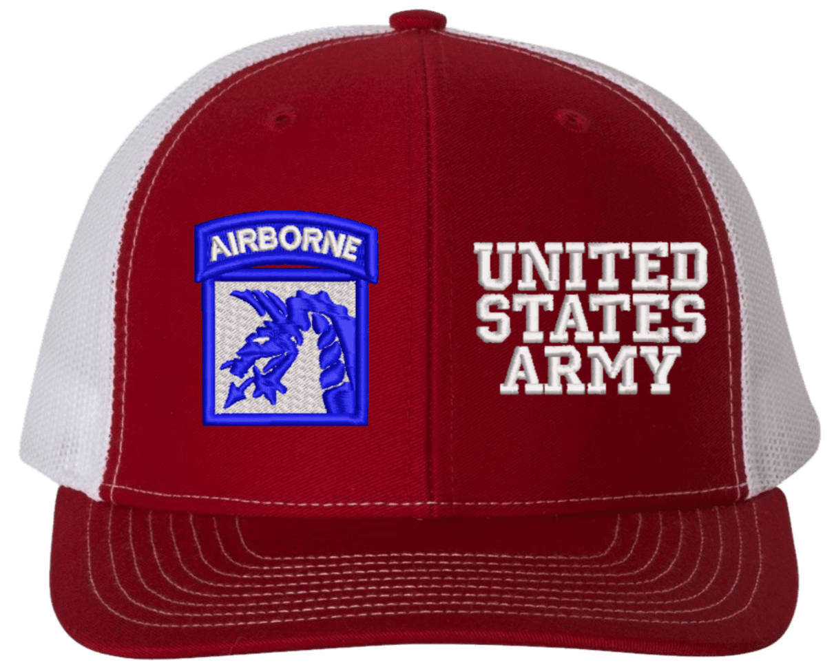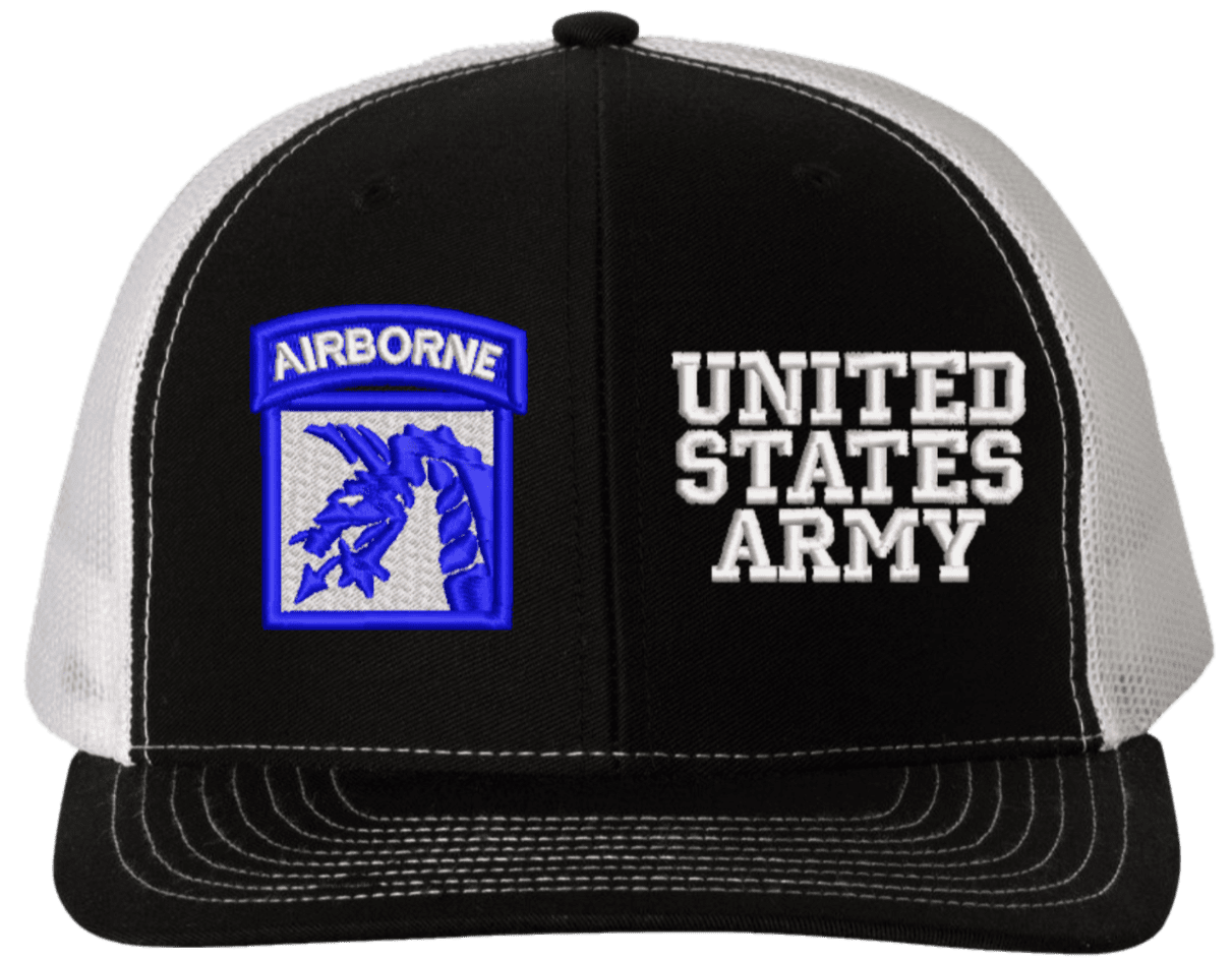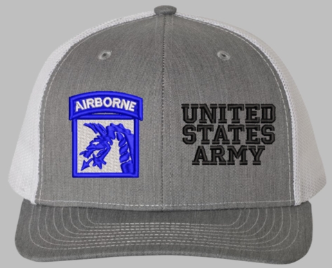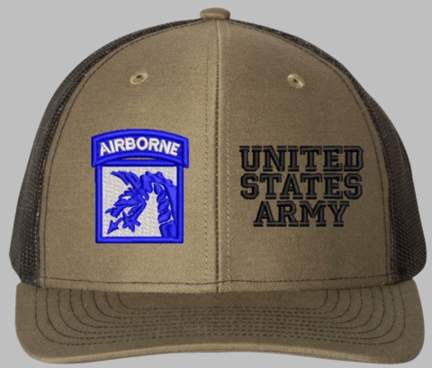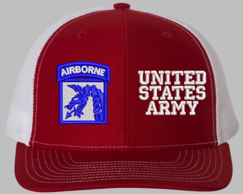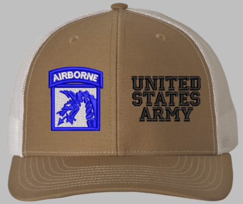 MilitaryBest is proud to offer this Mesh Back 18th Airborne United States Army Split Cap. The 18th Airborne Corps Insignia is embroidered onto a 6x panel mid/low profile mesh back cap and is crisp, clean, and sure to be loved by people of all ages! As with all MilitaryBest caps and apparel your satisfaction is guaranteed!Caps ordered with embroidered back text requires an additional 1 to 2 days of production time. All personalized caps will be embroidered in ALL CAPITAL LETTERS. Caps personalized with back text are not returnable unless there is a material defect in the cap.