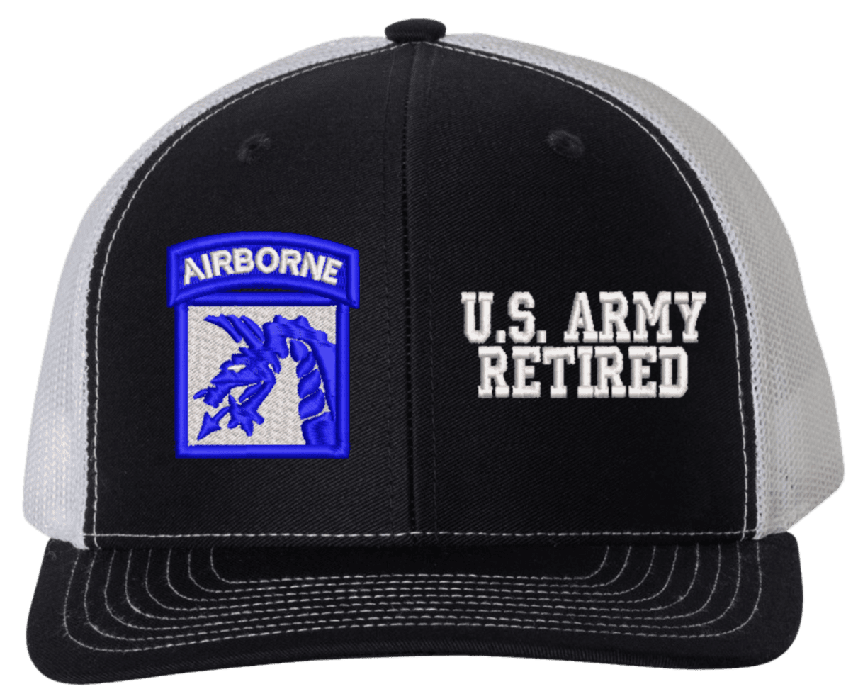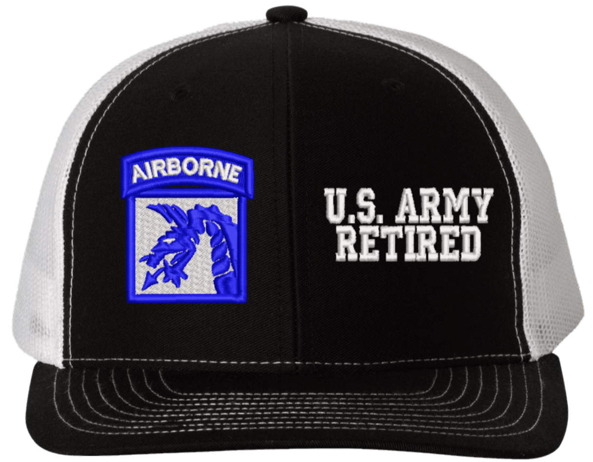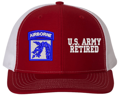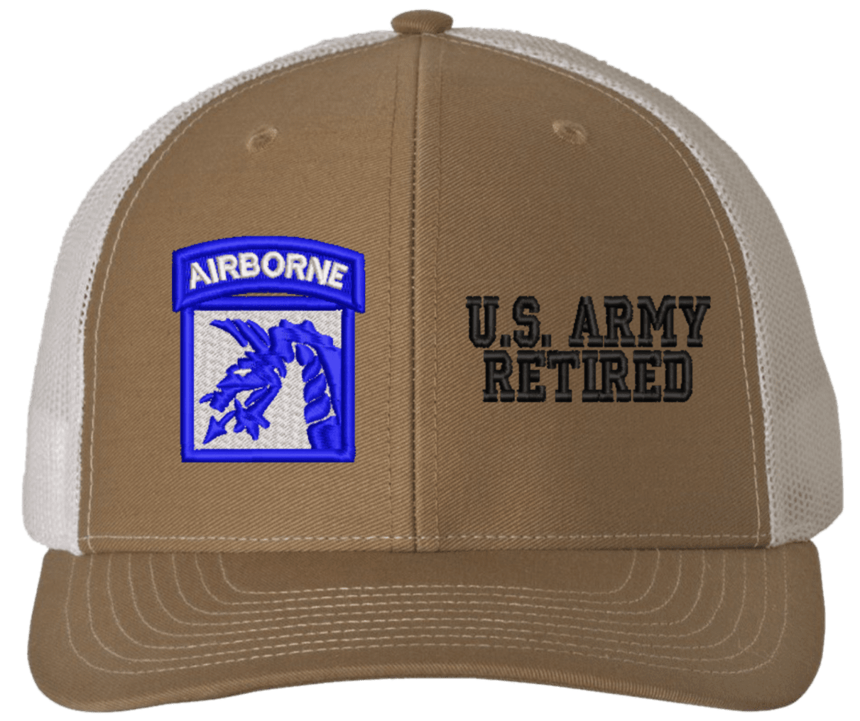 MilitaryBest is proud to offer this Mesh Back 18th Airborne U.S. Army Retired Split Cap. The 18th Airborne Corps Insignia is embroidered onto a 6x panel mid/low profile mesh back cap and is crisp, clean, and sure to be loved by people of all ages! As with all MilitaryBest caps and apparel your satisfaction is guaranteed!Caps ordered with embroidered back text requires an additional 1 to 2 days of production time. All personalized caps will be embroidered in ALL CAPITAL LETTERS. Caps personalized with back text are not returnable unless there is a material defect in the cap.