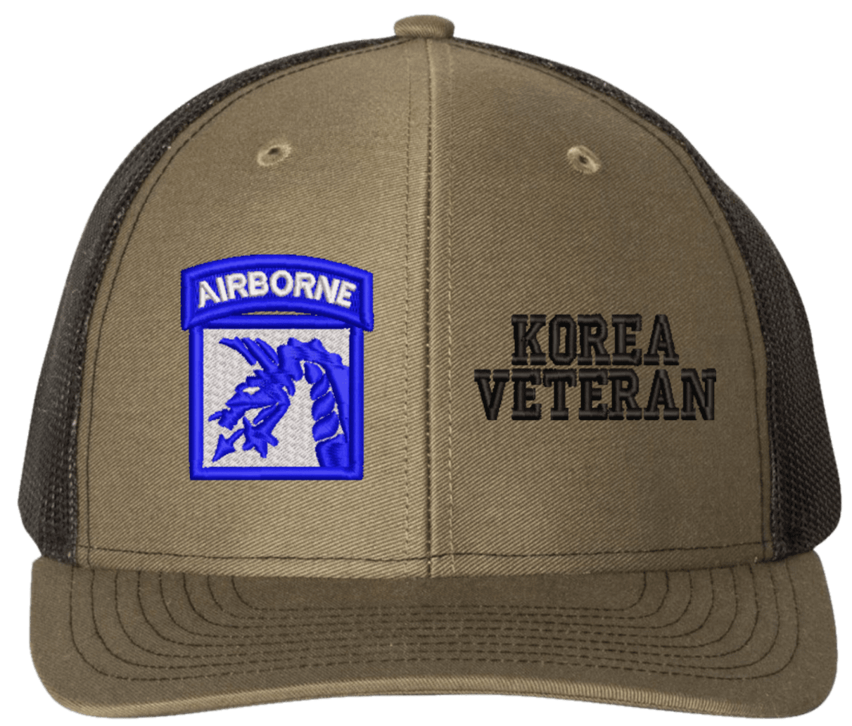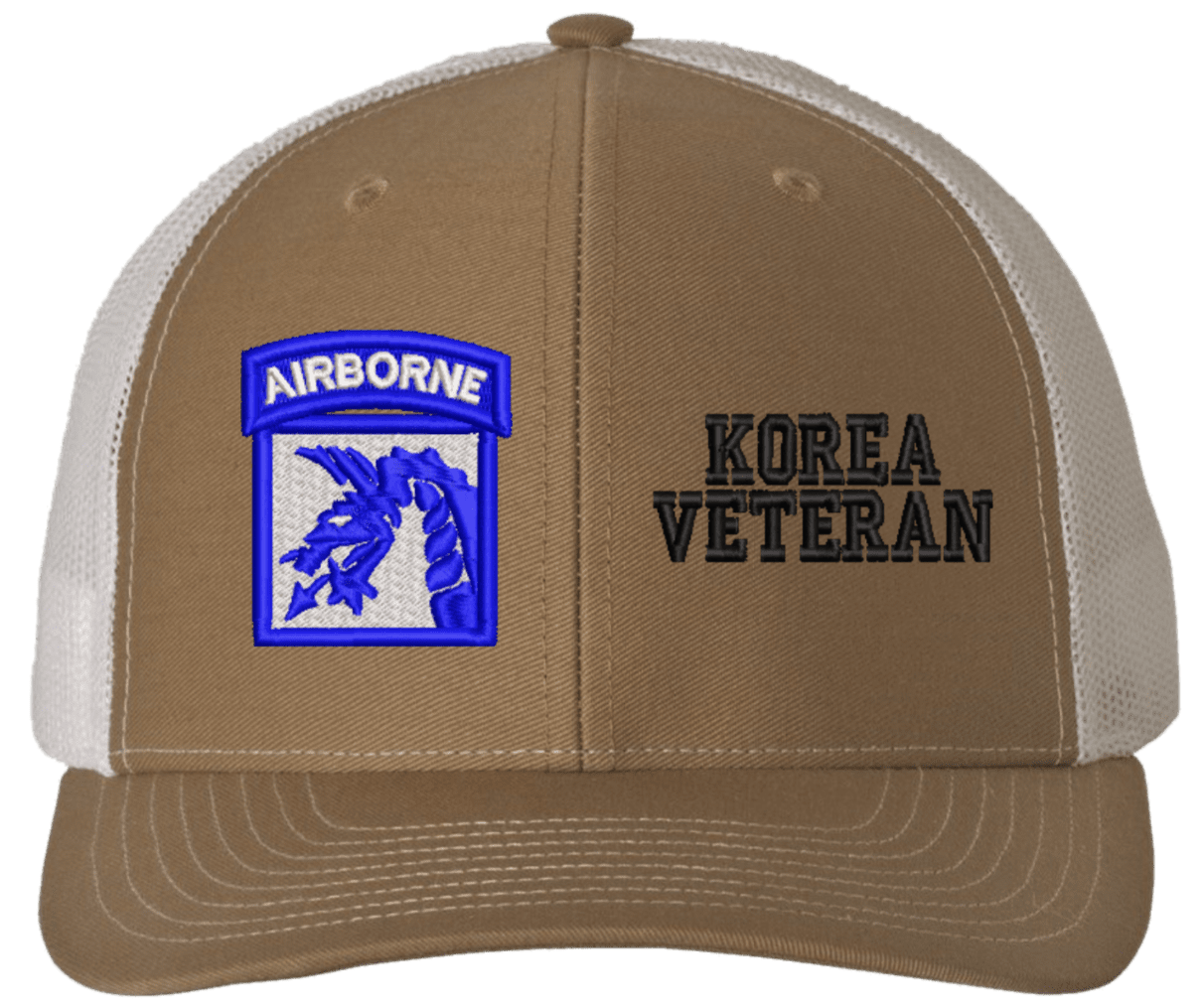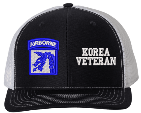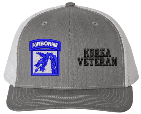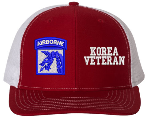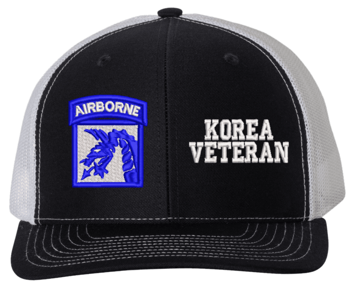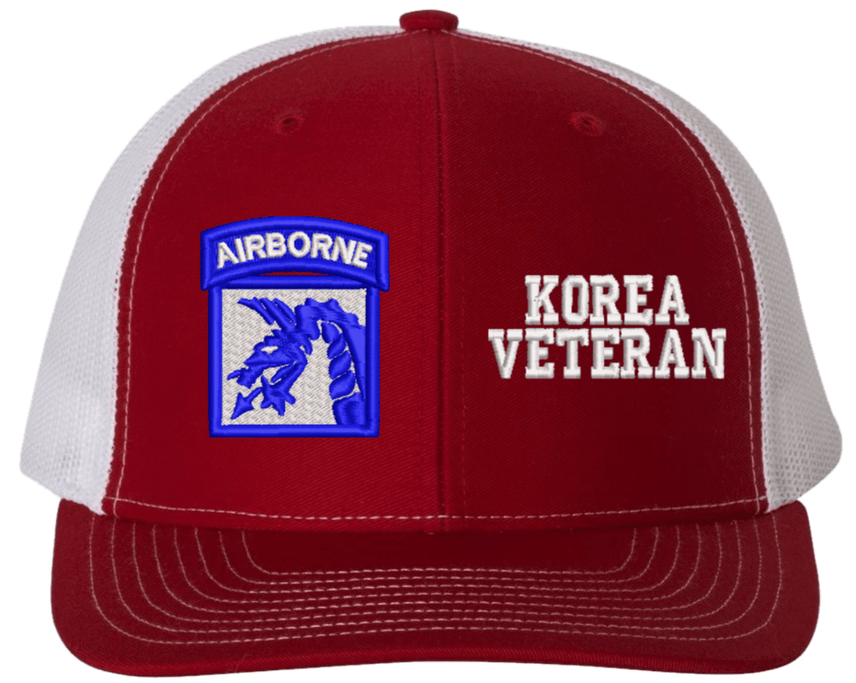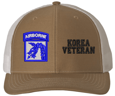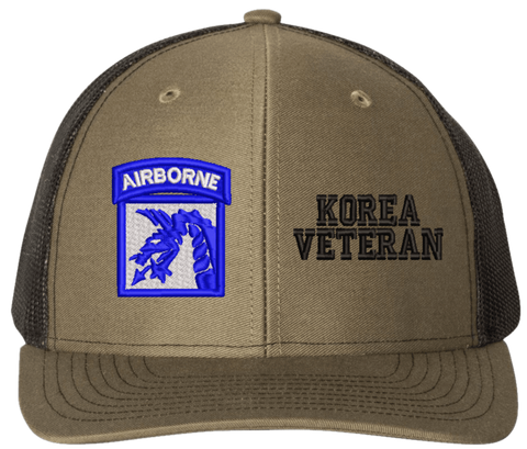 MilitaryBest is proud to offer this Mesh Back 18th Airborne Korea Veteran Split Cap. The 18th Airborne Corps Insignia is embroidered onto a 6x panel mid/low profile mesh back cap and is crisp, clean, and sure to be loved by people of all ages! As with all MilitaryBest caps and apparel your satisfaction is guaranteed!Caps ordered with embroidered back text requires an additional 1 to 2 days of production time. All personalized caps will be embroidered in ALL CAPITAL LETTERS. Caps personalized with back text are not returnable unless there is a material defect in the cap.