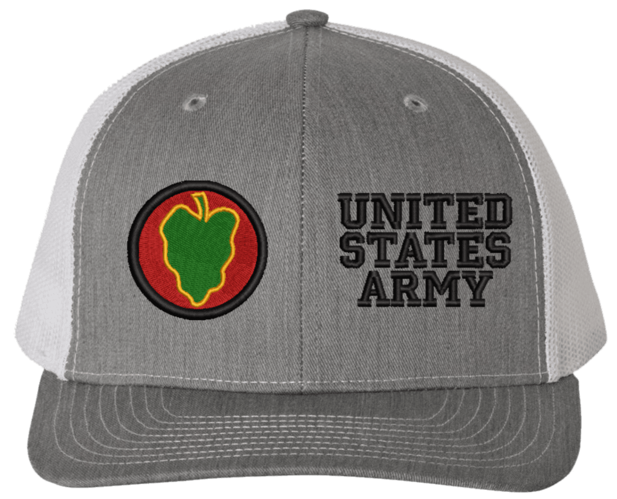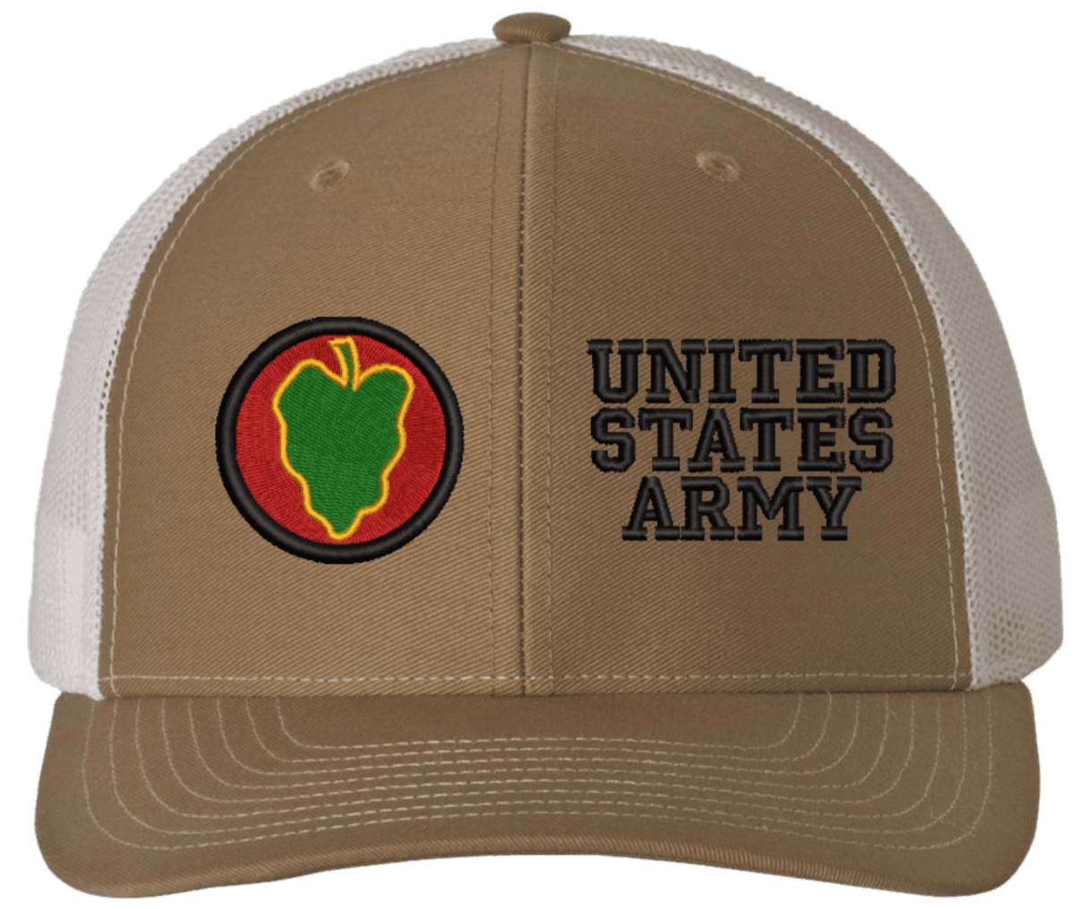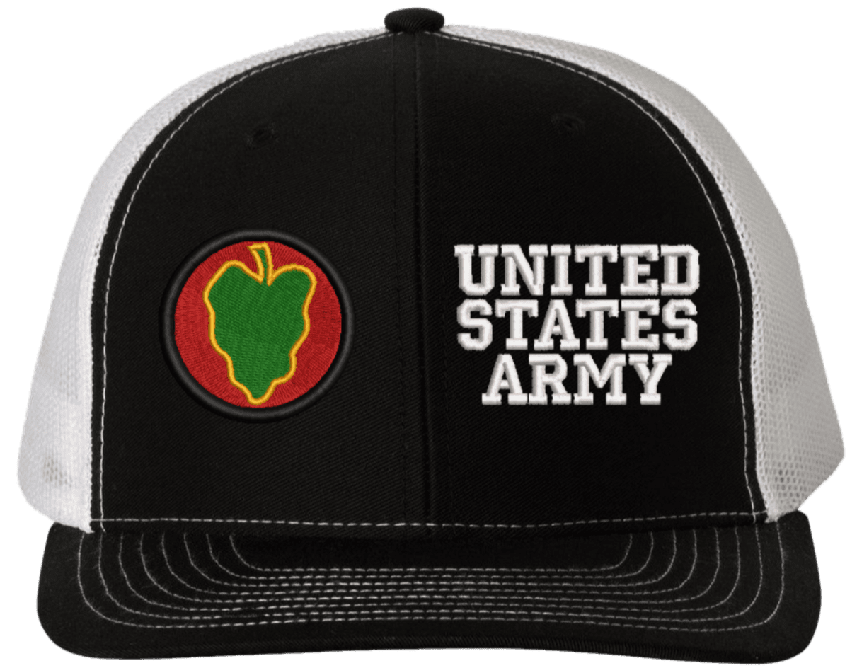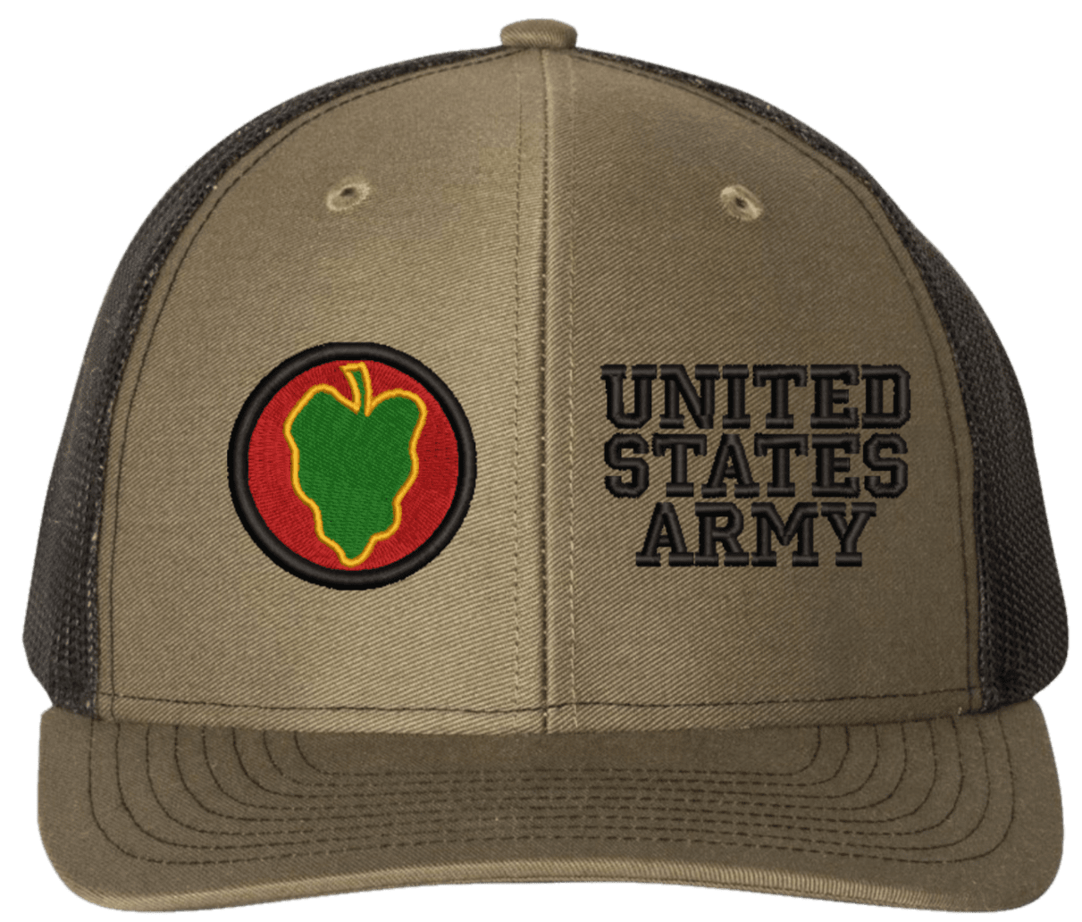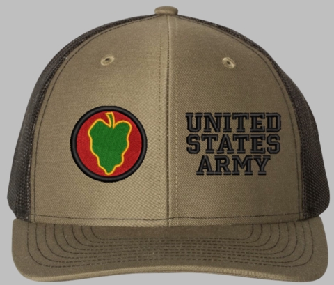 MilitaryBest is proud to offer this Mesh Back 24th Infantry United States Army Split Cap. The 24th Infantry Division Insignia is embroidered onto a 6x panel mid/low profile mesh back cap and is crisp, clean, and sure to be loved by people of all ages! As with all MilitaryBest caps and apparel your satisfaction is guaranteed!Caps ordered with embroidered back text requires an additional 1 to 2 days of production time. All personalized caps will be embroidered in ALL CAPITAL LETTERS. Caps personalized with back text are not returnable unless there is a material defect in the cap.