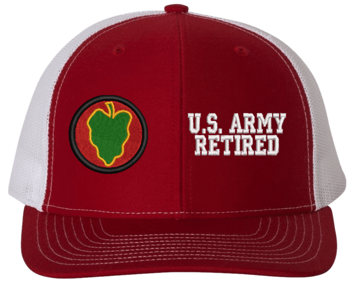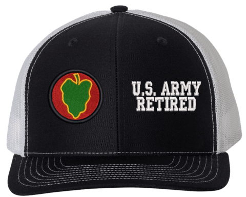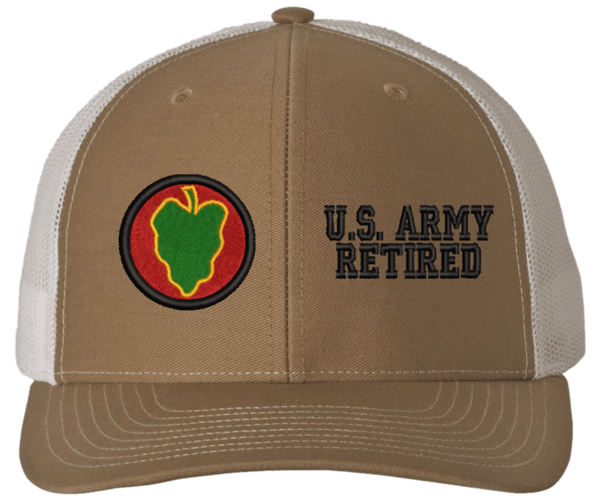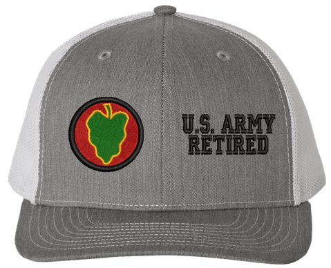 MilitaryBest is proud to offer this Mesh Back 24th Infantry U.S. Army Retired Split Cap. The 24th Infantry Division Insignia is embroidered onto a 6x panel mid/low profile mesh back cap and is crisp, clean, and sure to be loved by people of all ages! As with all MilitaryBest caps and apparel your satisfaction is guaranteed!Caps ordered with embroidered back text requires an additional 1 to 2 days of production time. All personalized caps will be embroidered in ALL CAPITAL LETTERS. Caps personalized with back text are not returnable unless there is a material defect in the cap.