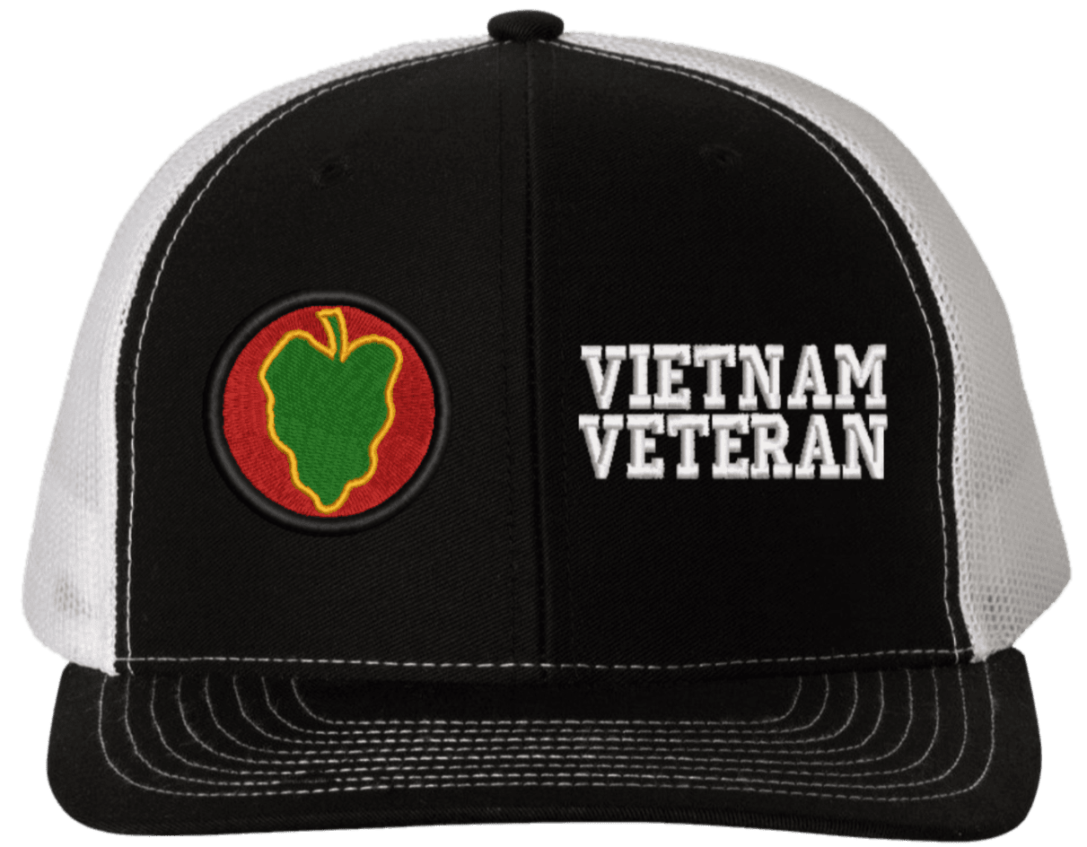 MilitaryBest is proud to offer this Mesh Back 24th Infantry Vietnam Veteran Split Cap. The 24th Infantry Division Insignia is embroidered onto a 6x panel mid/low profile mesh back cap and is crisp, clean, and sure to be loved by people of all ages! As with all MilitaryBest caps and apparel your satisfaction is guaranteed!Caps ordered with embroidered back text requires an additional 1 to 2 days of production time. All personalized caps will be embroidered in ALL CAPITAL LETTERS. Caps personalized with back text are not returnable unless there is a material defect in the cap.