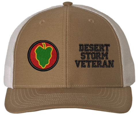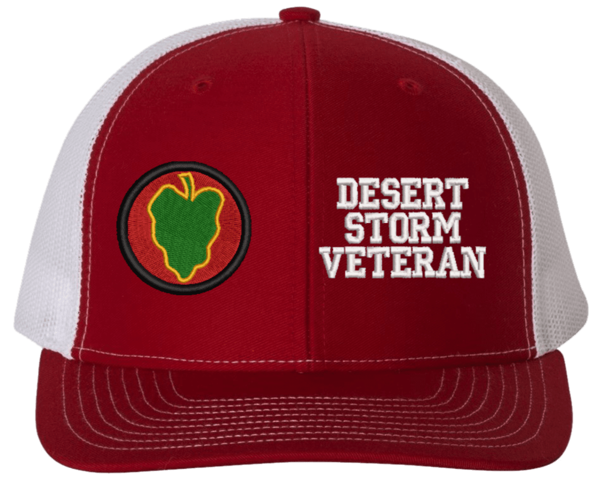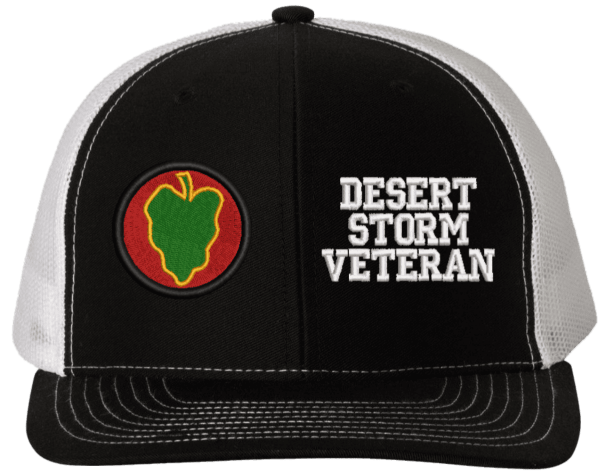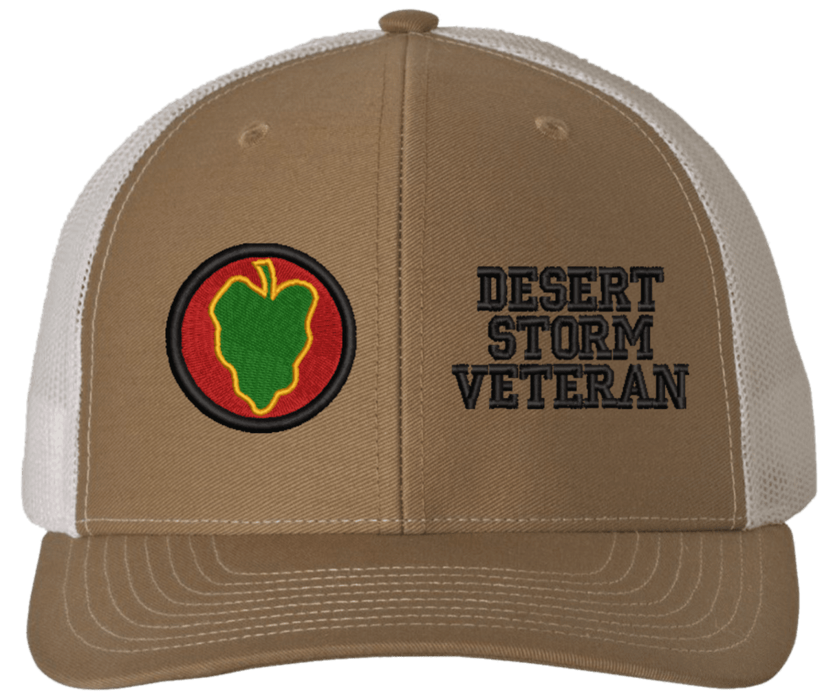 MilitaryBest is proud to offer this Mesh Back 24th Infantry Desert Storm Veteran Split Cap. The 24th Infantry Division Insignia is embroidered onto a 6x panel mid/low profile mesh back cap and is crisp, clean, and sure to be loved by people of all ages! As with all MilitaryBest caps and apparel your satisfaction is guaranteed!Caps ordered with embroidered back text requires an additional 1 to 2 days of production time. All personalized caps will be embroidered in ALL CAPITAL LETTERS. Caps personalized with back text are not returnable unless there is a material defect in the cap.