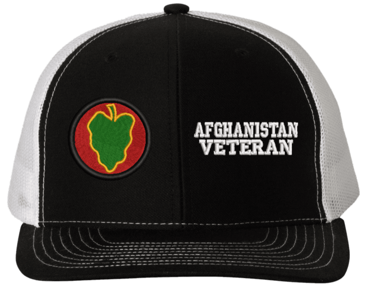 MilitaryBest is proud to offer this Mesh Back 24th Infantry Afghanistan Veteran Split Cap. The 24th Infantry Division Insignia is embroidered onto a 6x panel mid/low profile mesh back cap and is crisp, clean, and sure to be loved by people of all ages! As with all MilitaryBest caps and apparel your satisfaction is guaranteed!Caps ordered with embroidered back text requires an additional 1 to 2 days of production time. All personalized caps will be embroidered in ALL CAPITAL LETTERS. Caps personalized with back text are not returnable unless there is a material defect in the cap.