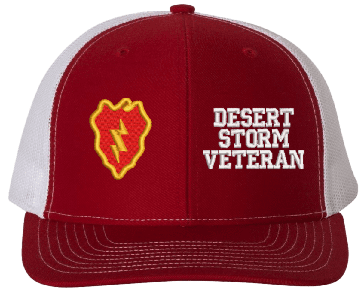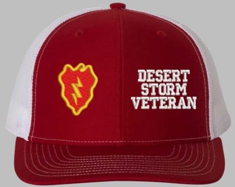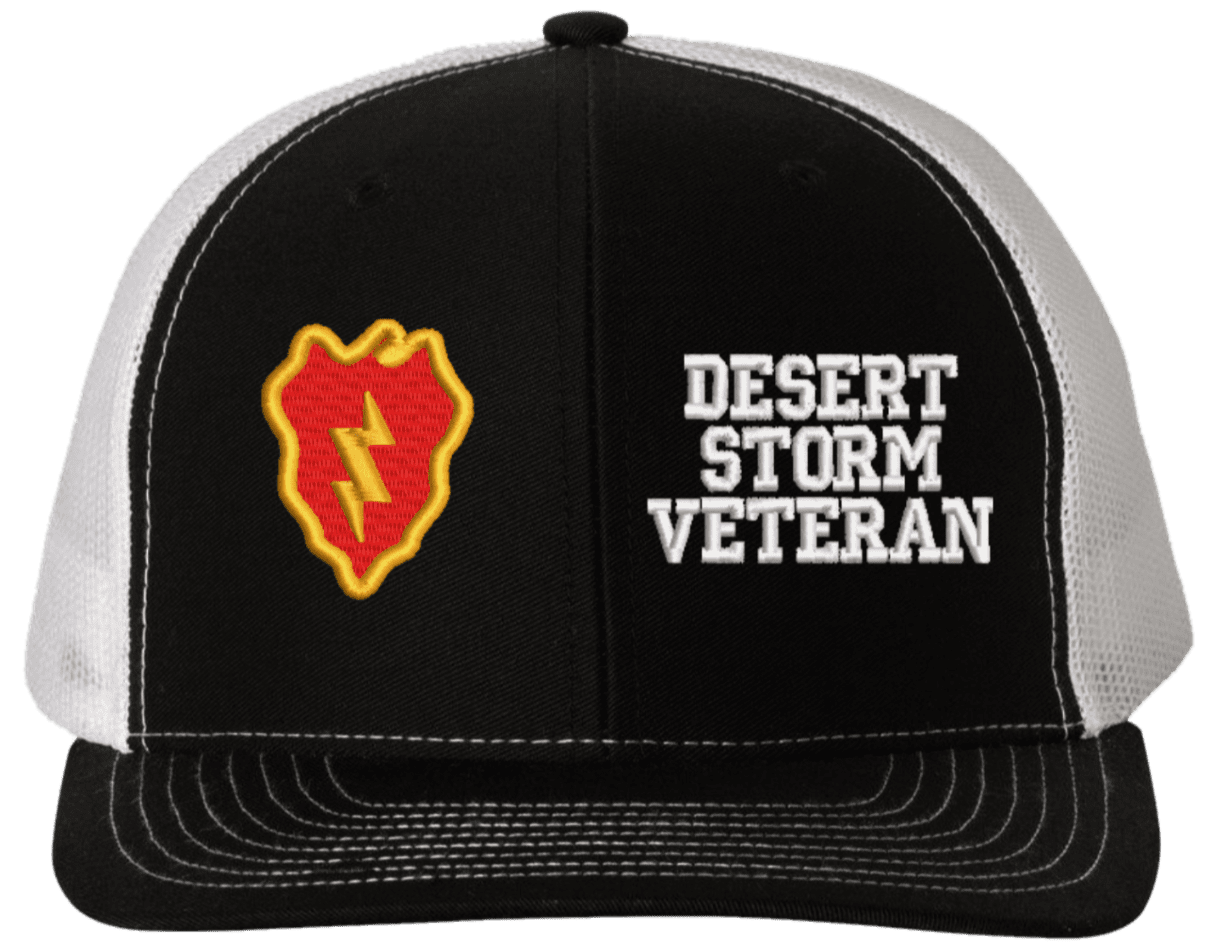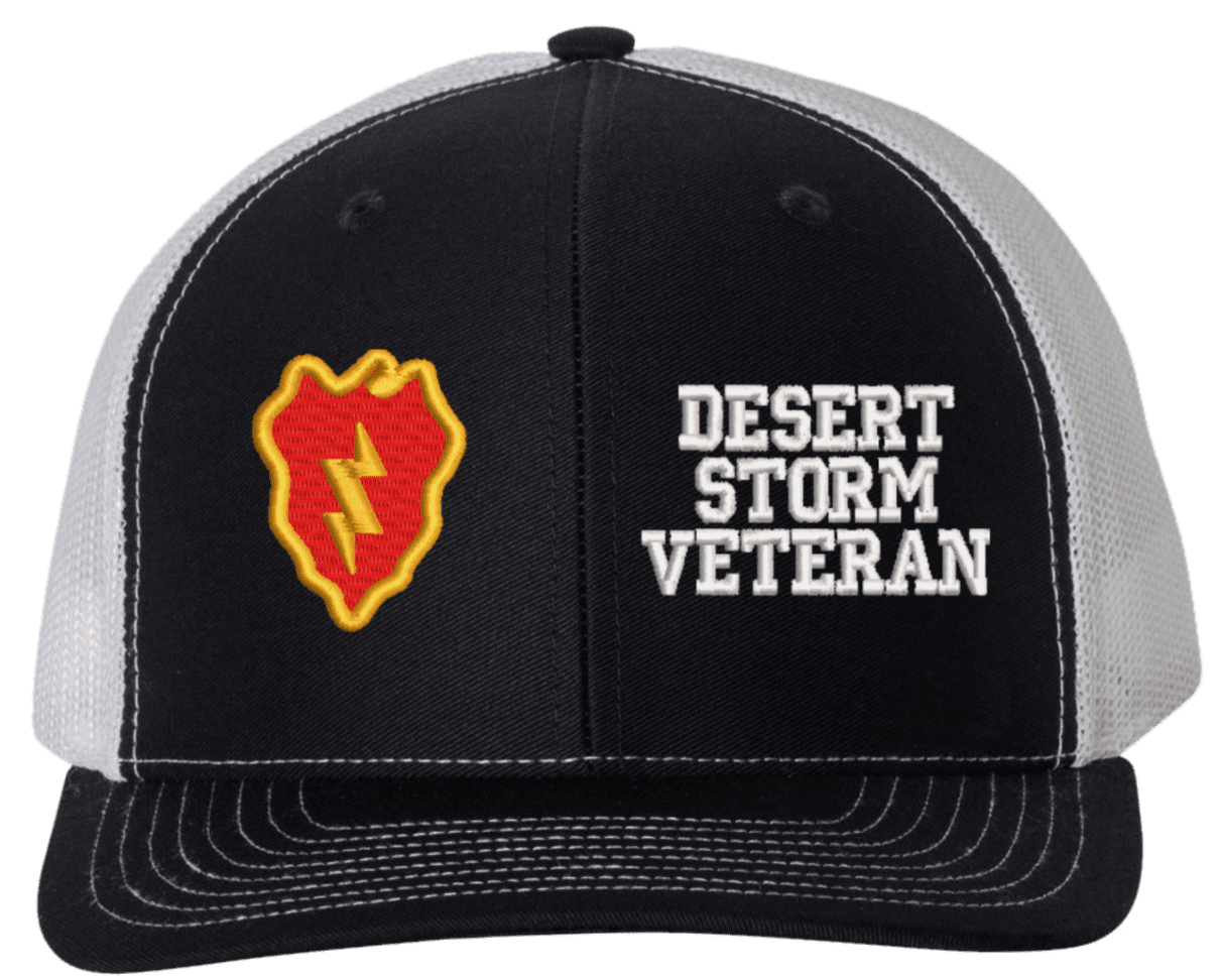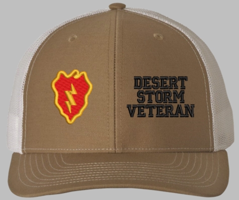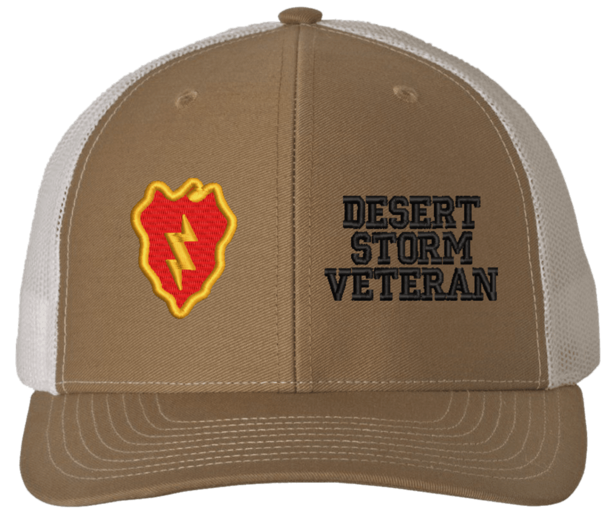 MilitaryBest is proud to offer this Mesh Back 25th Infantry Desert Storm Veteran Split Cap. The 25th Infantry Division Insignia is embroidered onto a 6x panel mid/low profile mesh back cap and is crisp, clean, and sure to be loved by people of all ages! As with all MilitaryBest caps and apparel your satisfaction is guaranteed!Caps ordered with embroidered back text requires an additional 1 to 2 days of production time. All personalized caps will be embroidered in ALL CAPITAL LETTERS. Caps personalized with back text are not returnable unless there is a material defect in the cap.