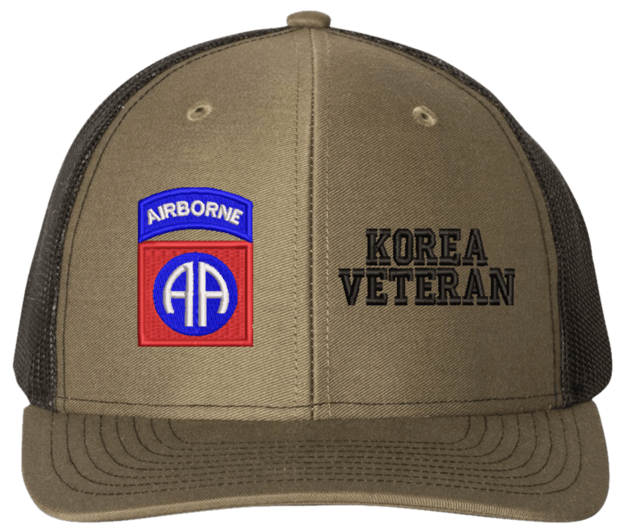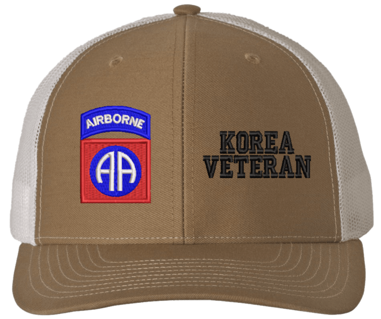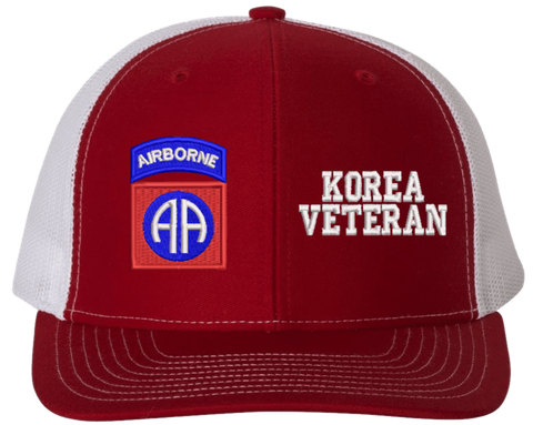 MilitaryBest is proud to offer this Mesh Back 82nd Airborne Korea Veteran Split Cap. The 82nd Airborne Division Insignia is embroidered onto a 6x panel mid/low profile mesh back cap and is crisp, clean, and sure to be loved by people of all ages! As with all MilitaryBest caps and apparel your satisfaction is guaranteed!Caps ordered with embroidered back text requires an additional 1 to 2 days of production time. All personalized caps will be embroidered in ALL CAPITAL LETTERS. Caps personalized with back text are not returnable unless there is a material defect in the cap.