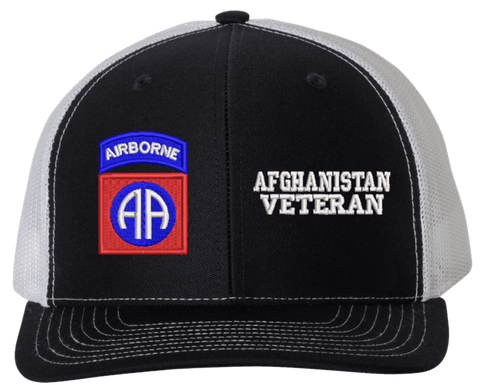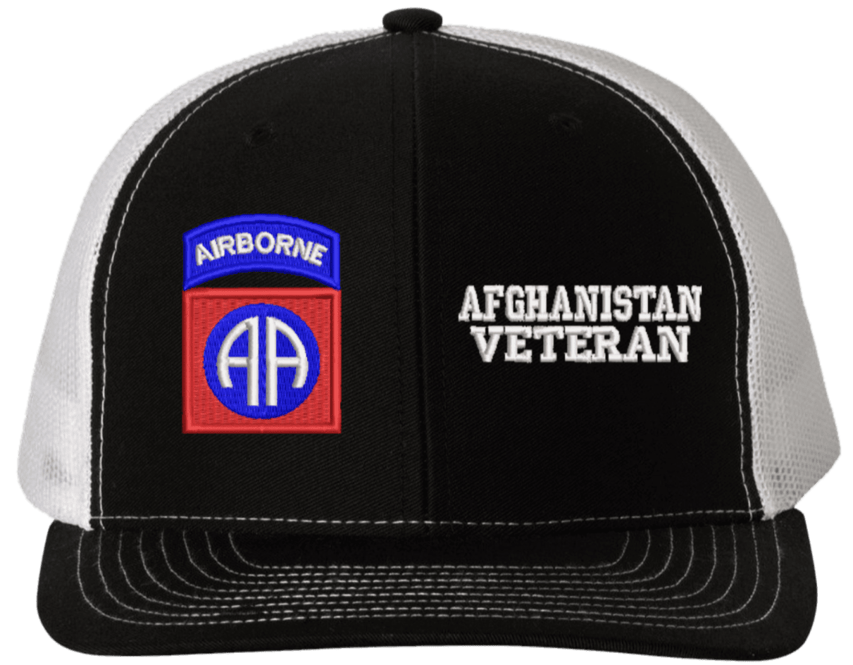 MilitaryBest is proud to offer this Mesh Back 82nd Airborne Afghanistan Veteran Split Cap. The 82nd Airborne Division Insignia is embroidered onto a 6x panel mid/low profile mesh back cap and is crisp, clean, and sure to be loved by people of all ages! As with all MilitaryBest caps and apparel your satisfaction is guaranteed!Caps ordered with embroidered back text requires an additional 1 to 2 days of production time. All personalized caps will be embroidered in ALL CAPITAL LETTERS. Caps personalized with back text are not returnable unless there is a material defect in the cap.