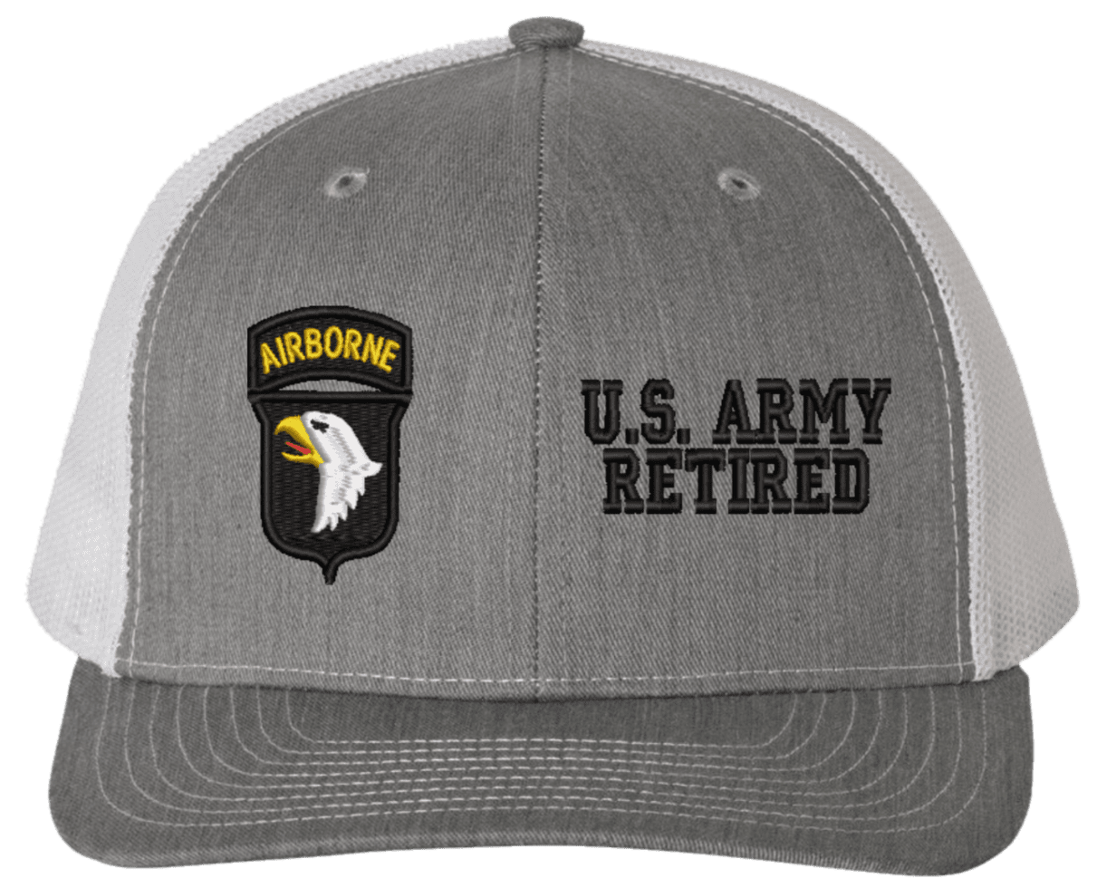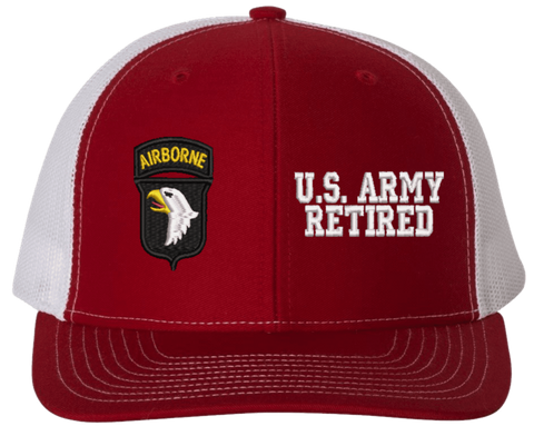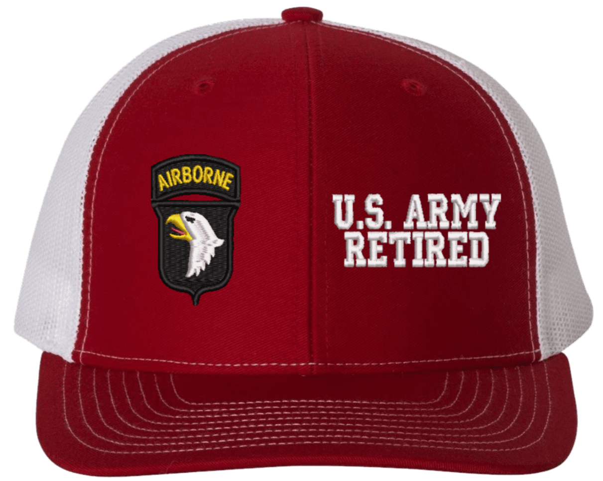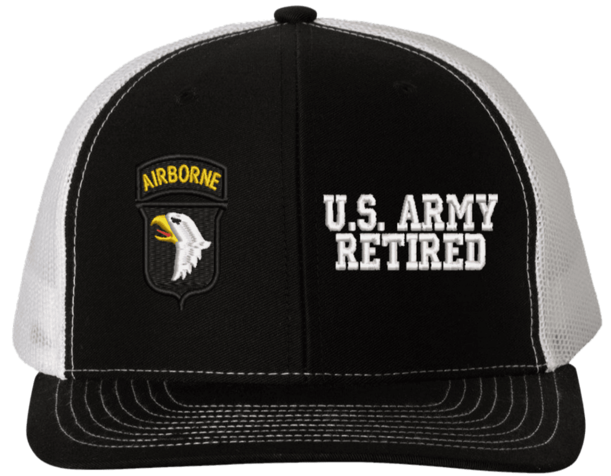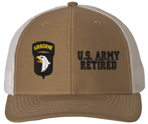 MilitaryBest is proud to offer this Mesh Back 101st Airborne U.S. Army Retired Split Cap. The 101st Airborne Division Insignia is embroidered onto a 6x panel mid/low profile mesh back cap and is crisp, clean, and sure to be loved by people of all ages! As with all MilitaryBest caps and apparel your satisfaction is guaranteed!Caps ordered with embroidered back text requires an additional 1 to 2 days of production time. All personalized caps will be embroidered in ALL CAPITAL LETTERS. Caps personalized with back text are not returnable unless there is a material defect in the cap.